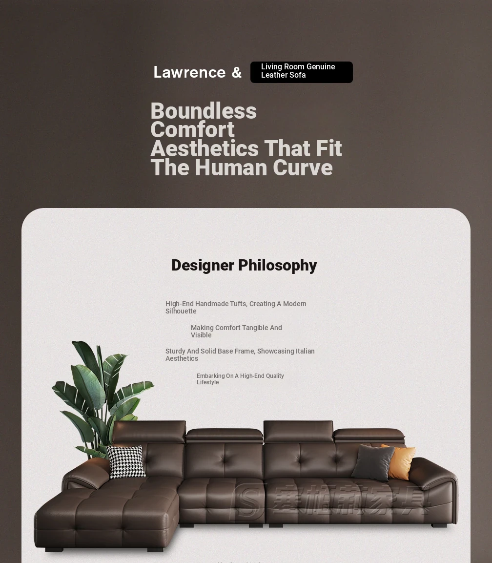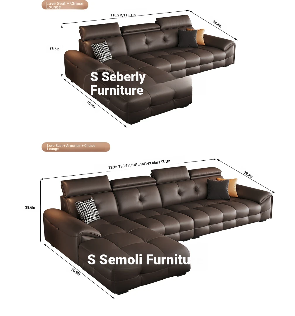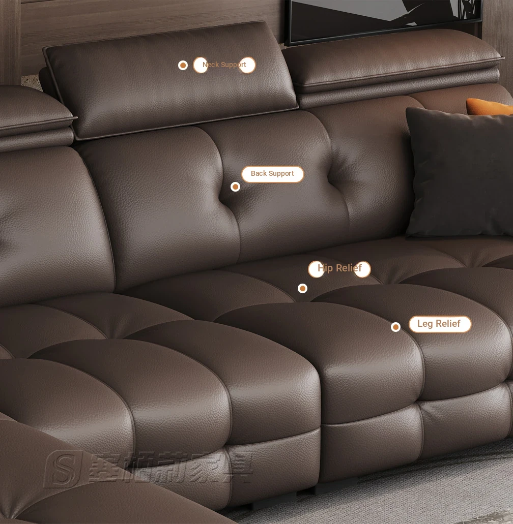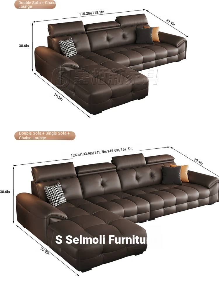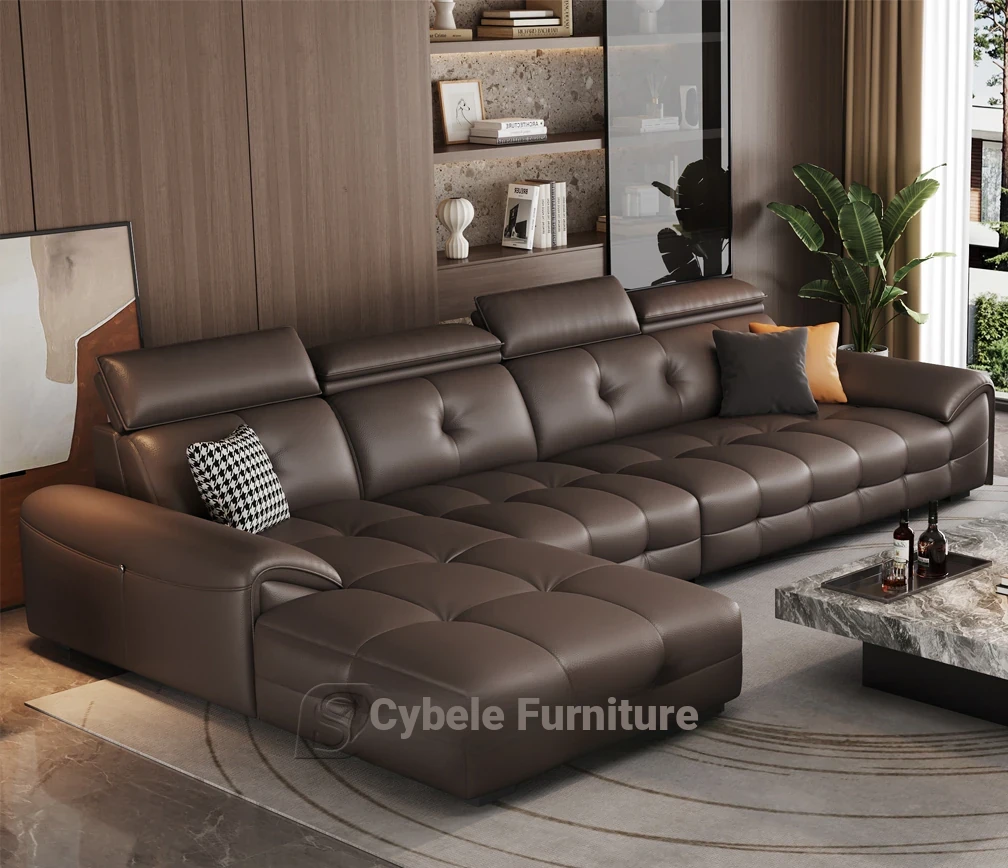 Lawrence Italian Minimalist Leather Sofa 2025 - Luxurious Modern Chaise Lounge for Spacious Living Rooms - Stylish and Elegant Design