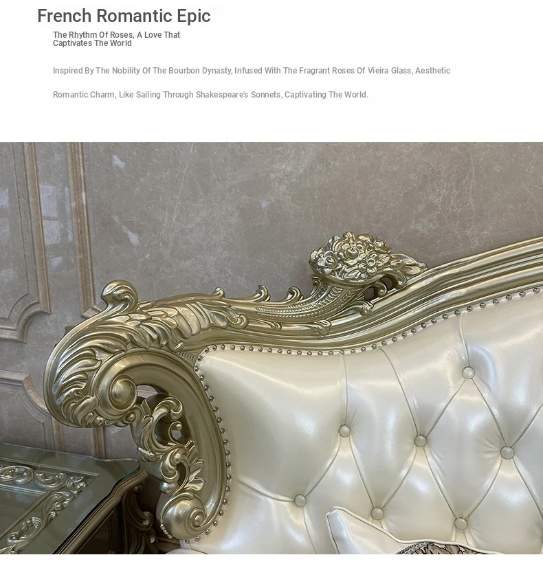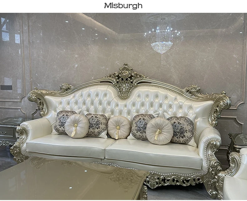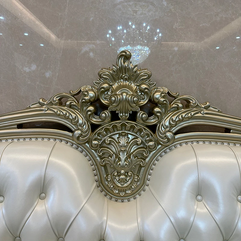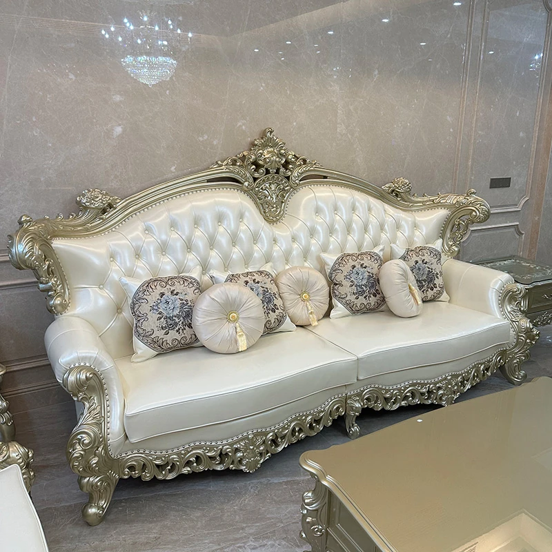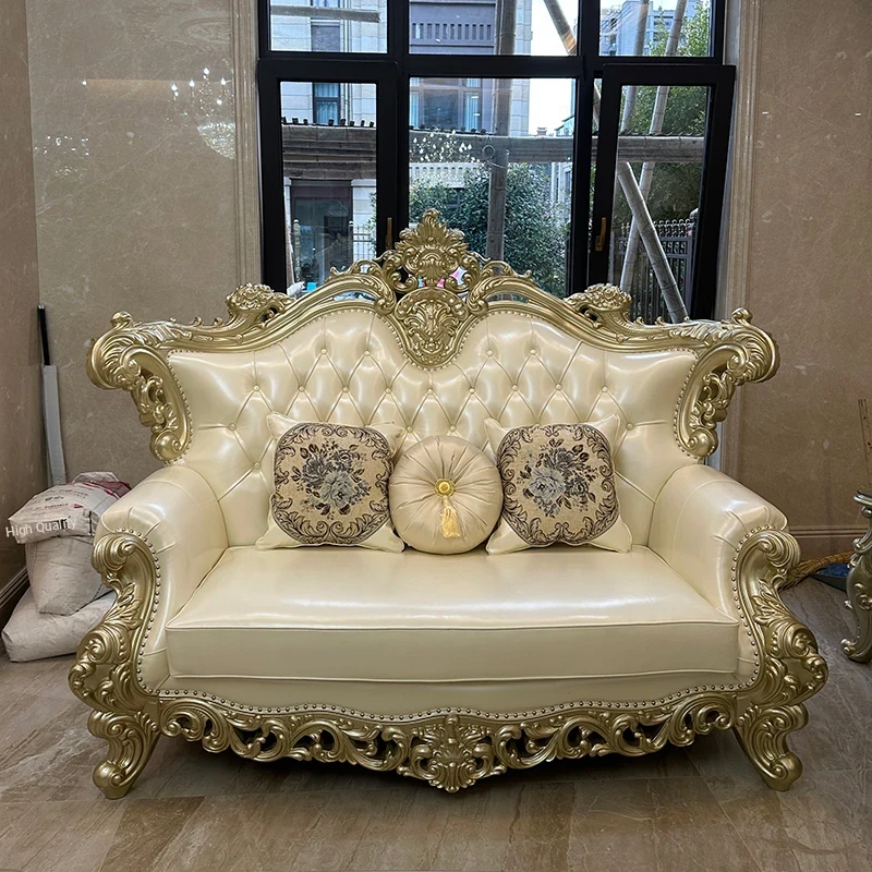 Luxurious European Genuine Leather Sofa for Spacious Villas - Elegant Champagne Gold Finish, Solid Wood, French Minimalist Design, Perfect for Large Living Rooms