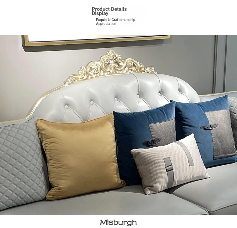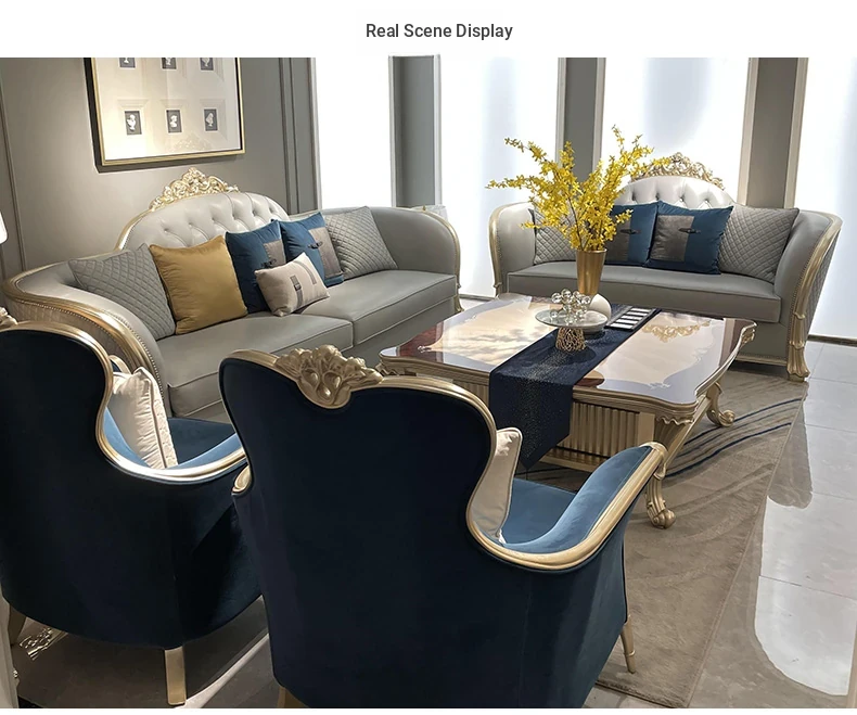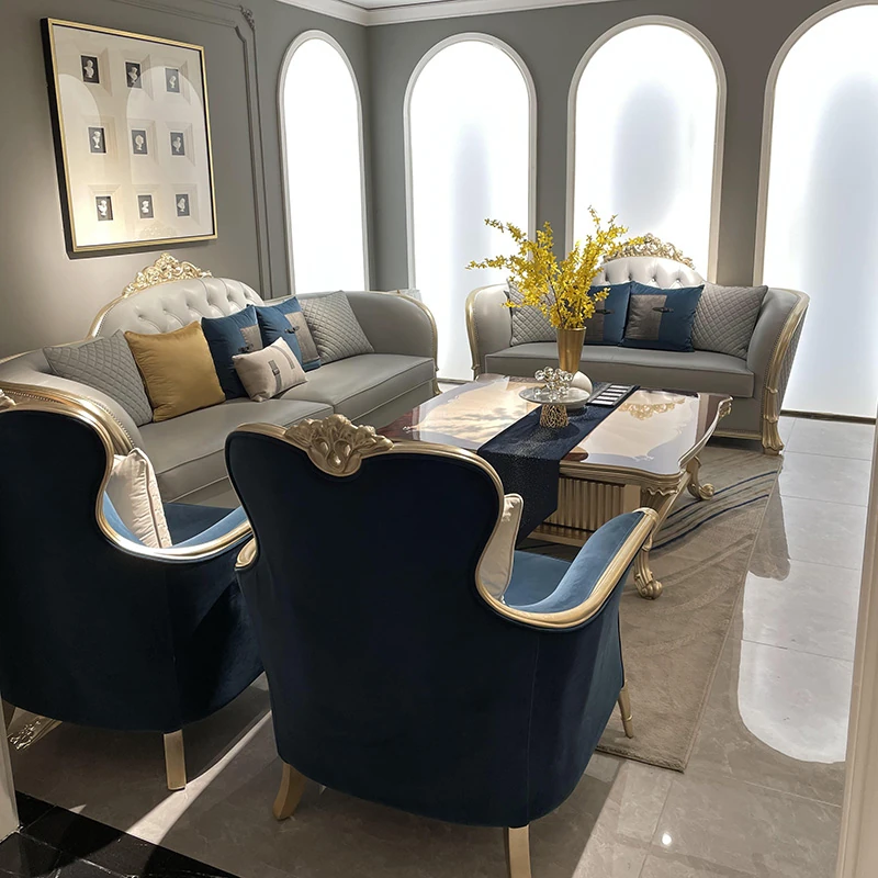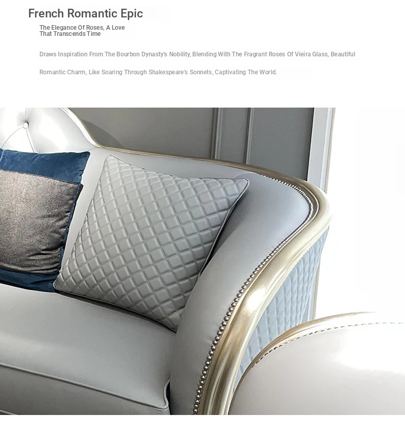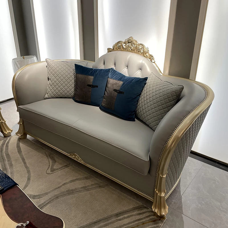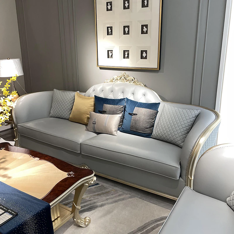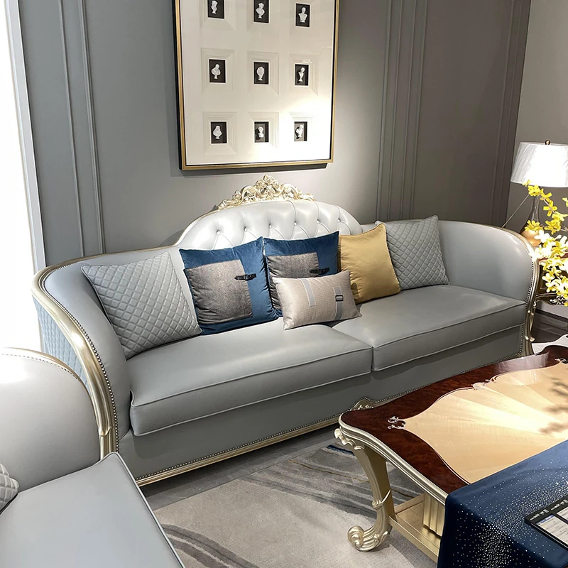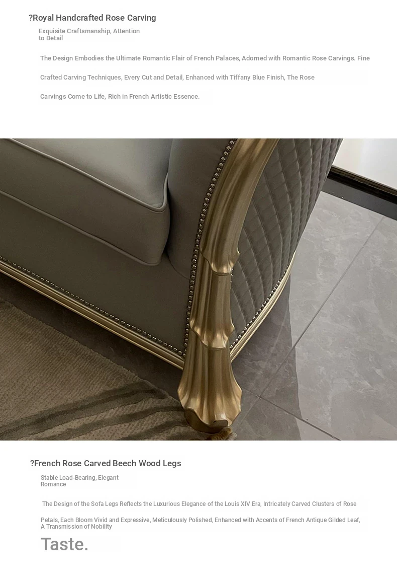 Luxurious French Leather Sofa - Elegant Solid Wood Champagne Gold Straight Sofa for Spacious Villas - Perfect for Your Elegant Living Room, European Style Furniture