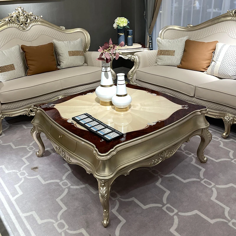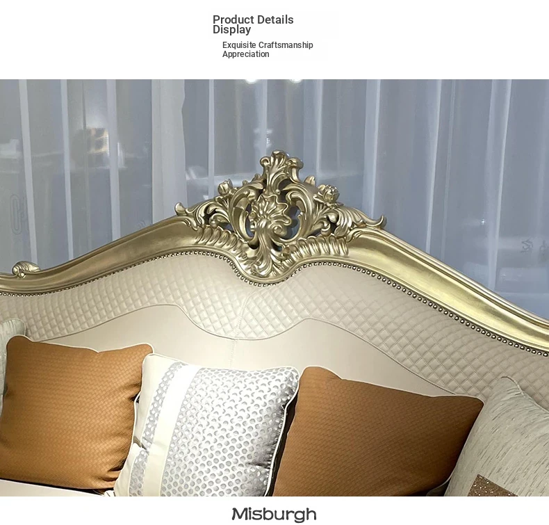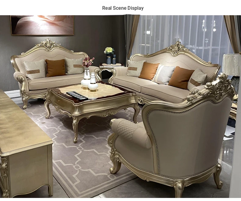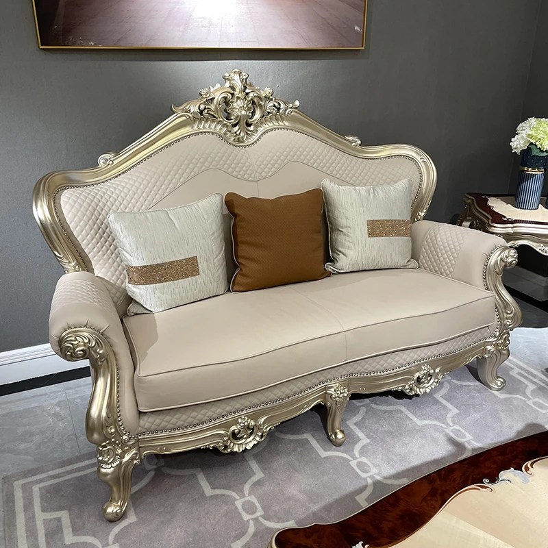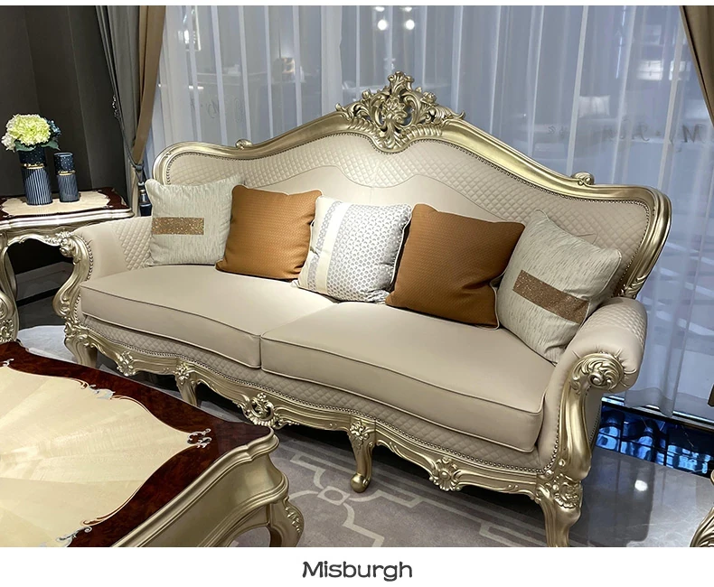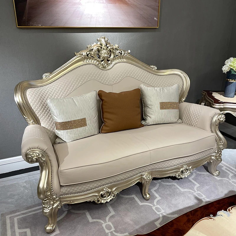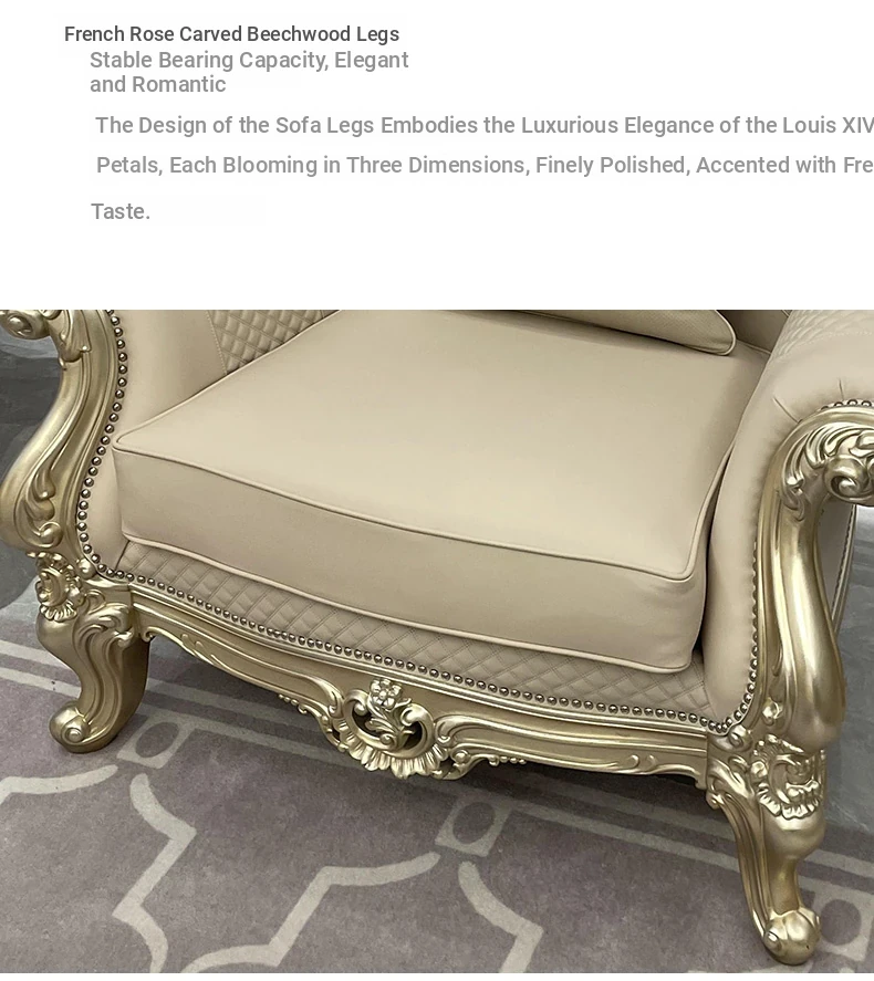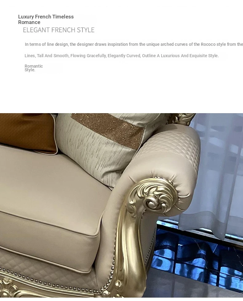 Luxurious French Style Leather Sofa – Elegant Solid Wood Carved Three-Seater for Villas and Spacious Apartments – Perfect for Any Home Décor