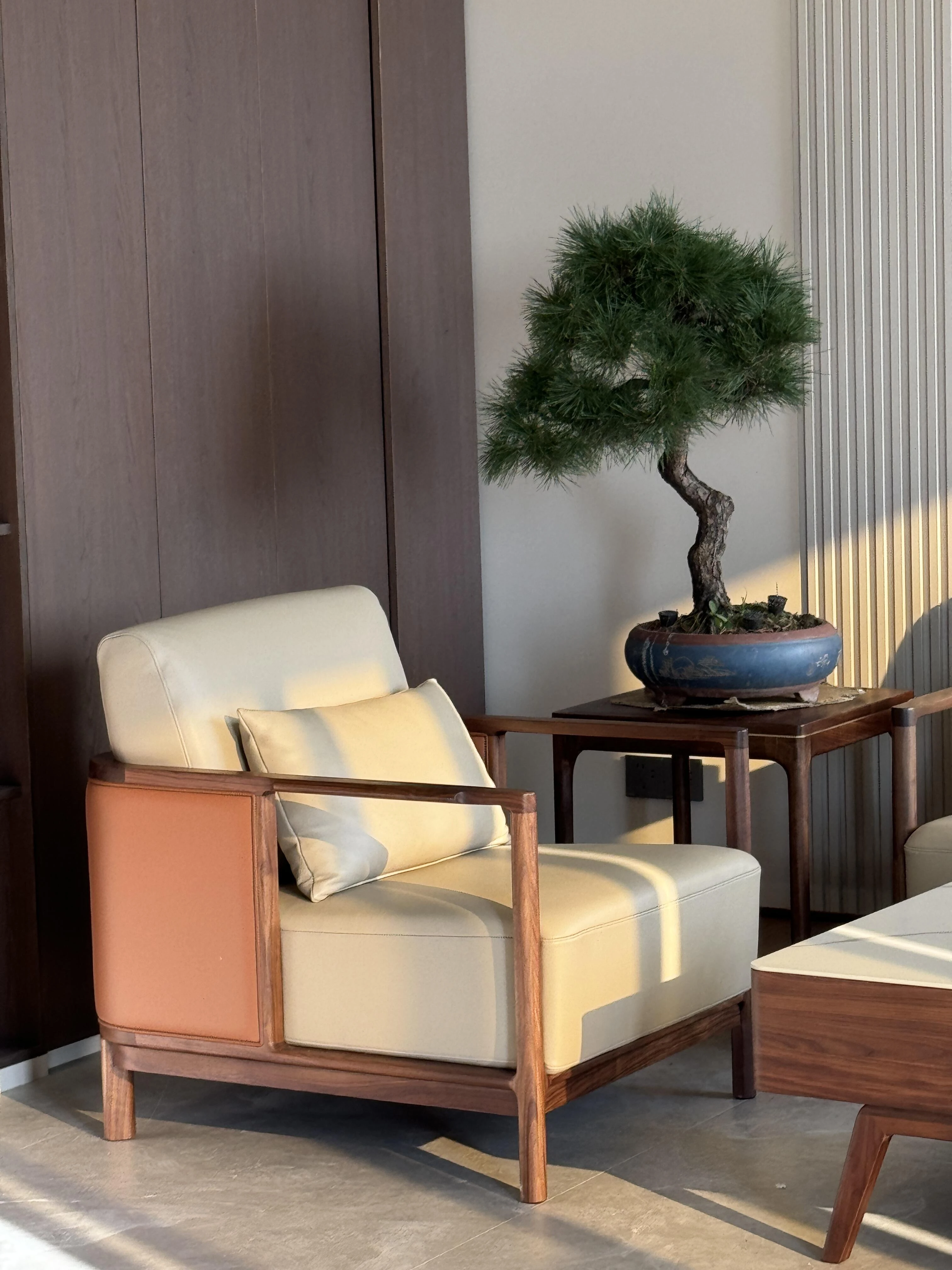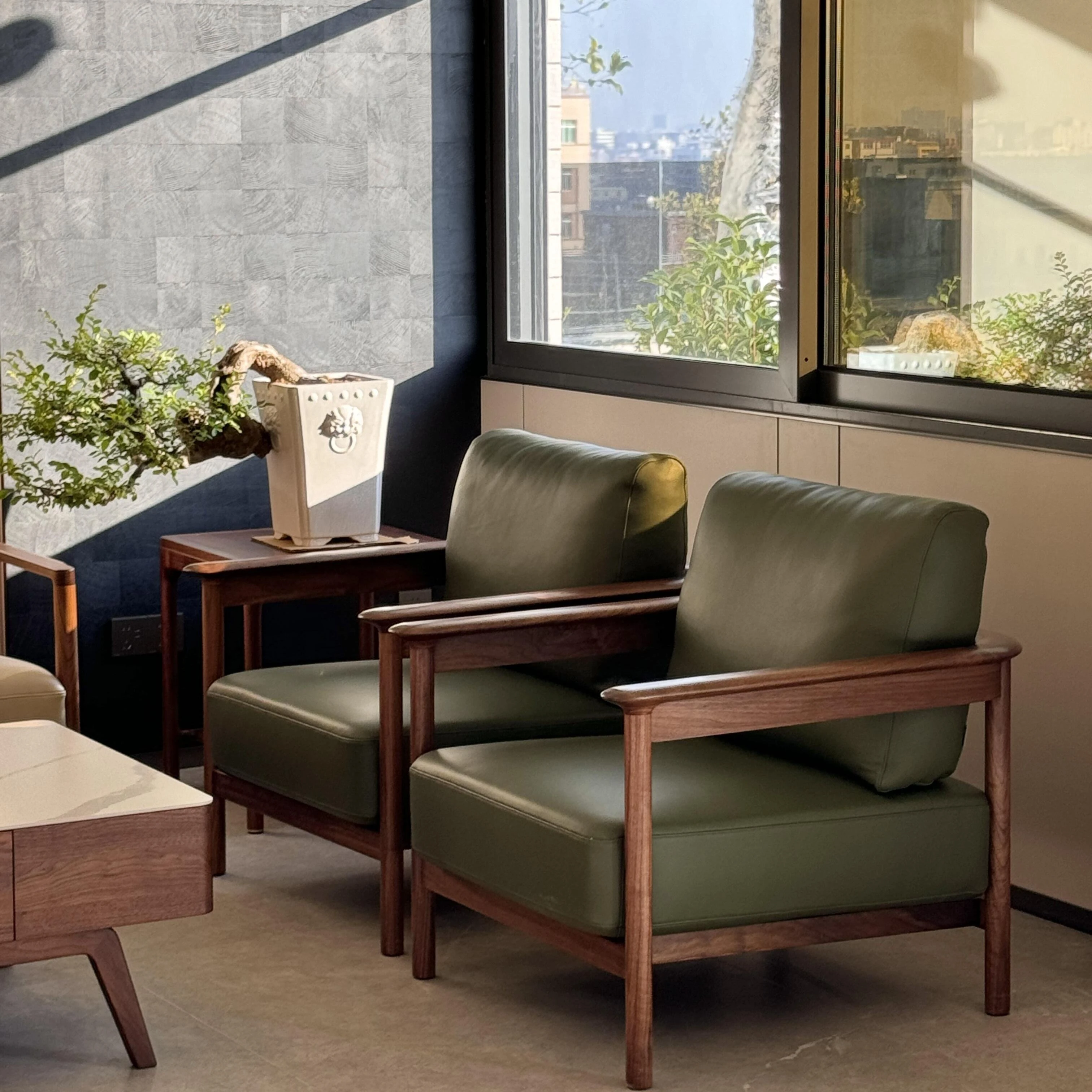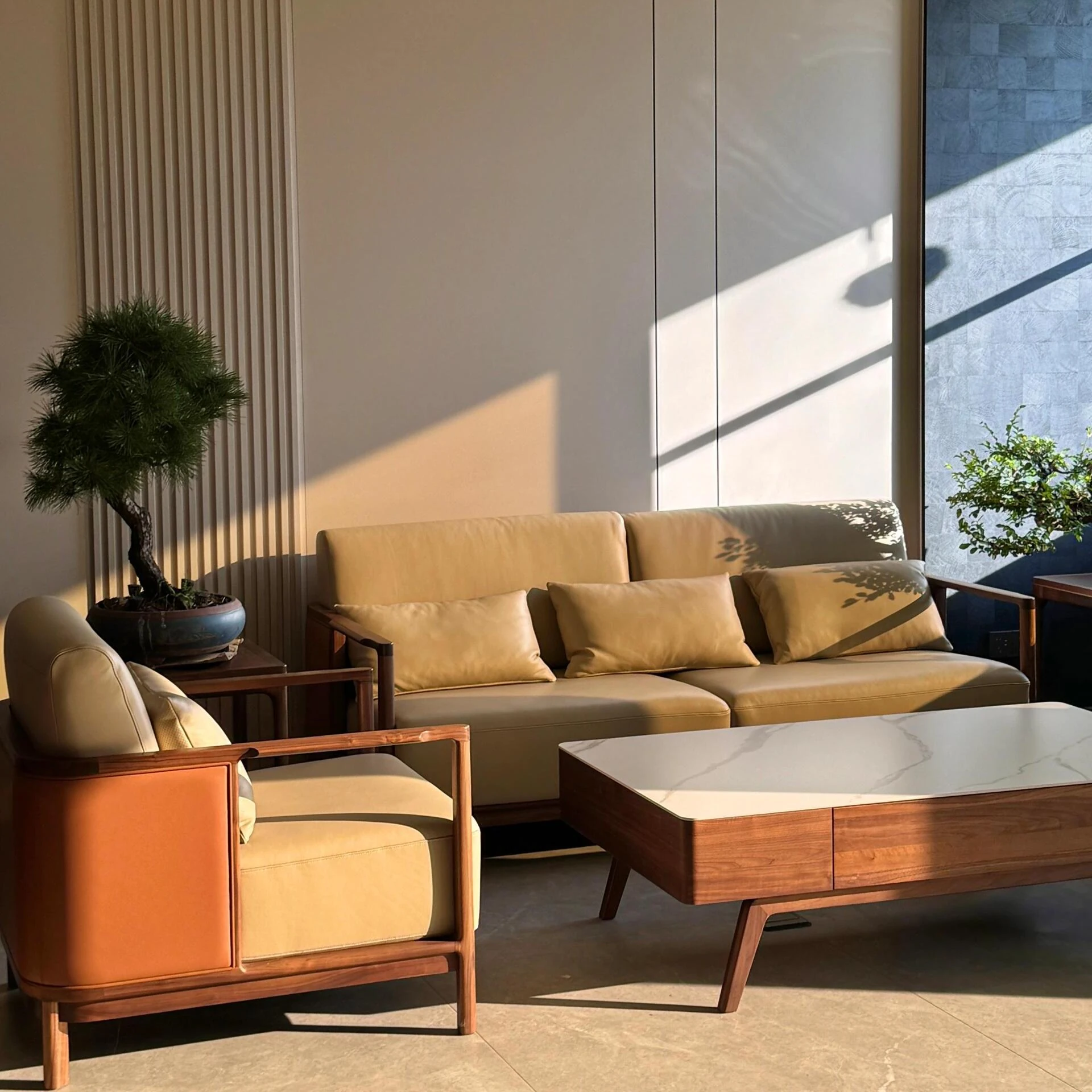 Luxurious Modern Minimalist Black Walnut Sofa and Coffee Table Set - Chic New Chinese Style Solid Wood Armchair for Elegant Living Spaces