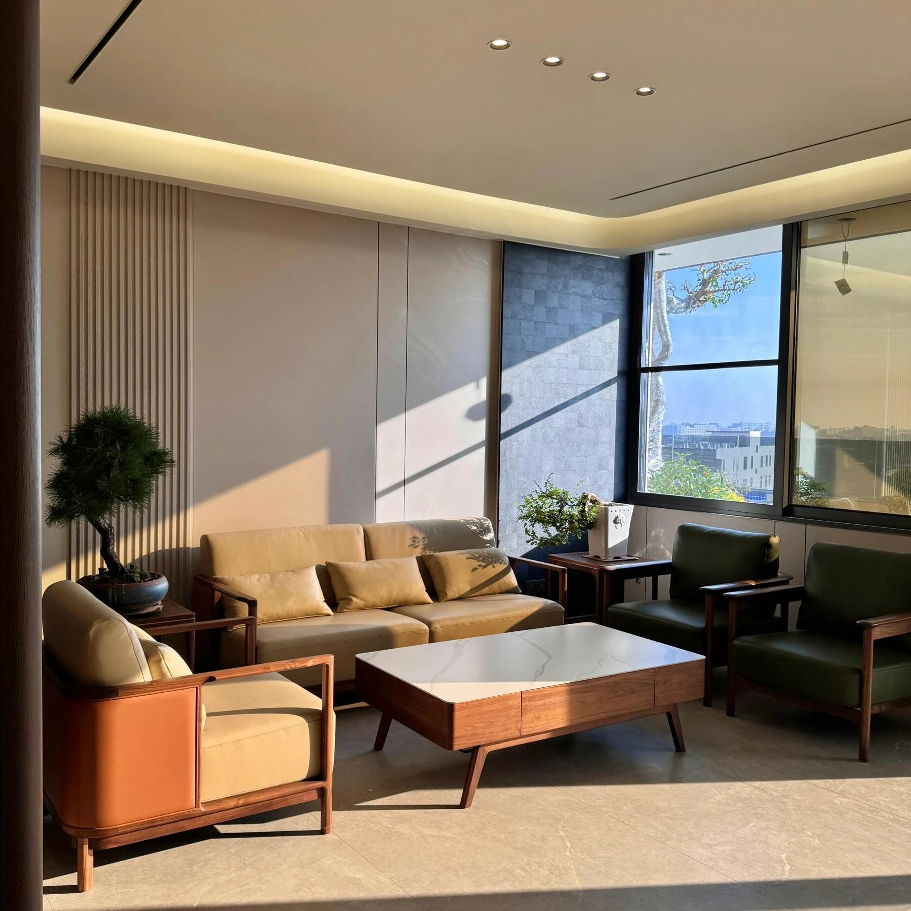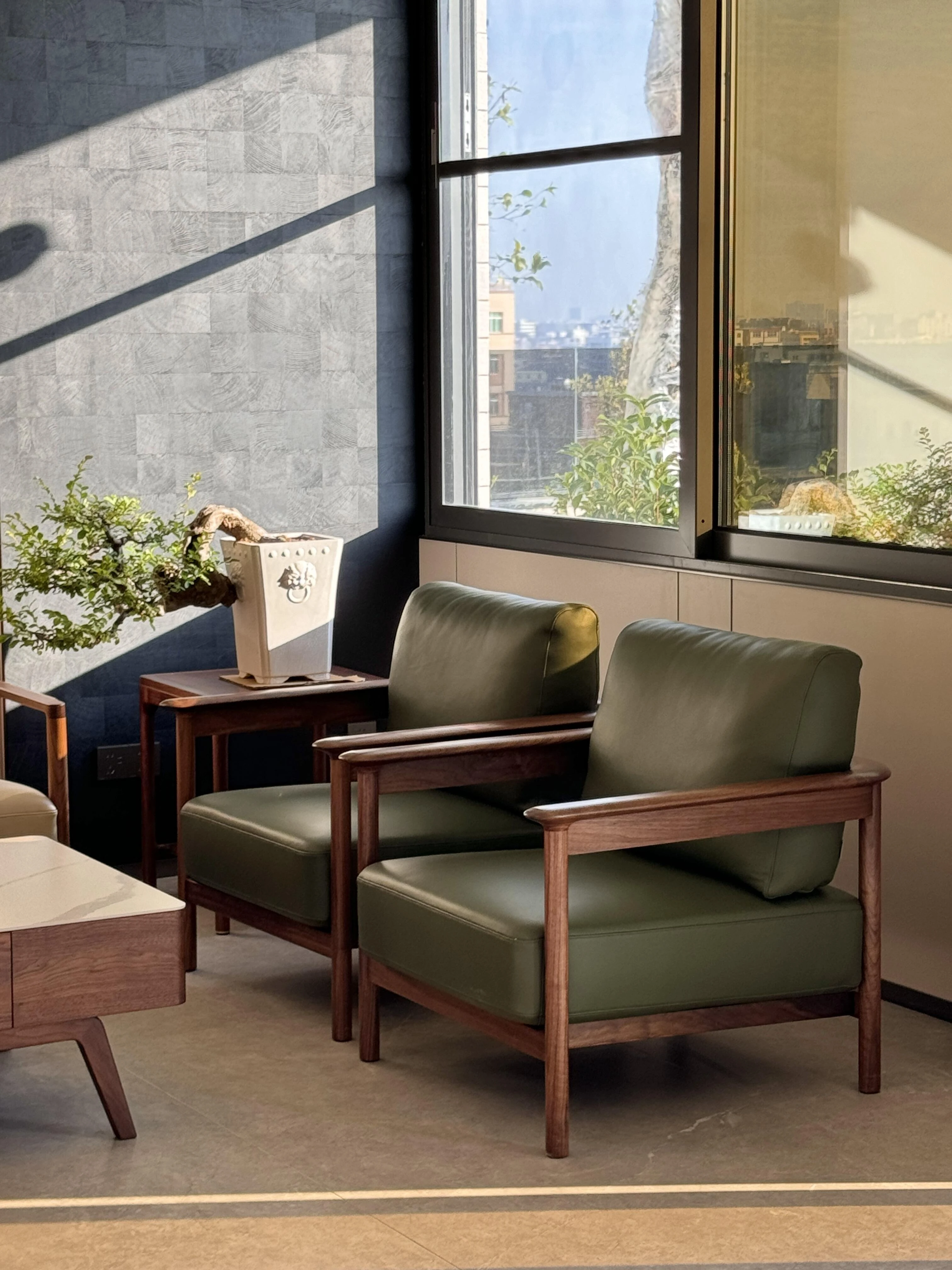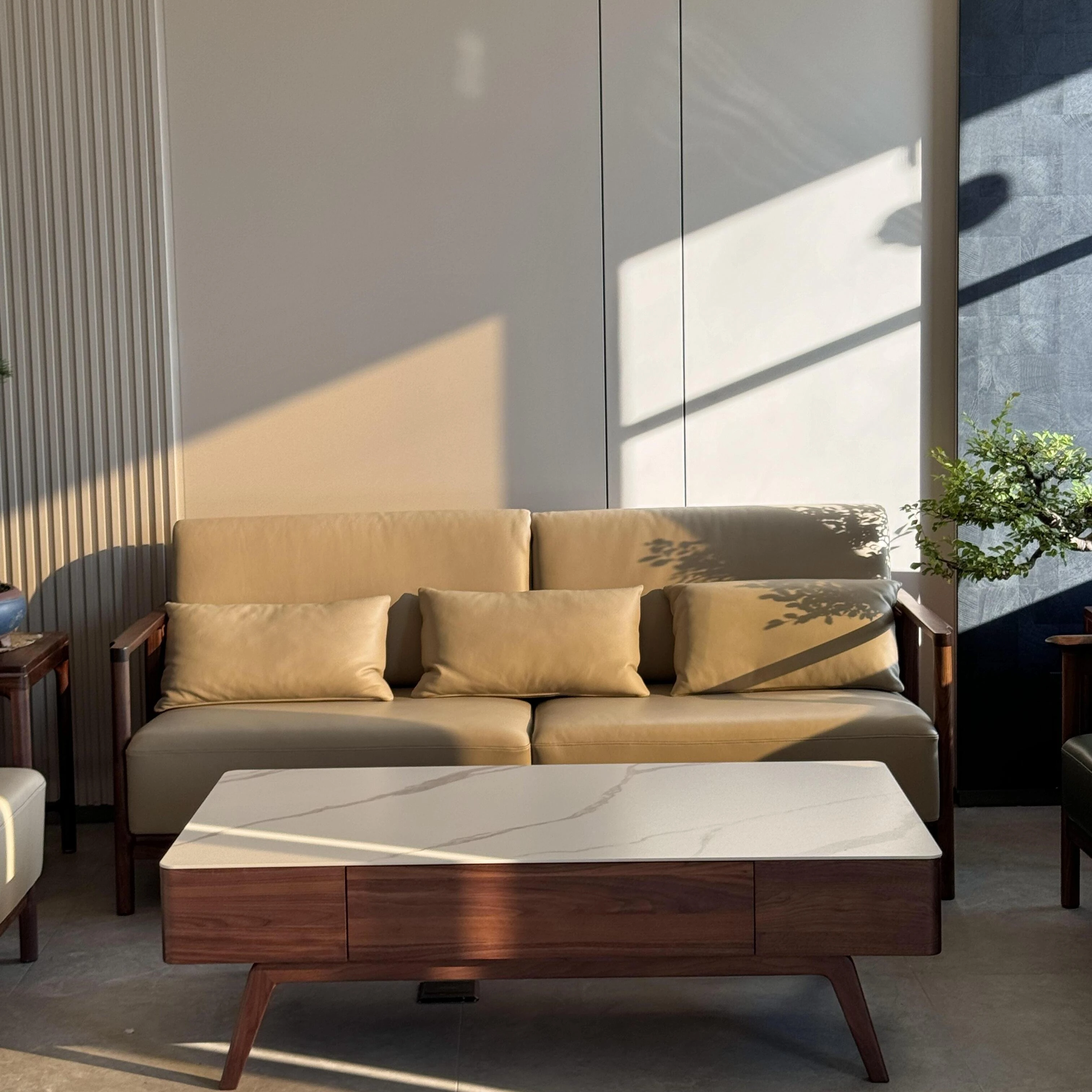 Luxurious Modern Minimalist Black Walnut Sofa and Coffee Table Set - Chic New Chinese Style Solid Wood Armchair for Elegant Living Spaces