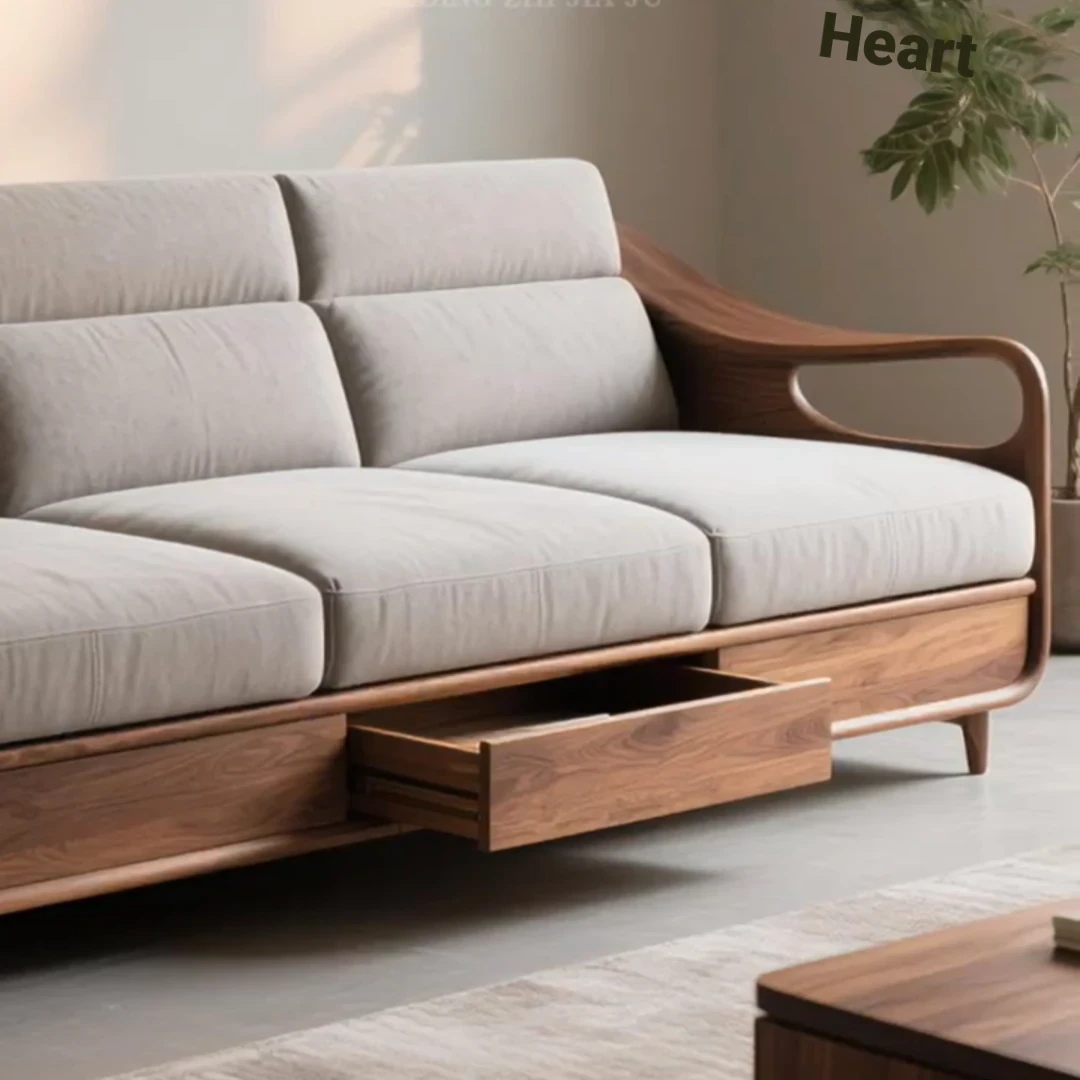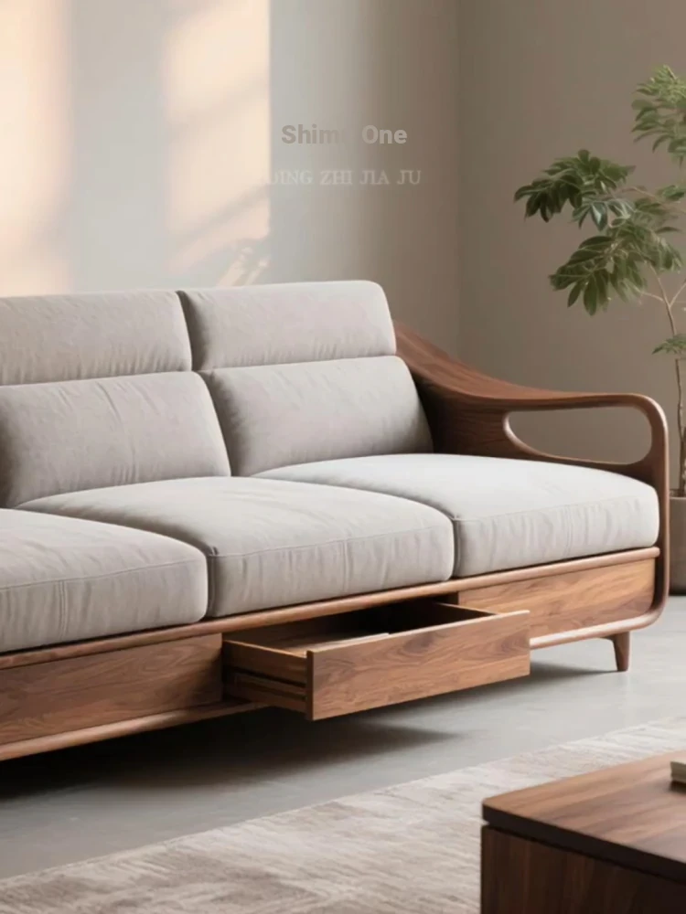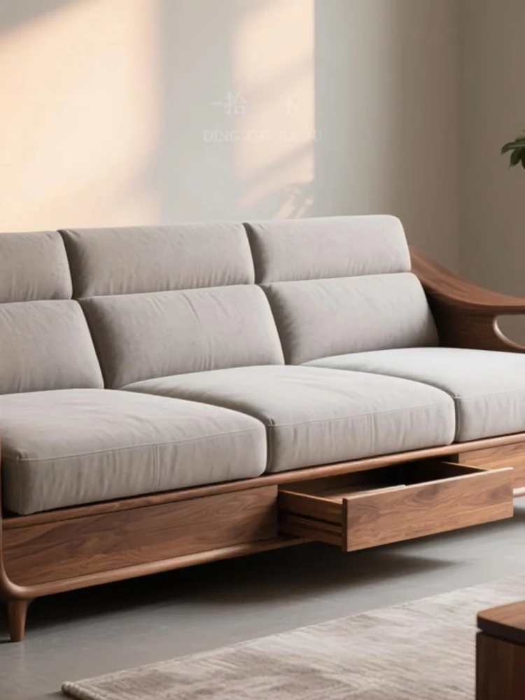 Luxurious North American Black Walnut Sofa with Velvet Cushions - Modern Design for Living Rooms, High-End Hotels, Villas, and Clubhouses - Perfect for Any Space