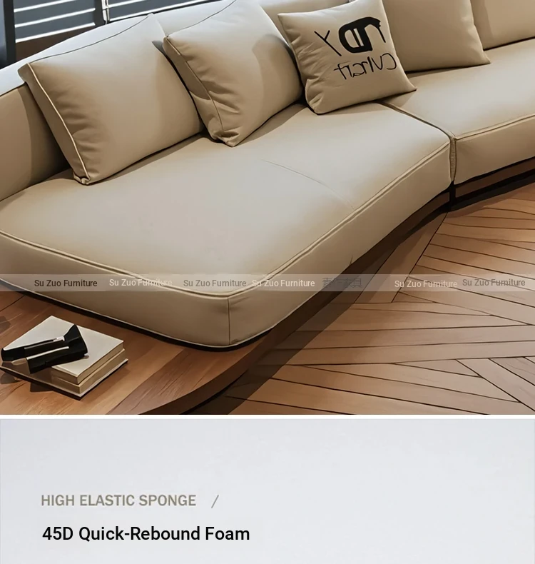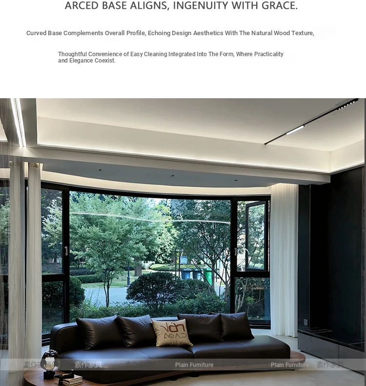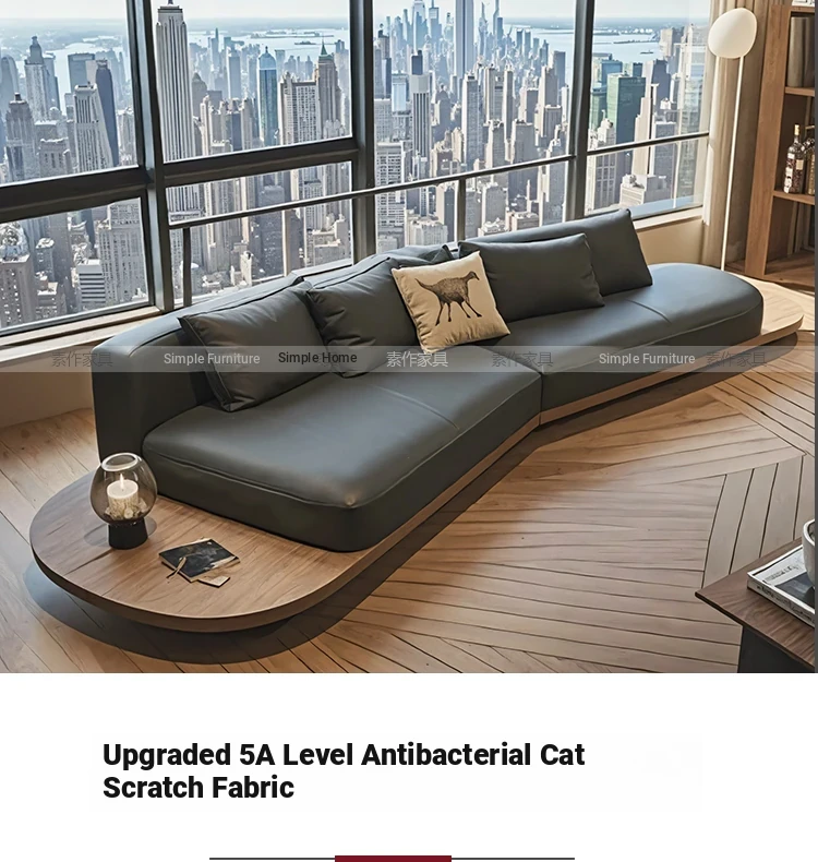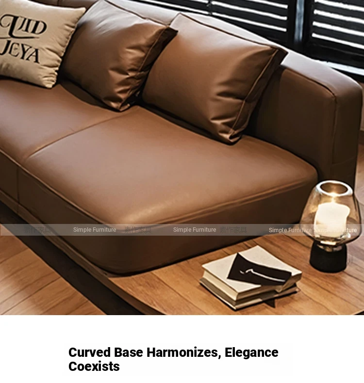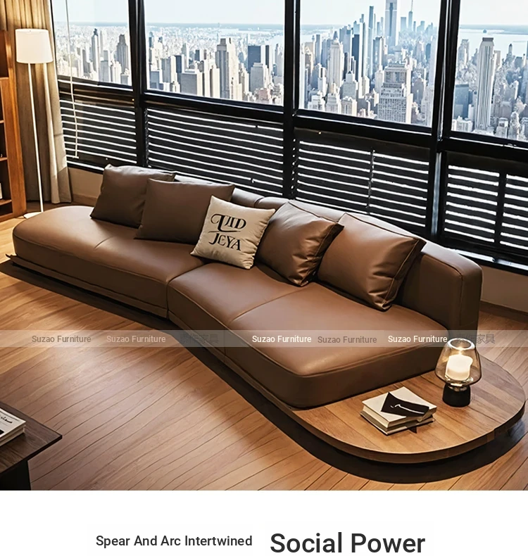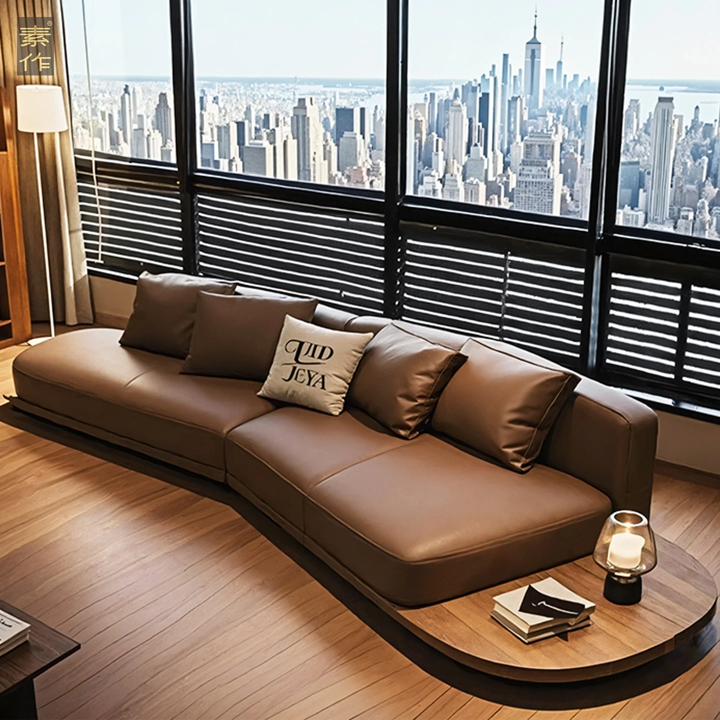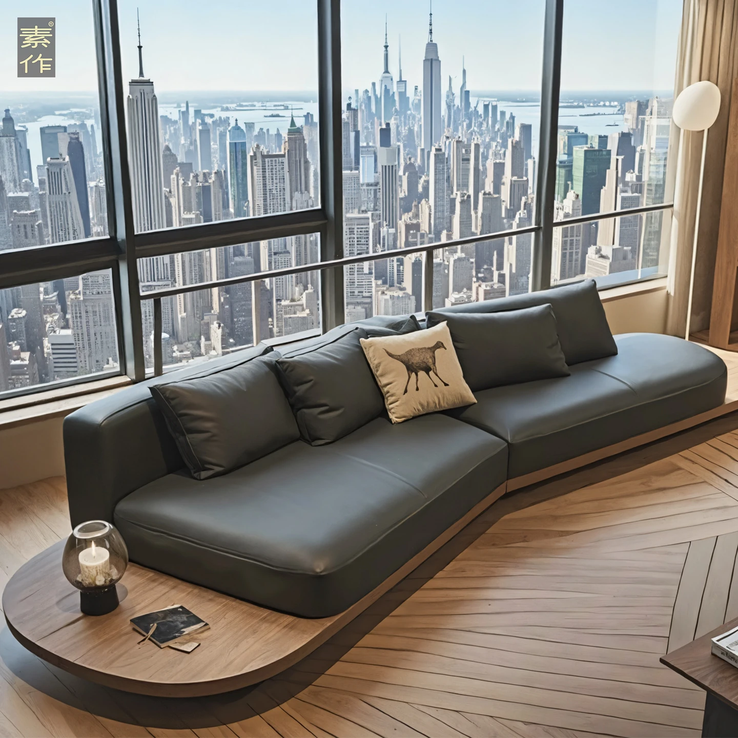Luxury Black Walnut Corner Sofa for Villa Living Room - Unique Shaped Italian Minimalist Real Leather & Solid Wood Design