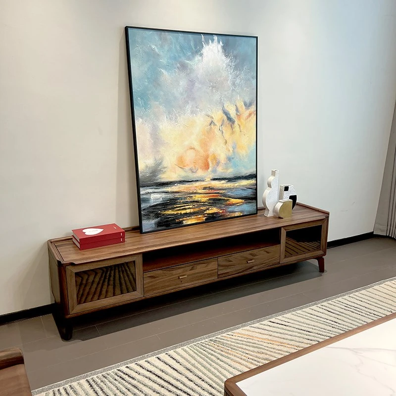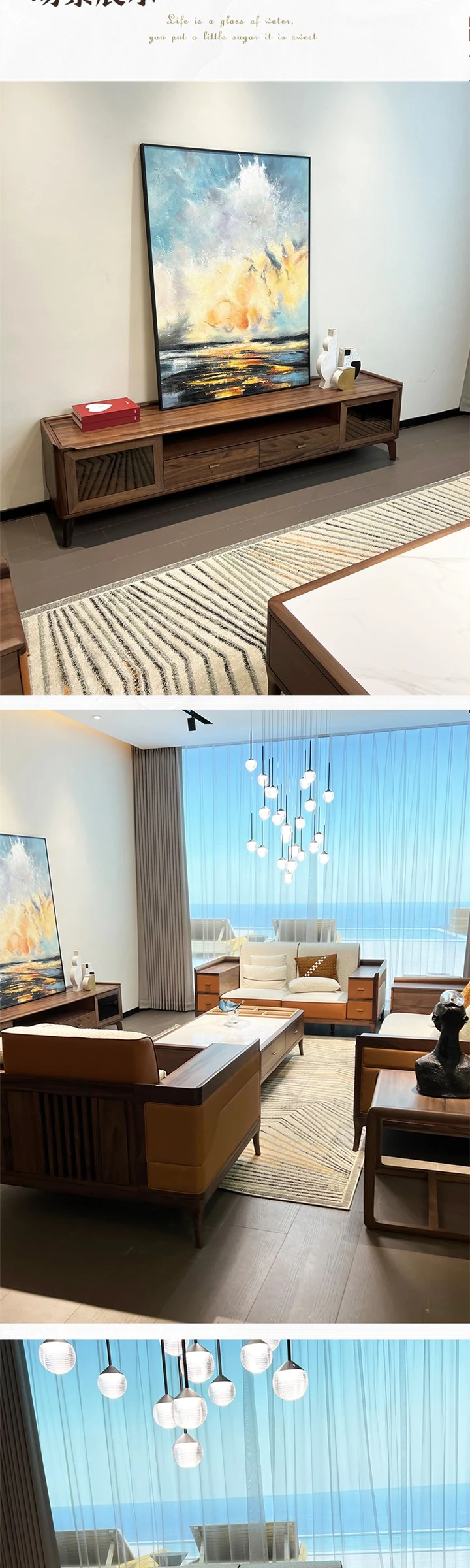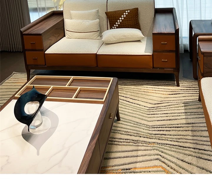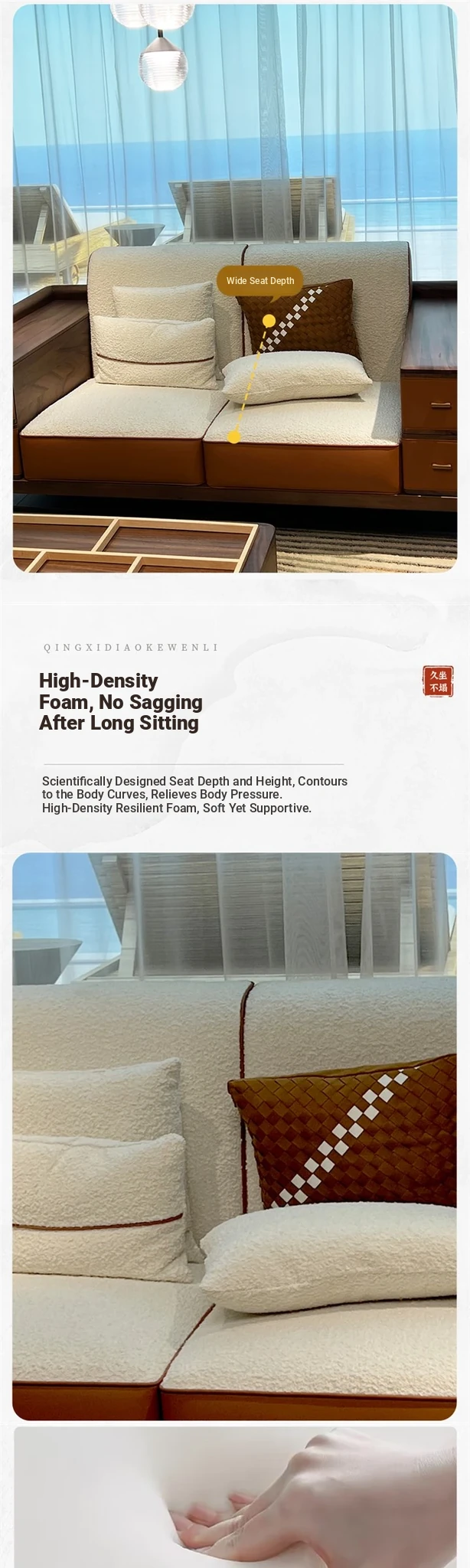 Luxury Modern Chinese Style Black Walnut Sofa Set for Living Room - Elegant Genuine Leather and Solid Wood Design for Villas and Contemporary Spaces