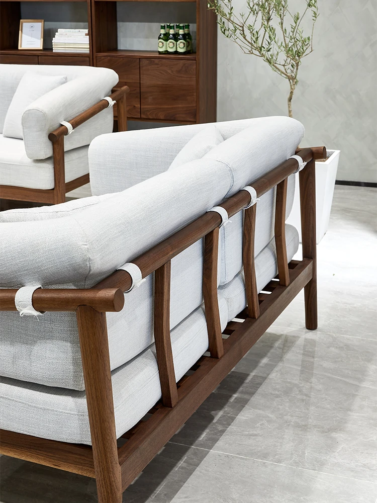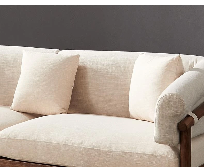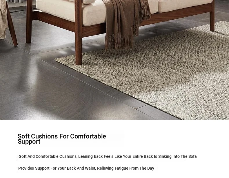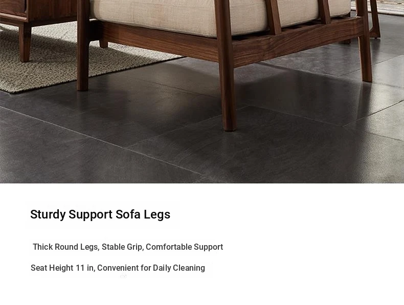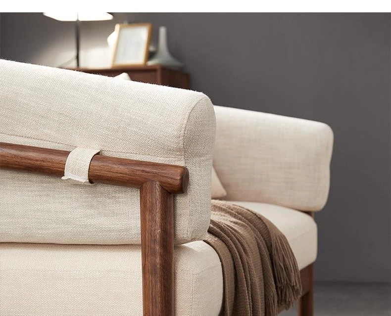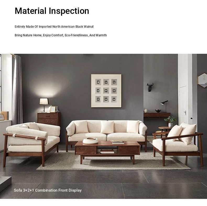 Luxury Modern Solid Wood Sofa Set - Walnut Fabric Upholstery, Scandinavian Style for Small Spaces, Perfect for Chic Living Rooms