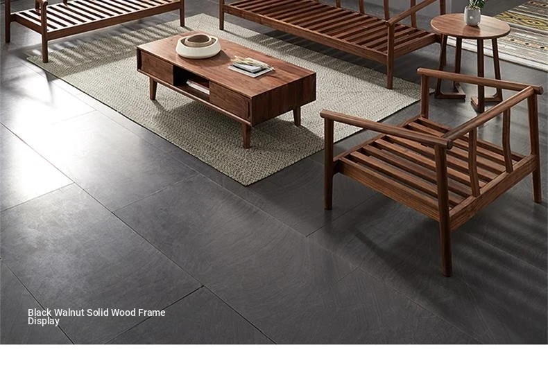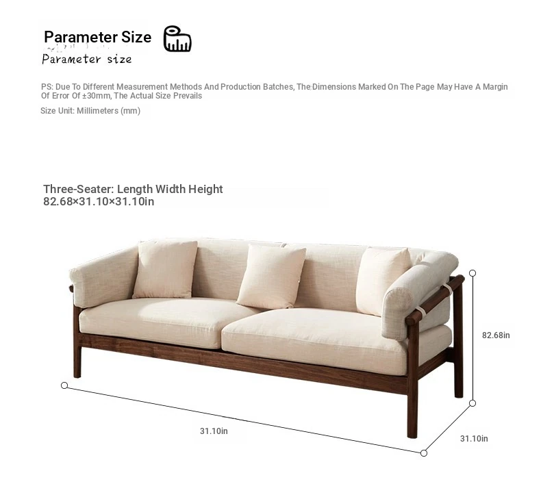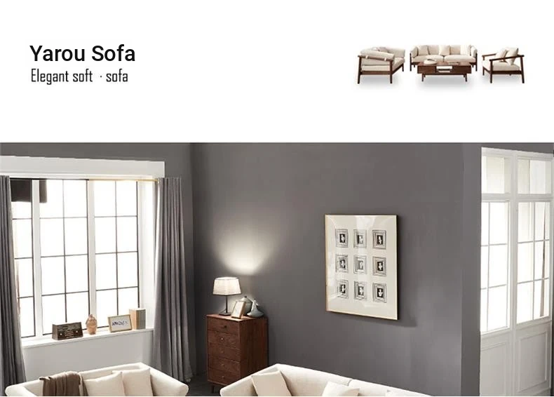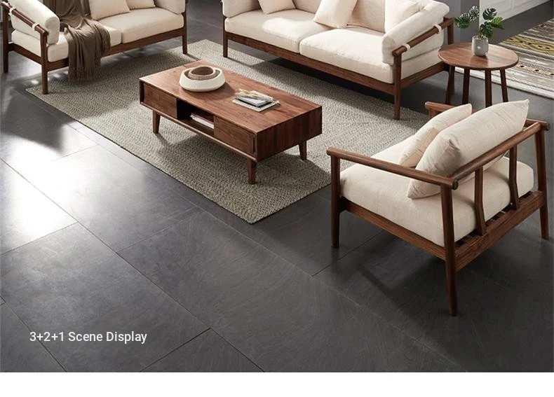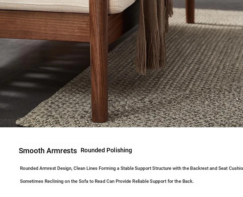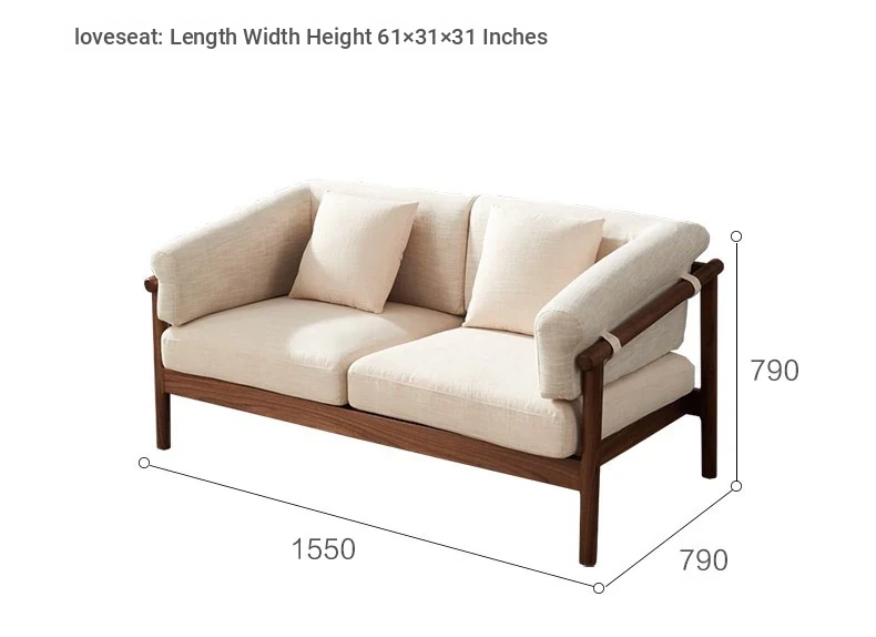 Luxury Modern Solid Wood Sofa Set - Walnut Fabric Upholstery, Scandinavian Style for Small Spaces, Perfect for Chic Living Rooms