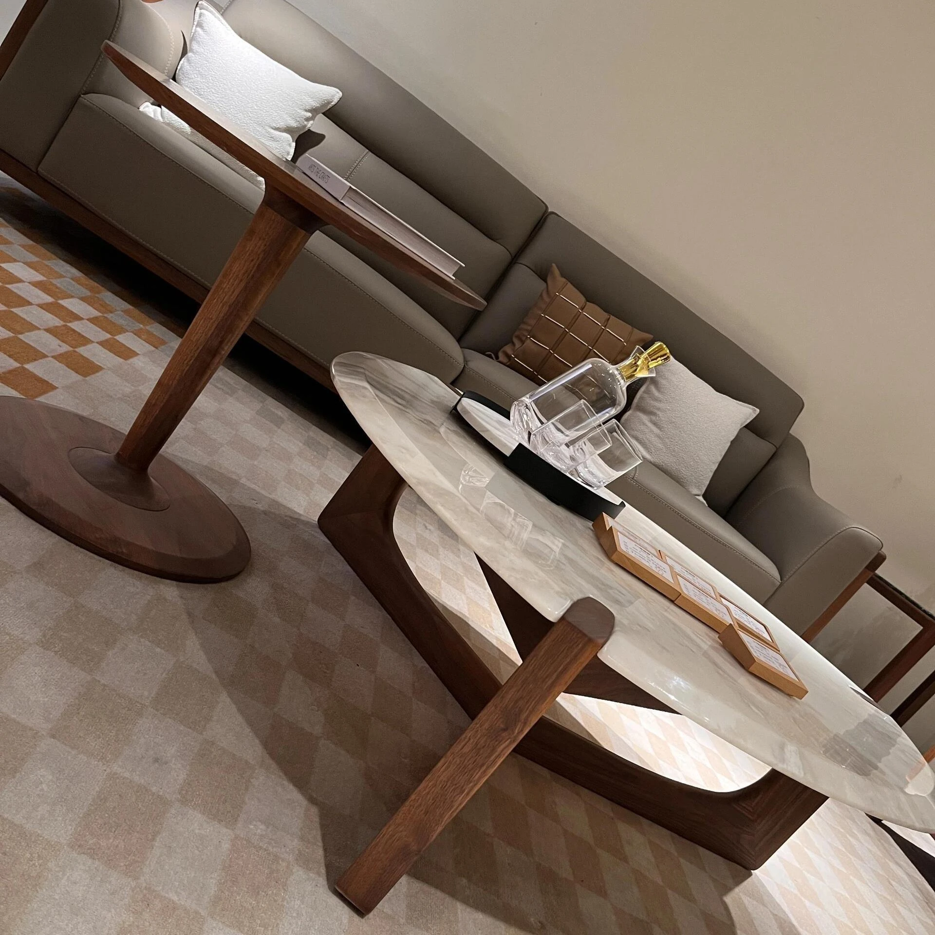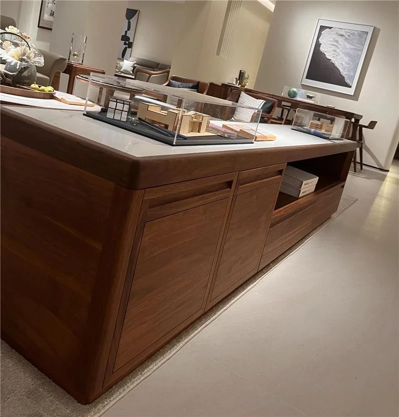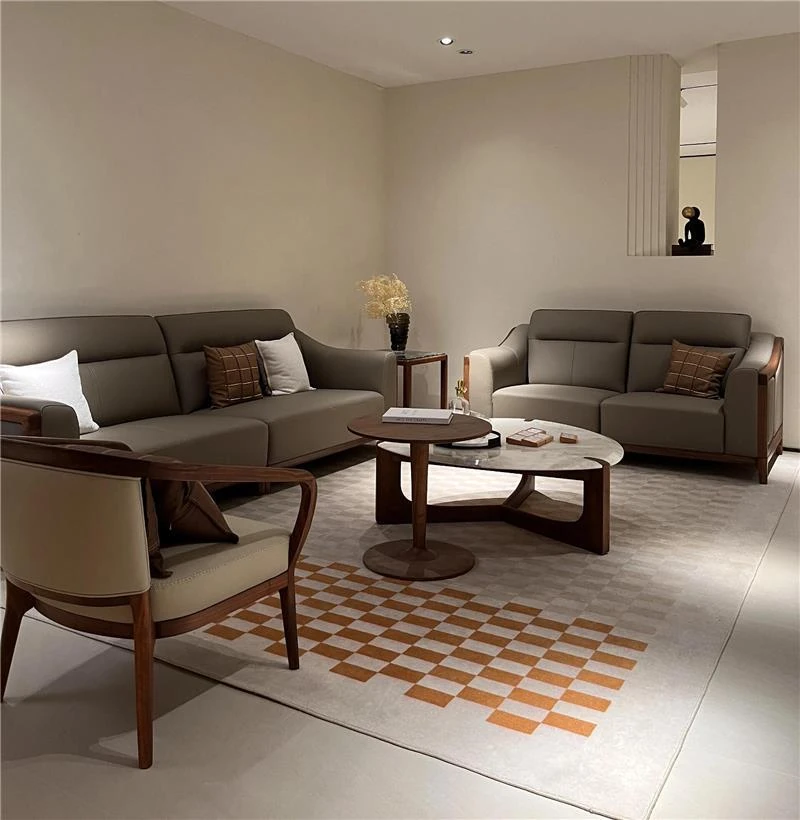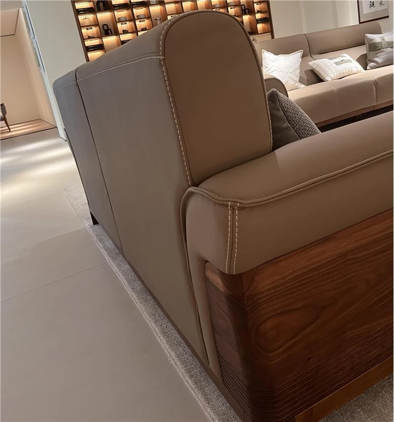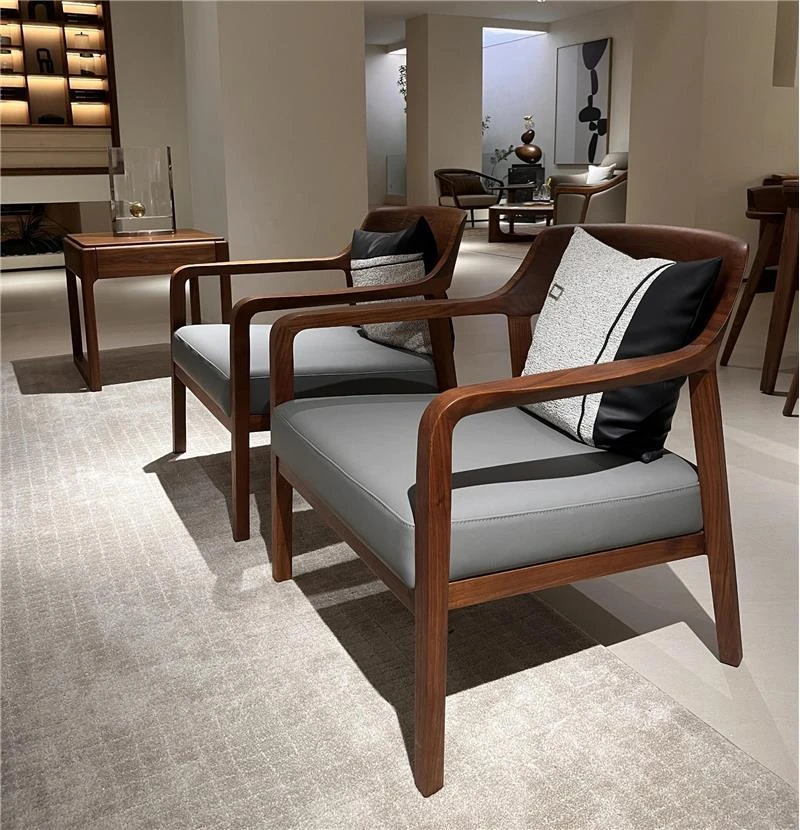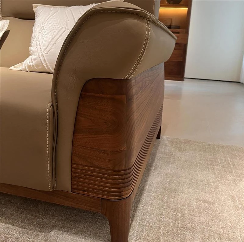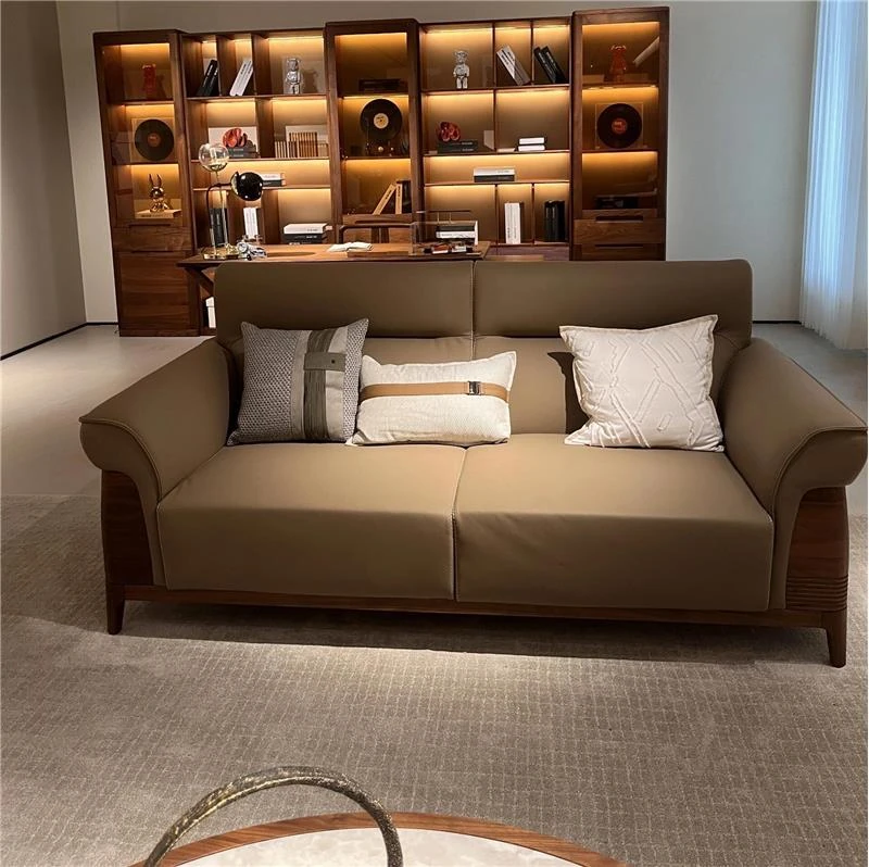 Luxury Solid Black Walnut Wood Sofa for Model Rooms - Modern Minimalist Design for Spacious Living Rooms and High-End Villas
