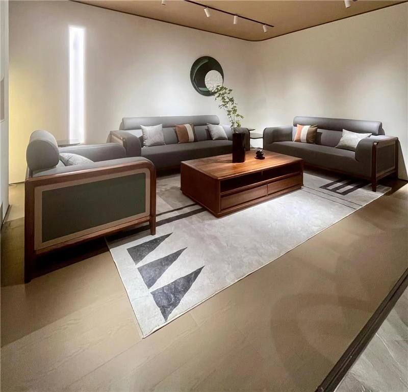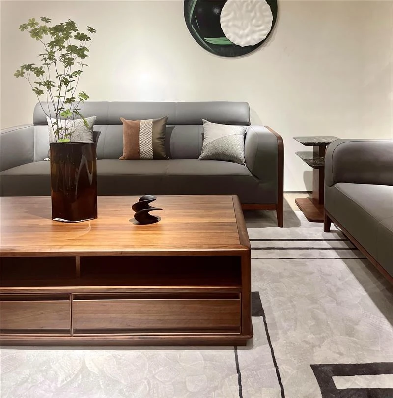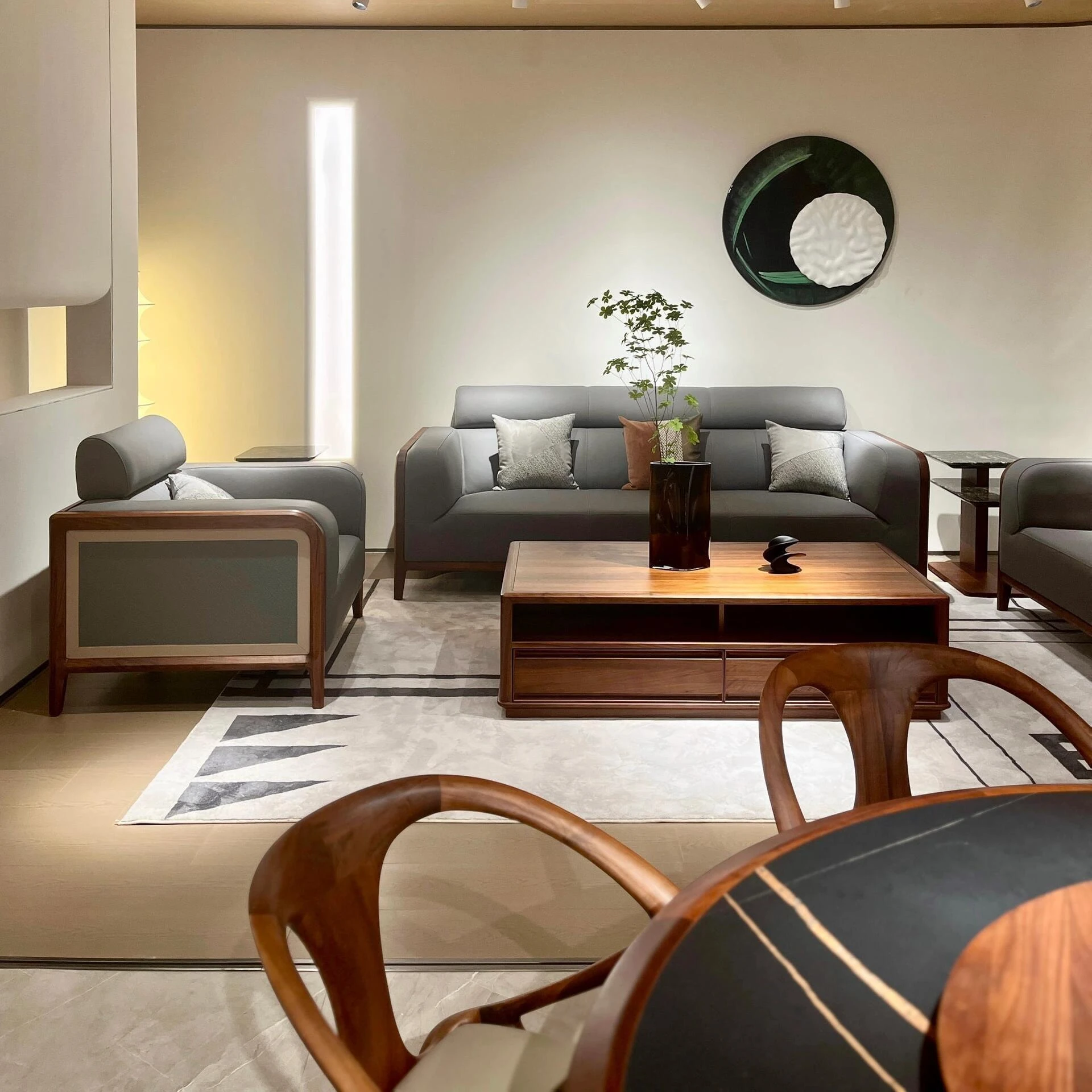 Luxury Villa Showroom - Modern Minimalist Black Walnut Solid Wood Sofa for Bedroom and Living Room in High-End Flat Design