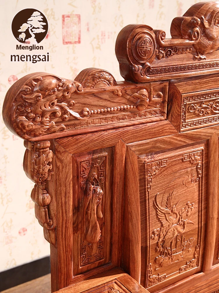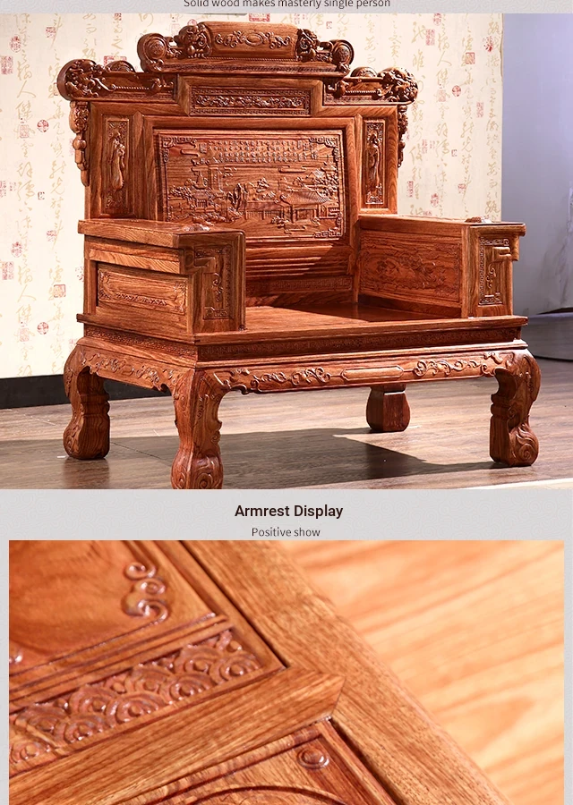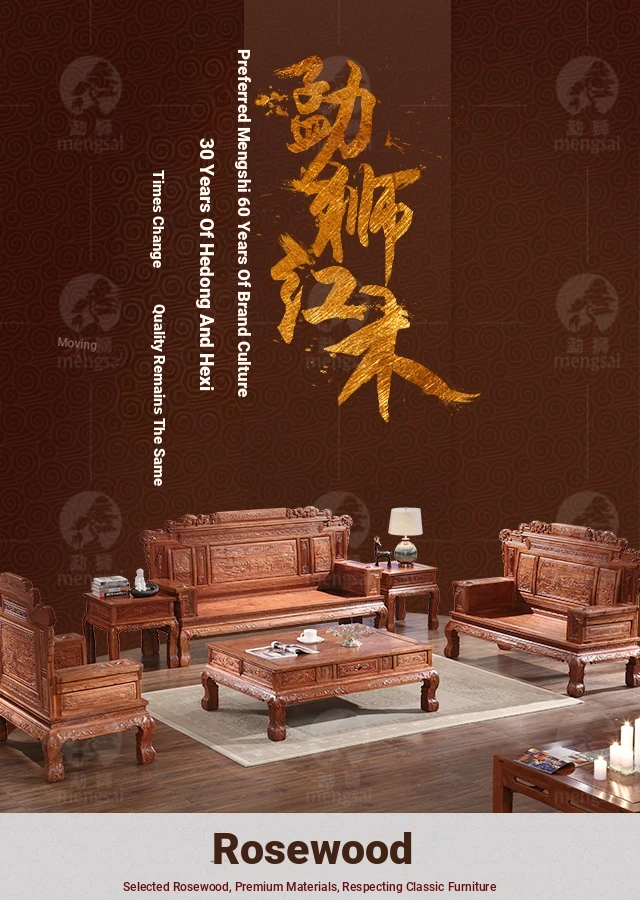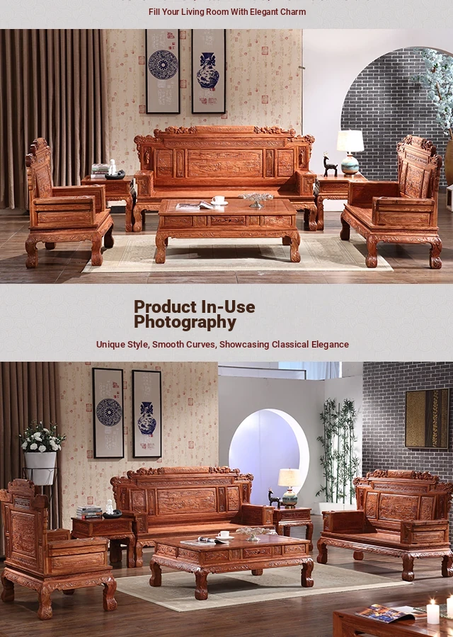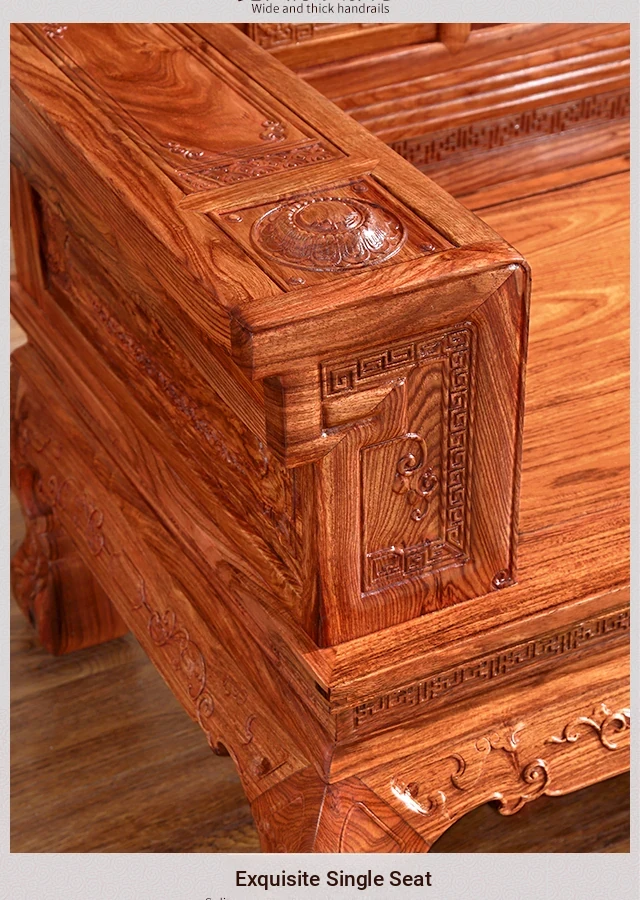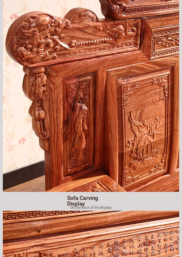 Mengshi Rosewood Furniture - Classical Chinese Solid Wood Sofa with Curved Legs, Featuring Stunning Floral and Landscape Motifs, Perfect for Your Living Room