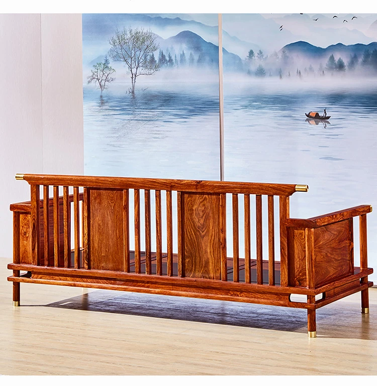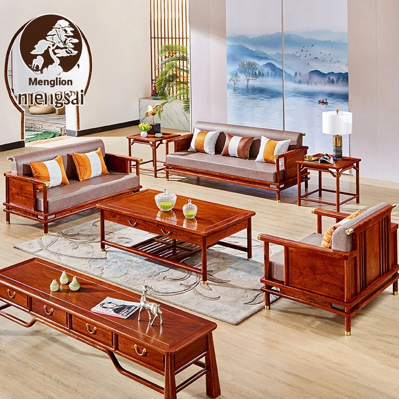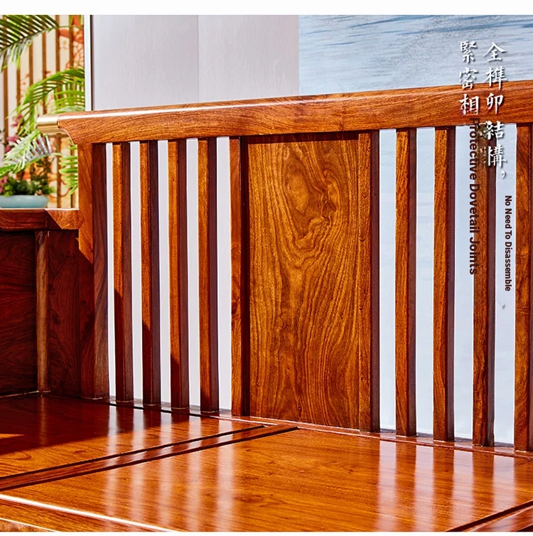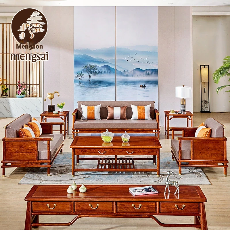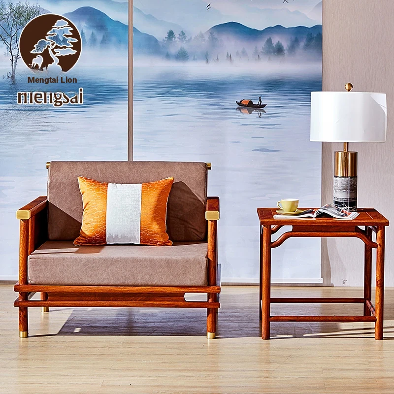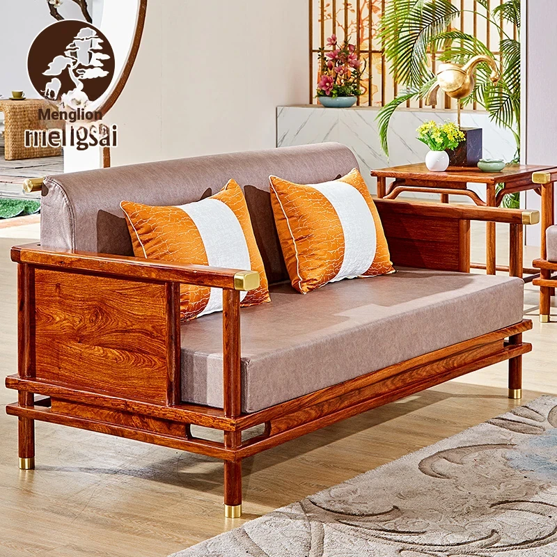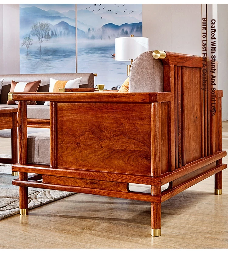 Mengshi Rosewood Furniture - Solid Wood Sofa with African Padauk, Versatile Chinese Style Sofa for Winter and Summer, Comfortable Upholstered Design