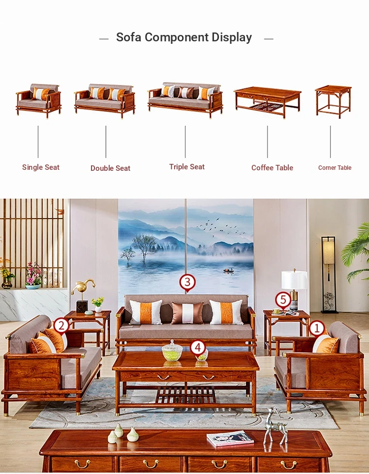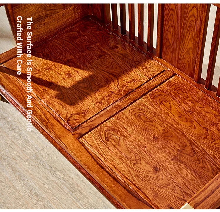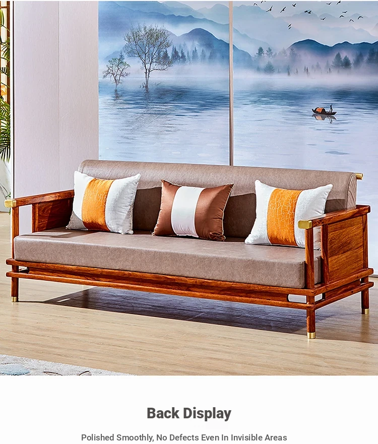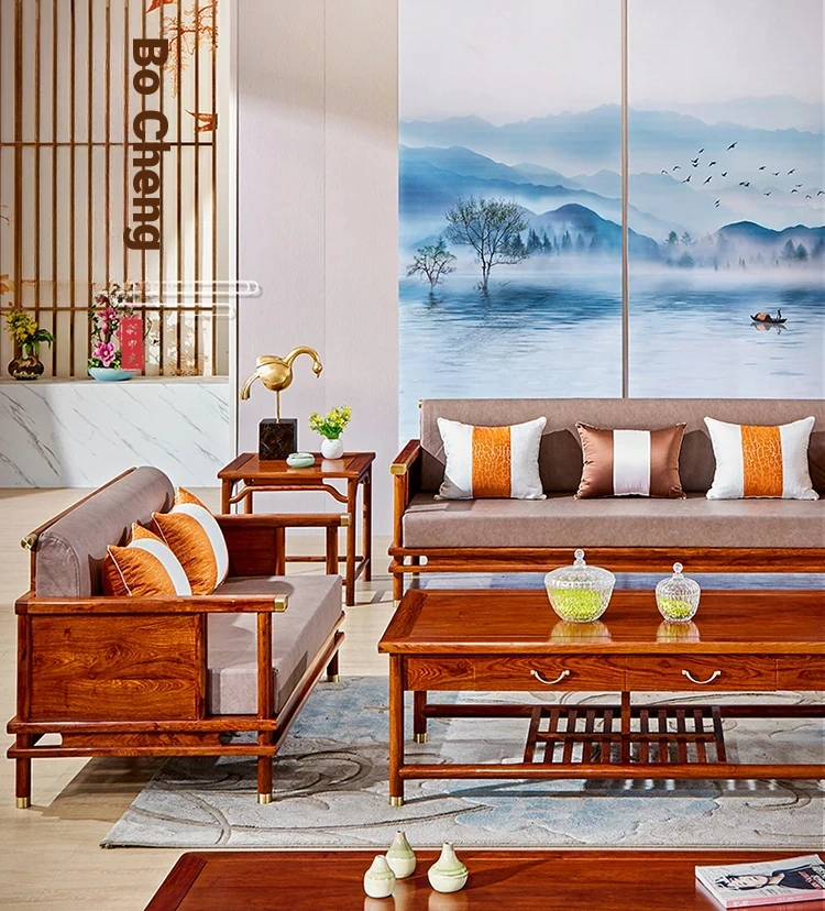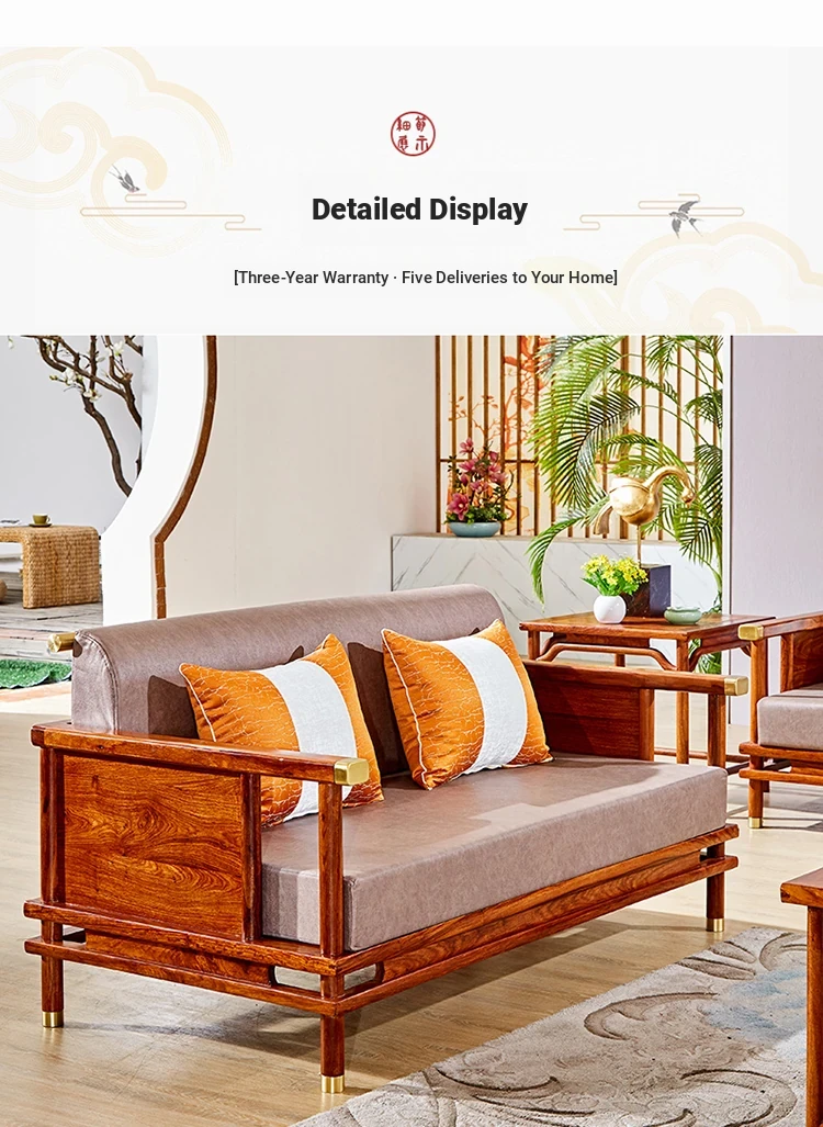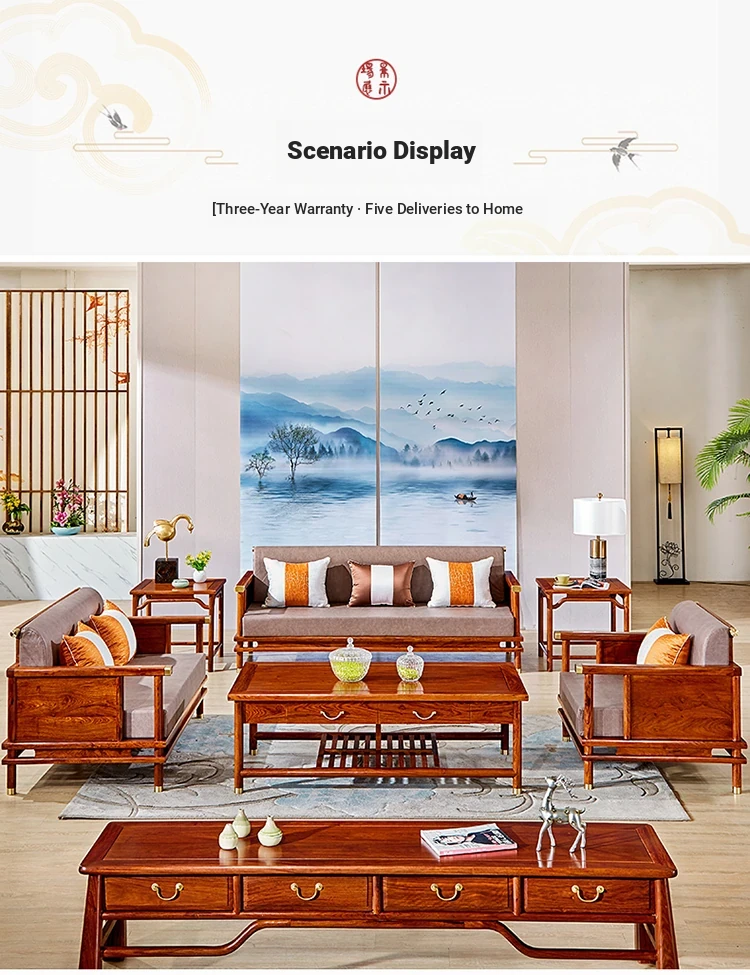 Mengshi Rosewood Furniture - Solid Wood Sofa with African Padauk, Versatile Chinese Style Sofa for Winter and Summer, Comfortable Upholstered Design
