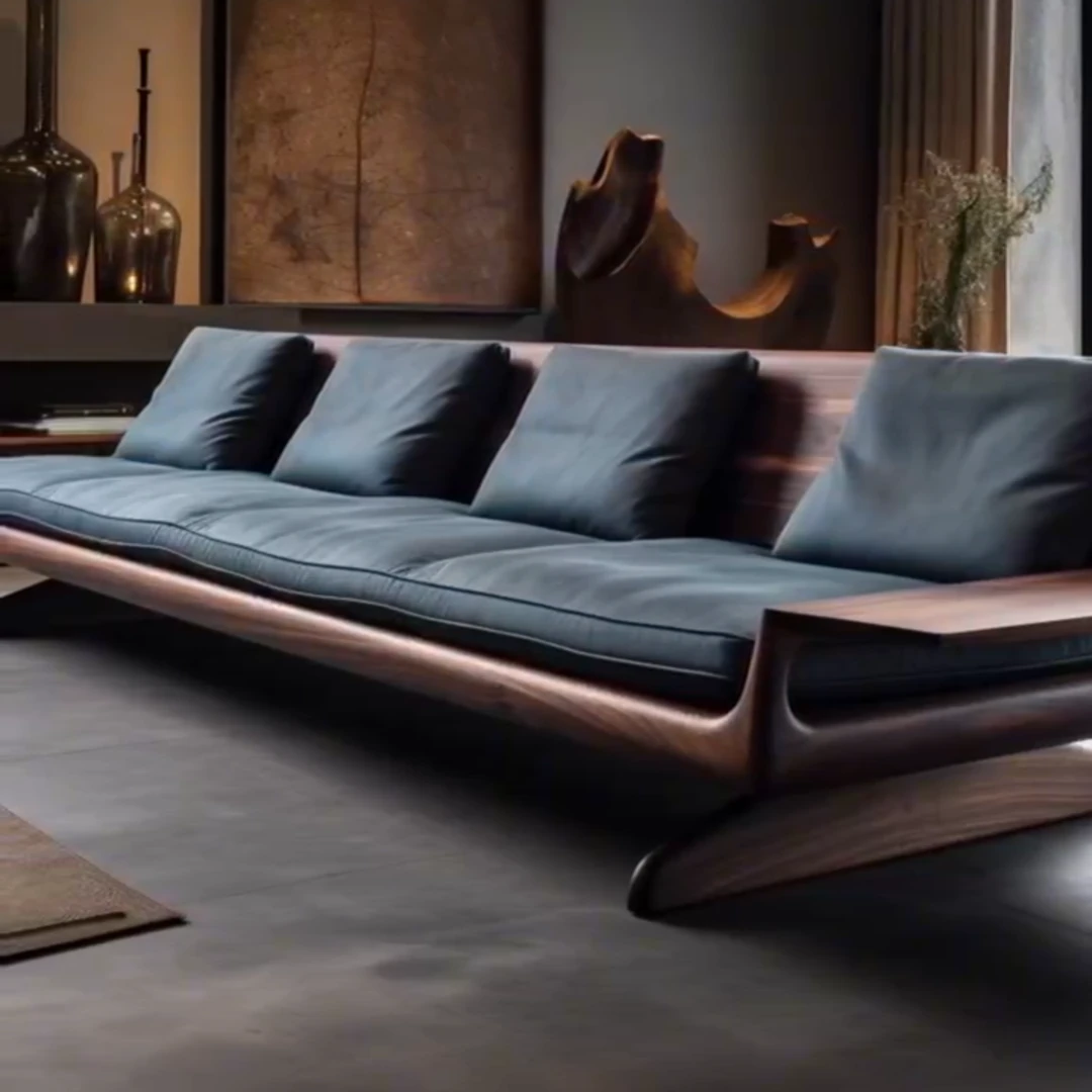 Modern Black Walnut Sofa - Mid-Century Style Furniture for Living Rooms, Hotels, Villas, and Clubhouses - Perfect for Small to Large Spaces in North America