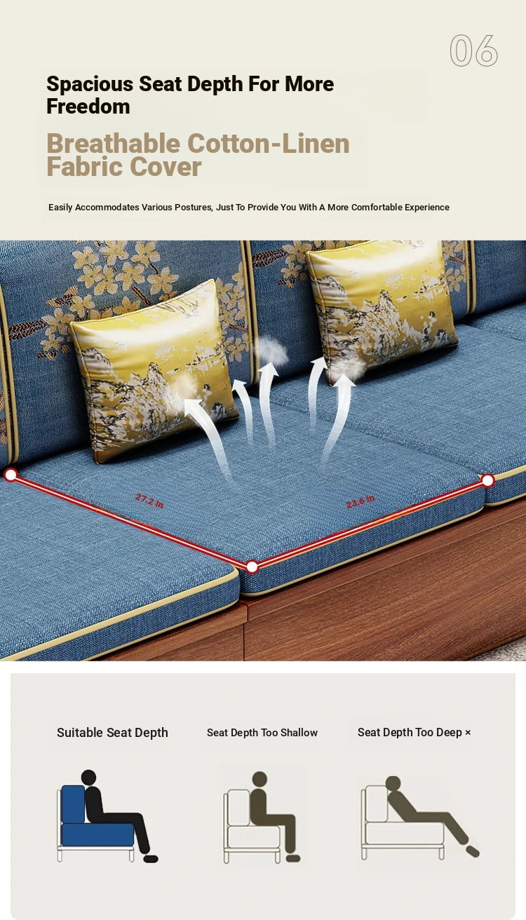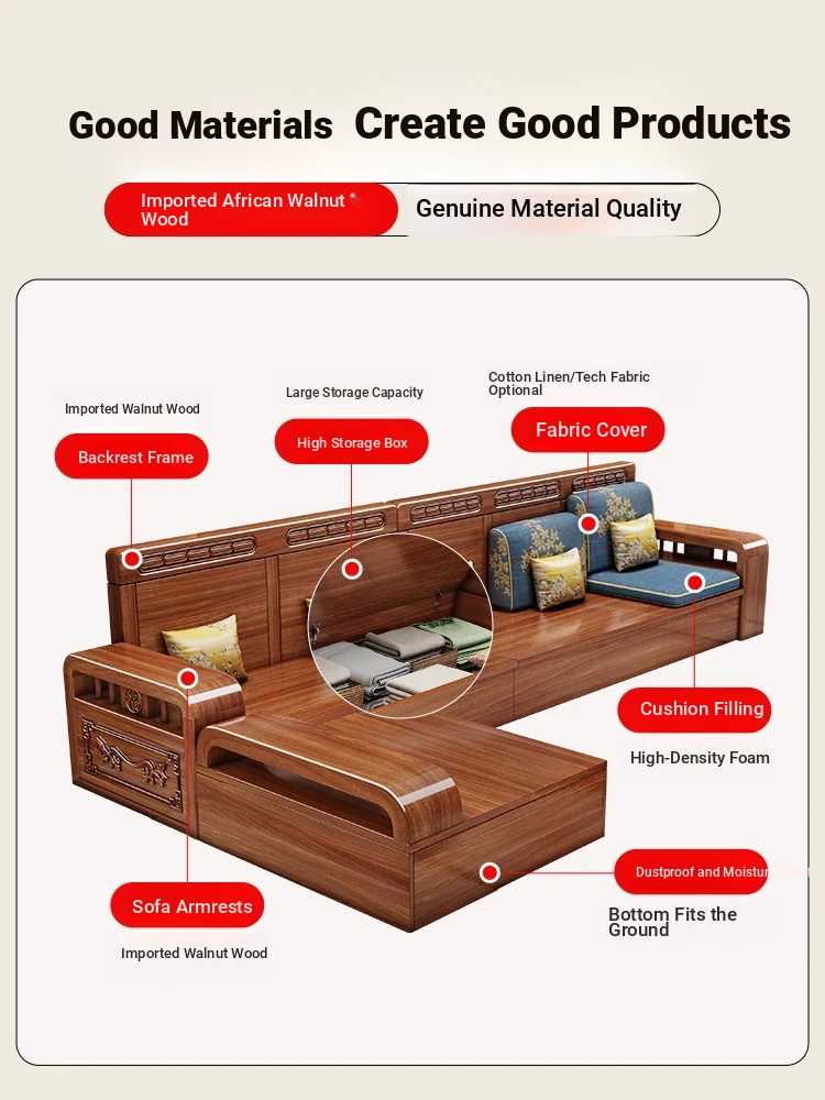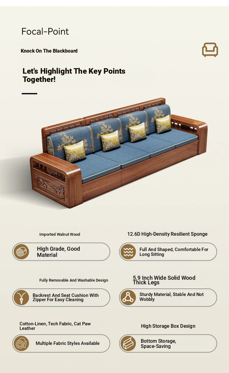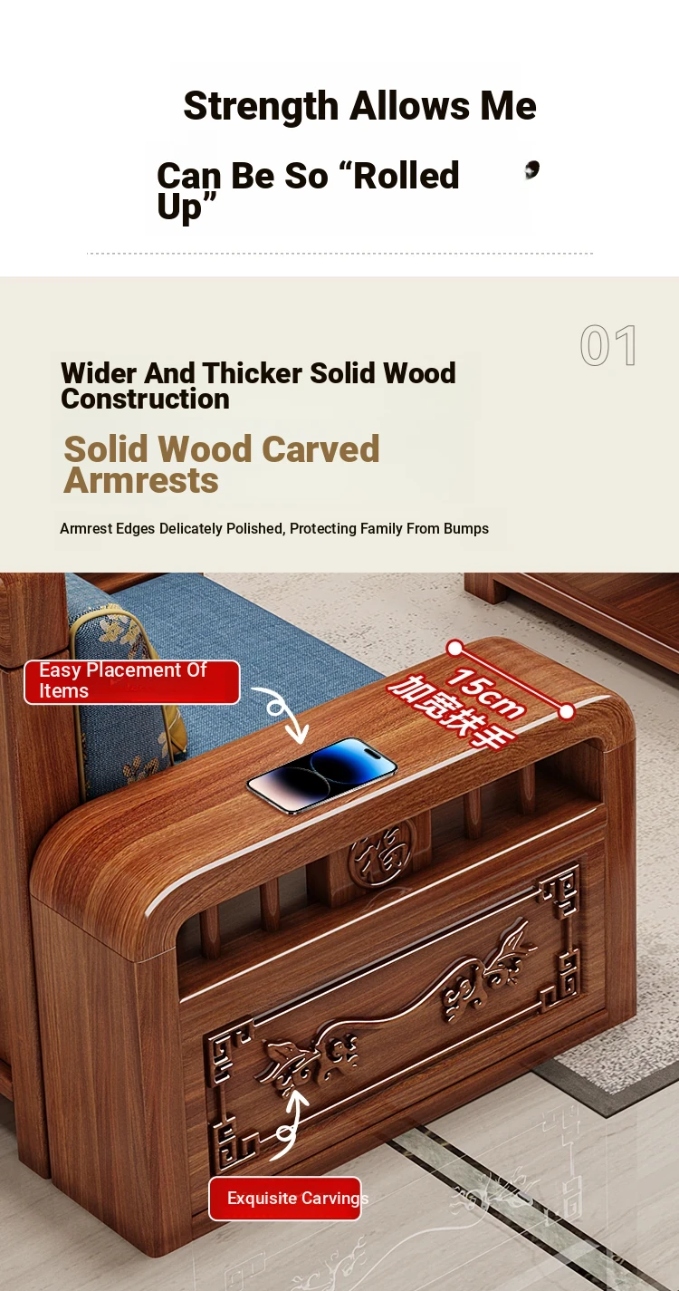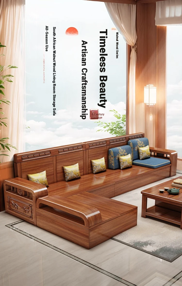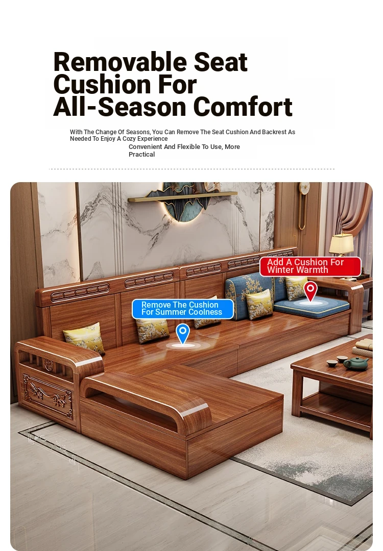 Modern Chinese Solid Wood Sofa for Small Living Rooms - Versatile All-Season Design, Fully Solid Wood Construction, Ideal for Cozy Spaces - Quality Furniture from Foshan