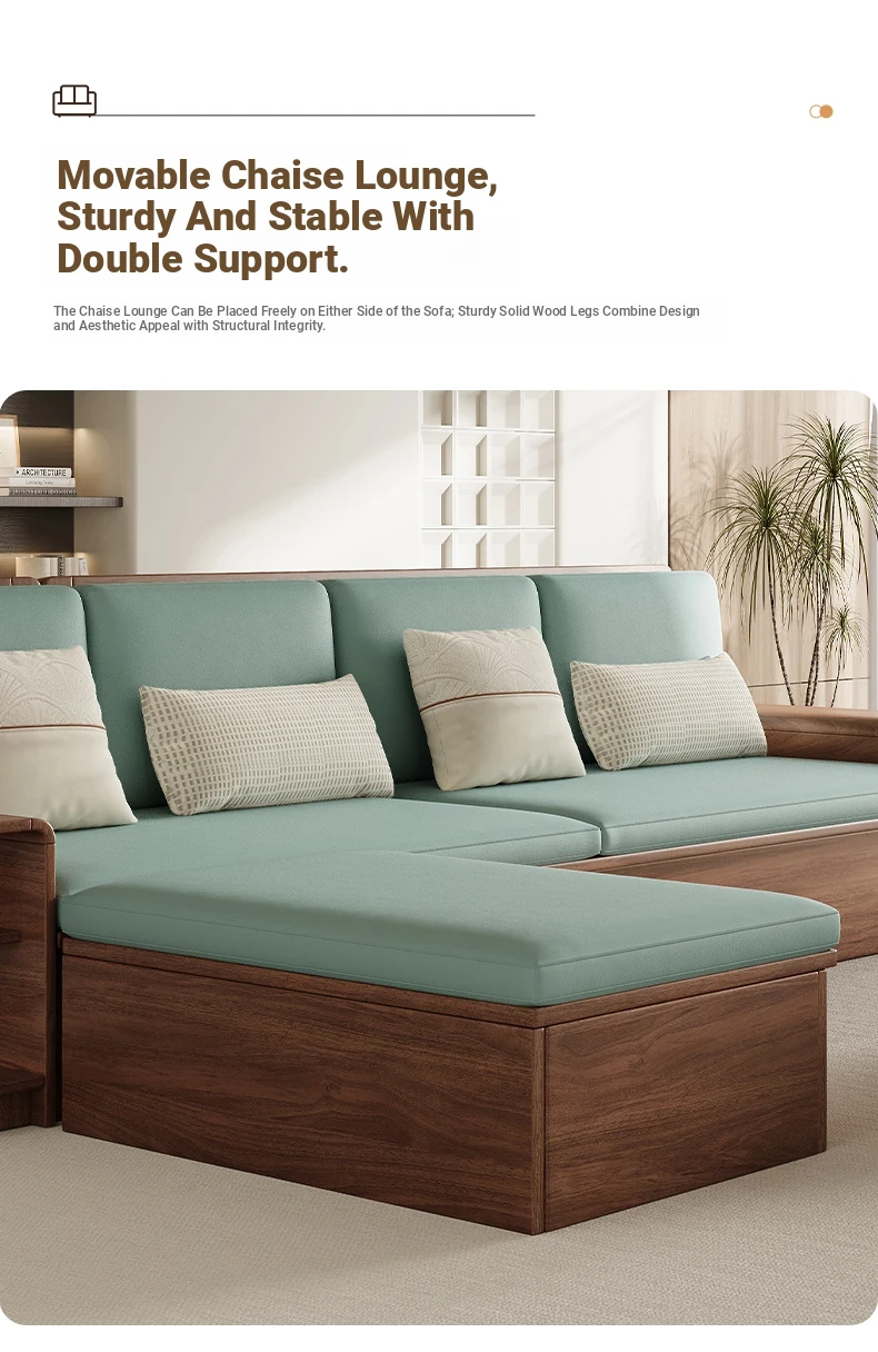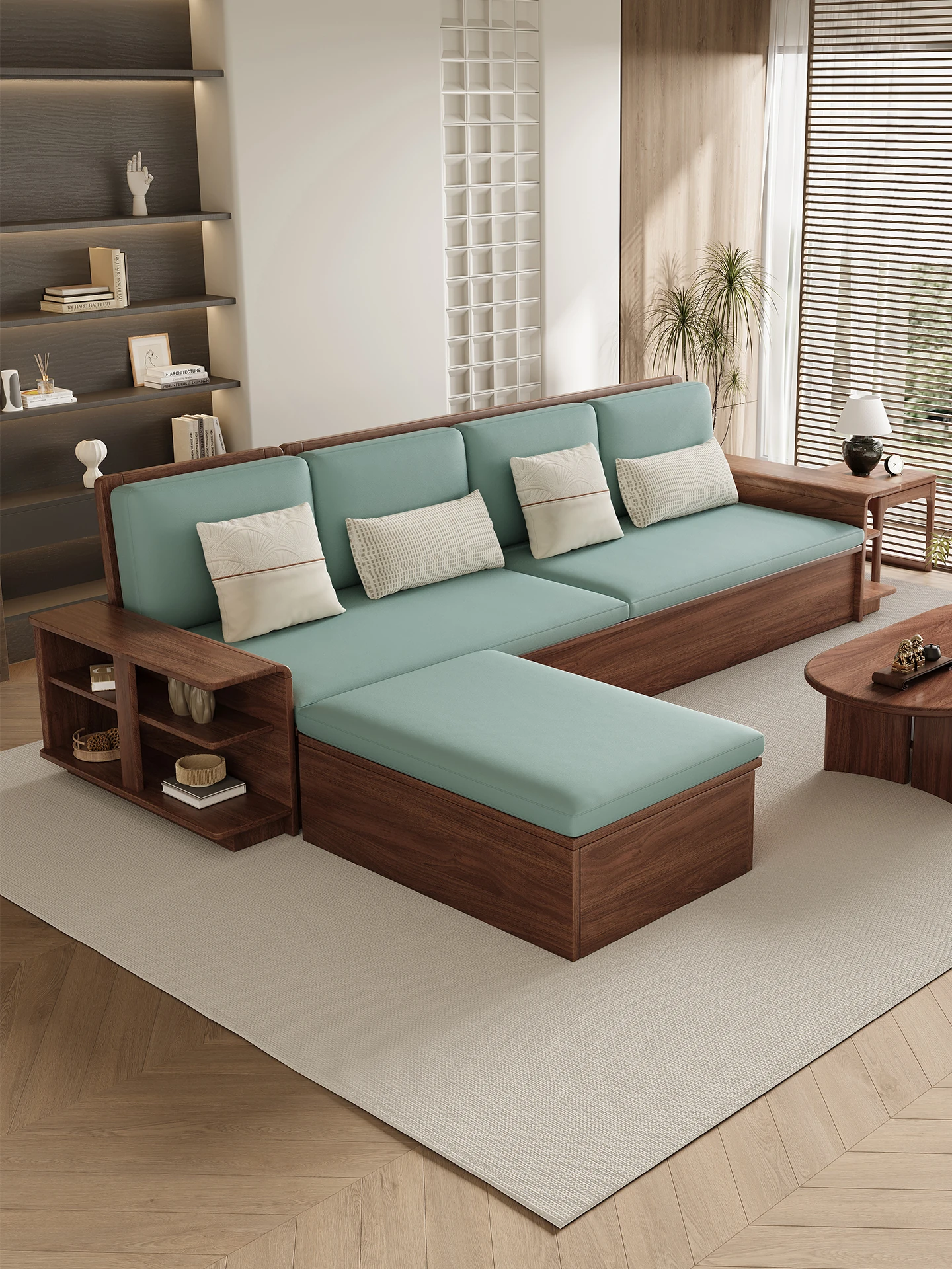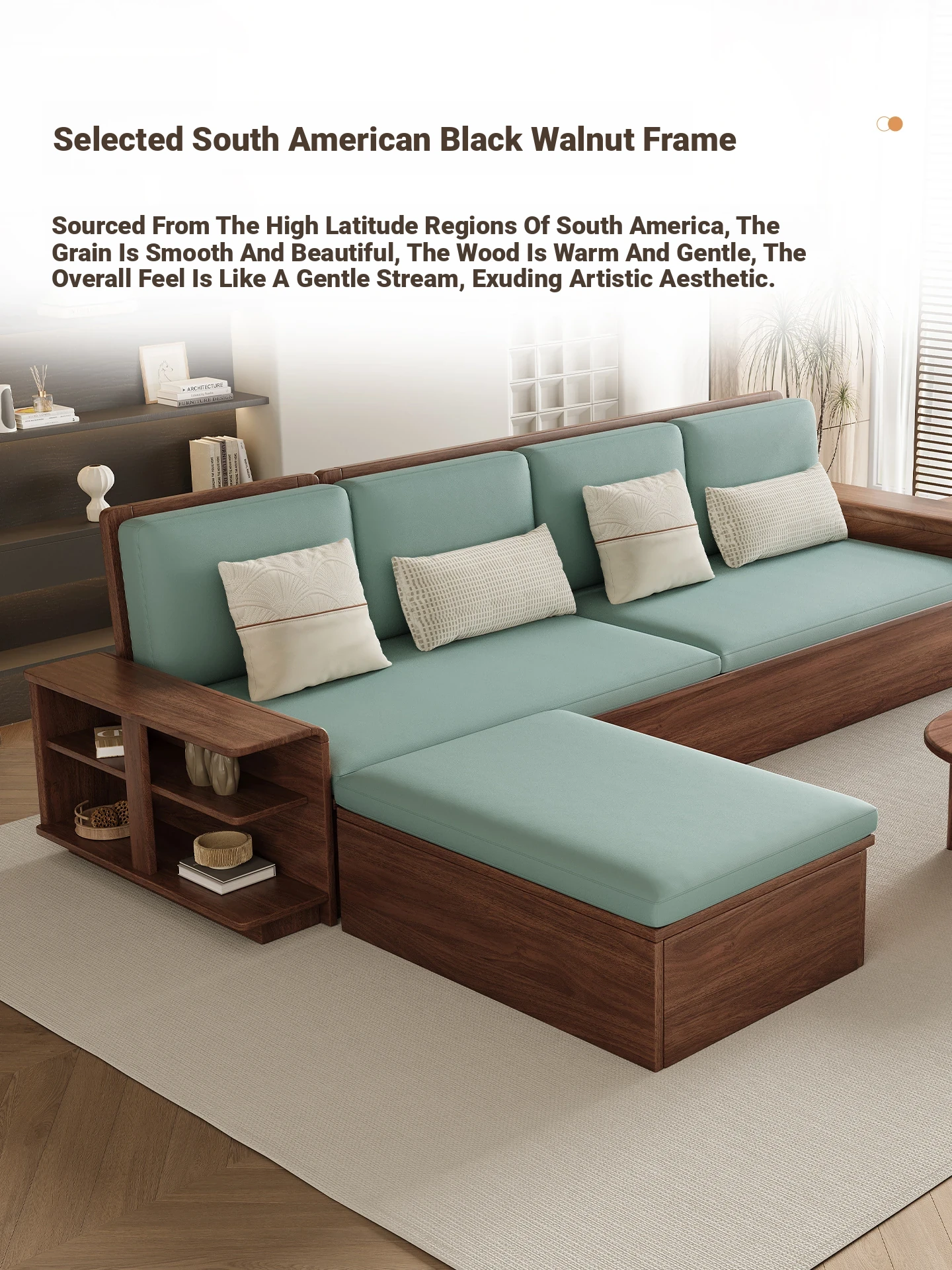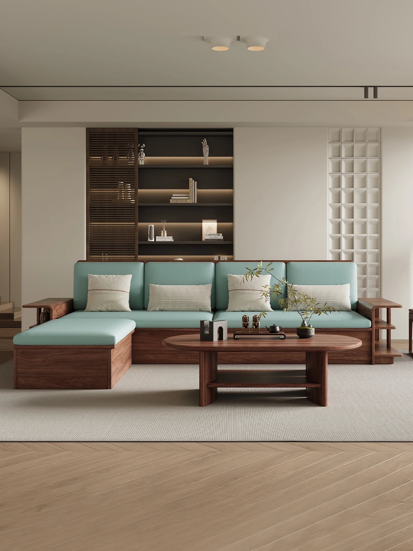 Modern Chinese Style Black Walnut Solid Wood Sofa Set 1+2+3 - Versatile Corner Chaise Lounge with Storage for All Seasons, Perfect for Your Living Room!