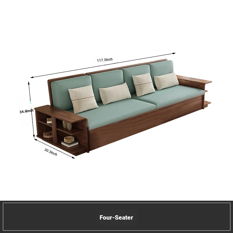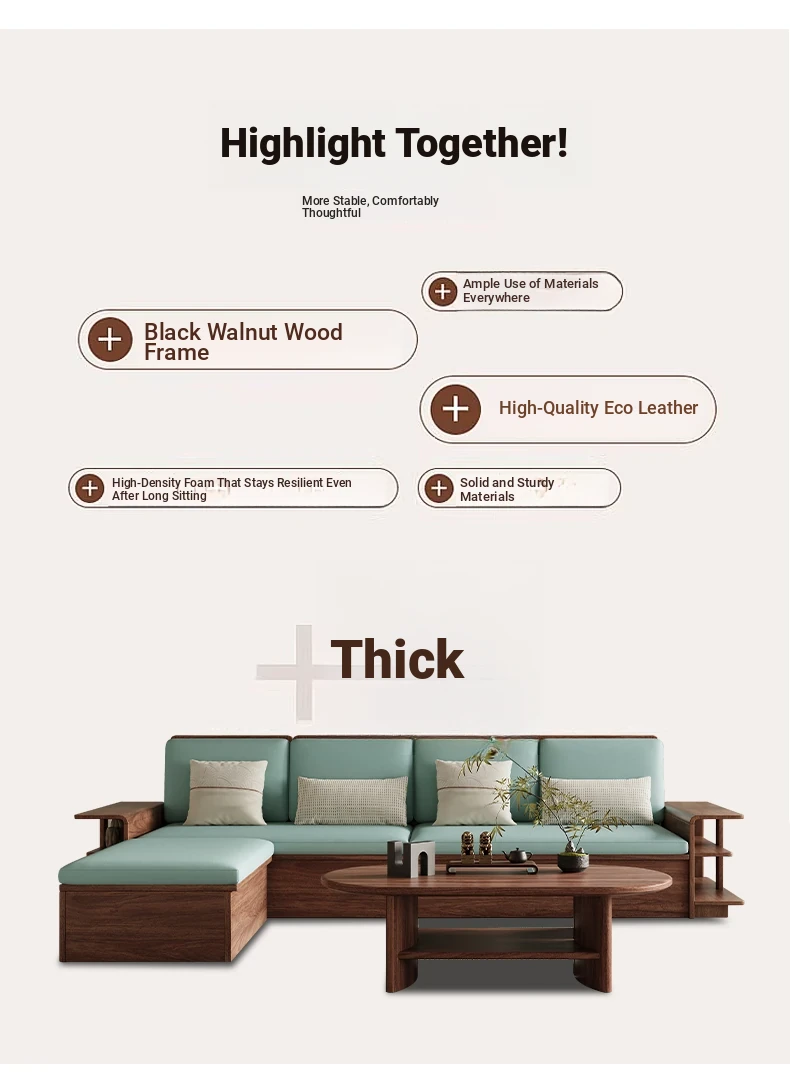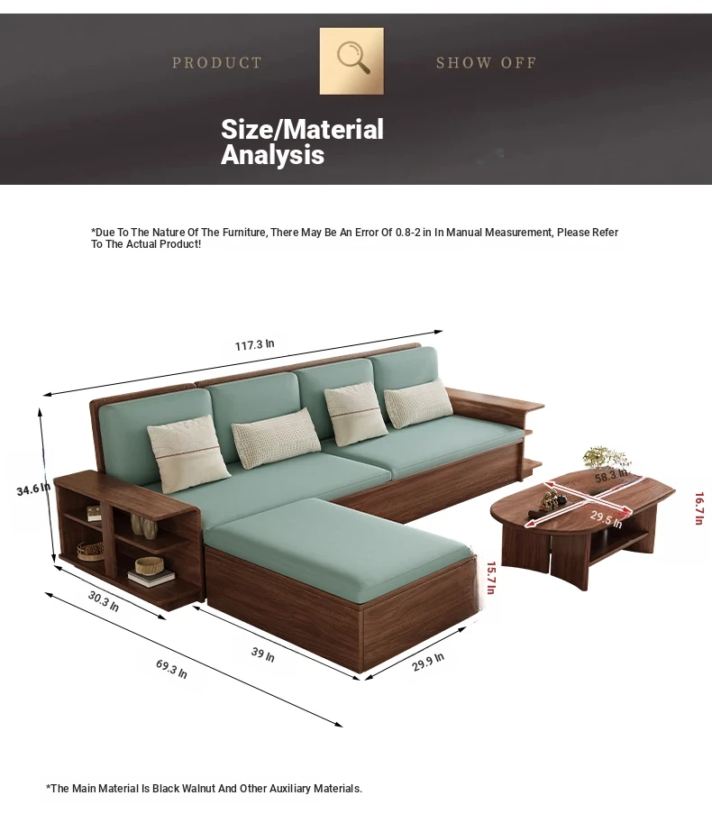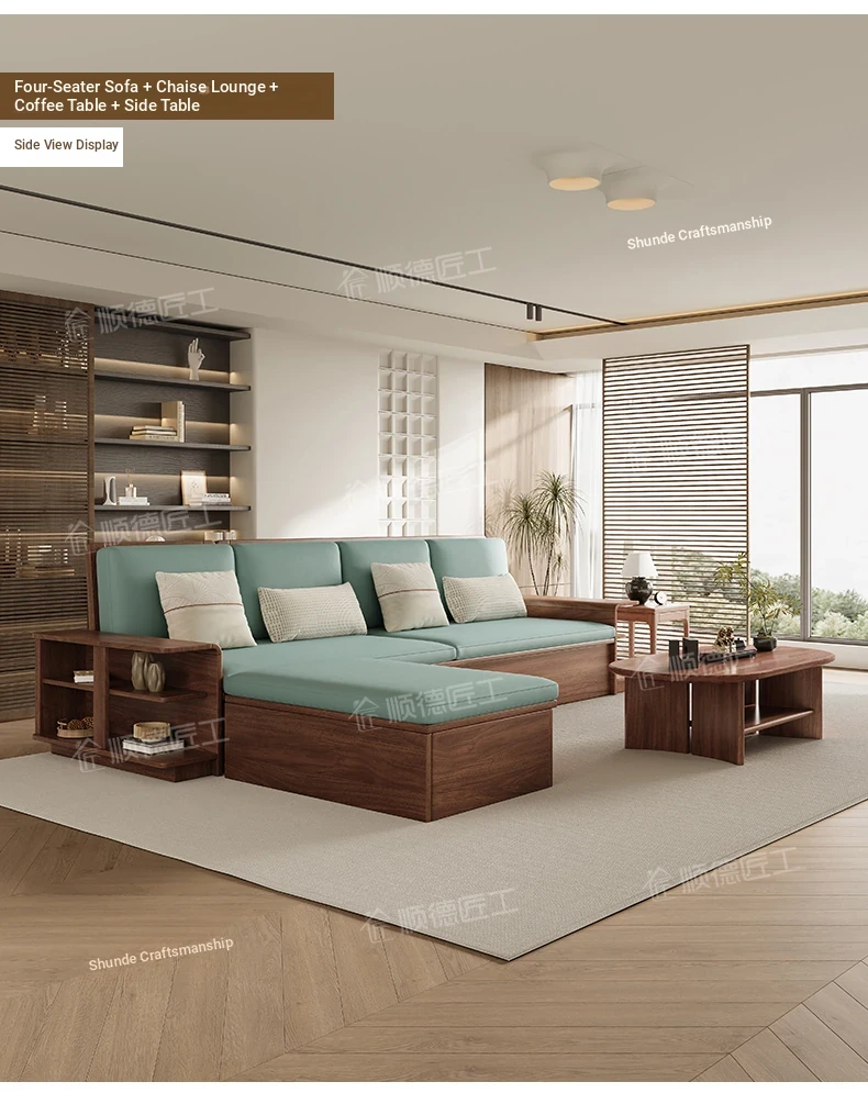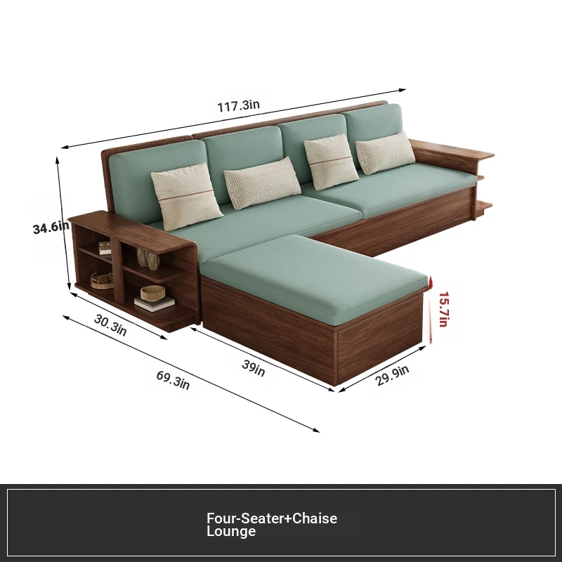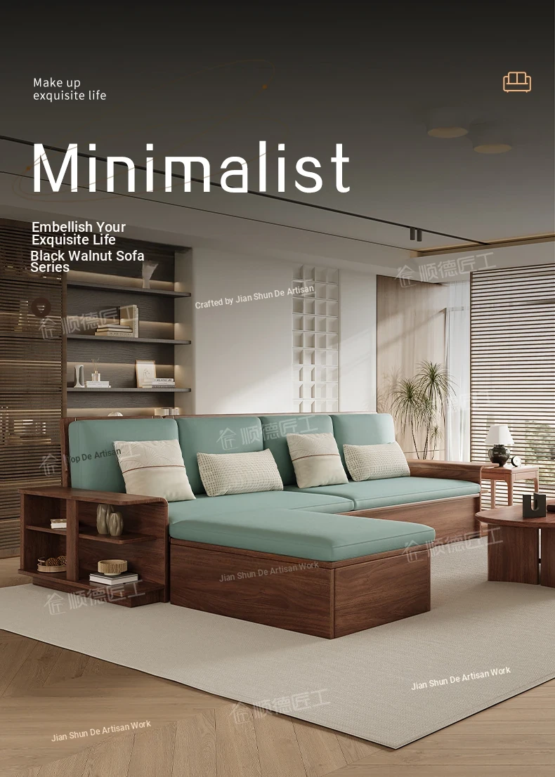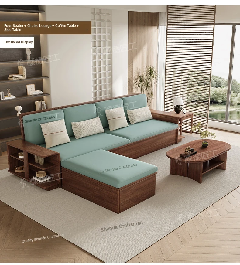 Modern Chinese Style Black Walnut Solid Wood Sofa Set 1+2+3 - Versatile Corner Chaise Lounge with Storage for All Seasons, Perfect for Your Living Room!