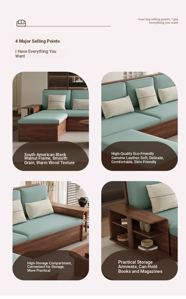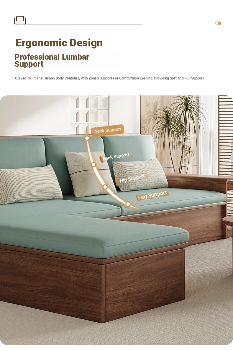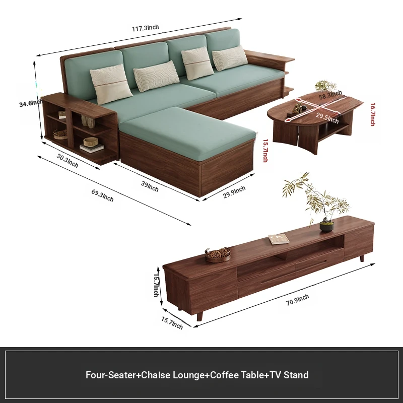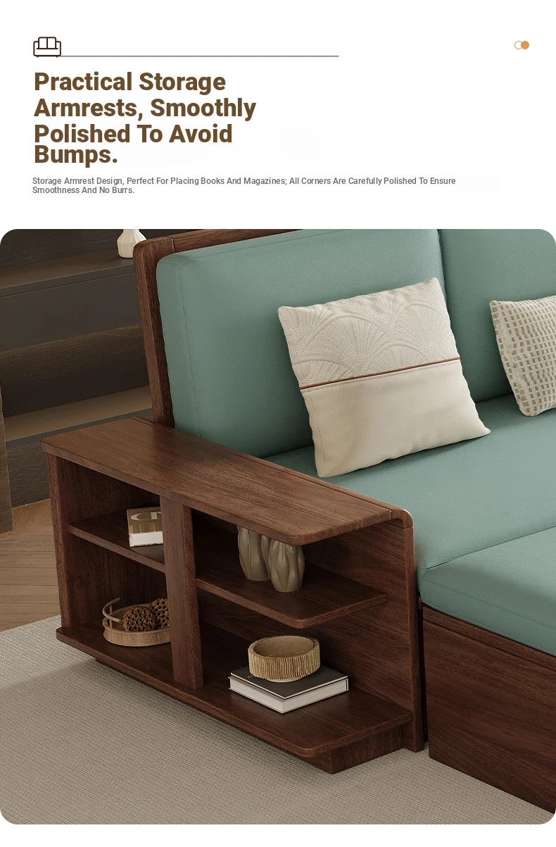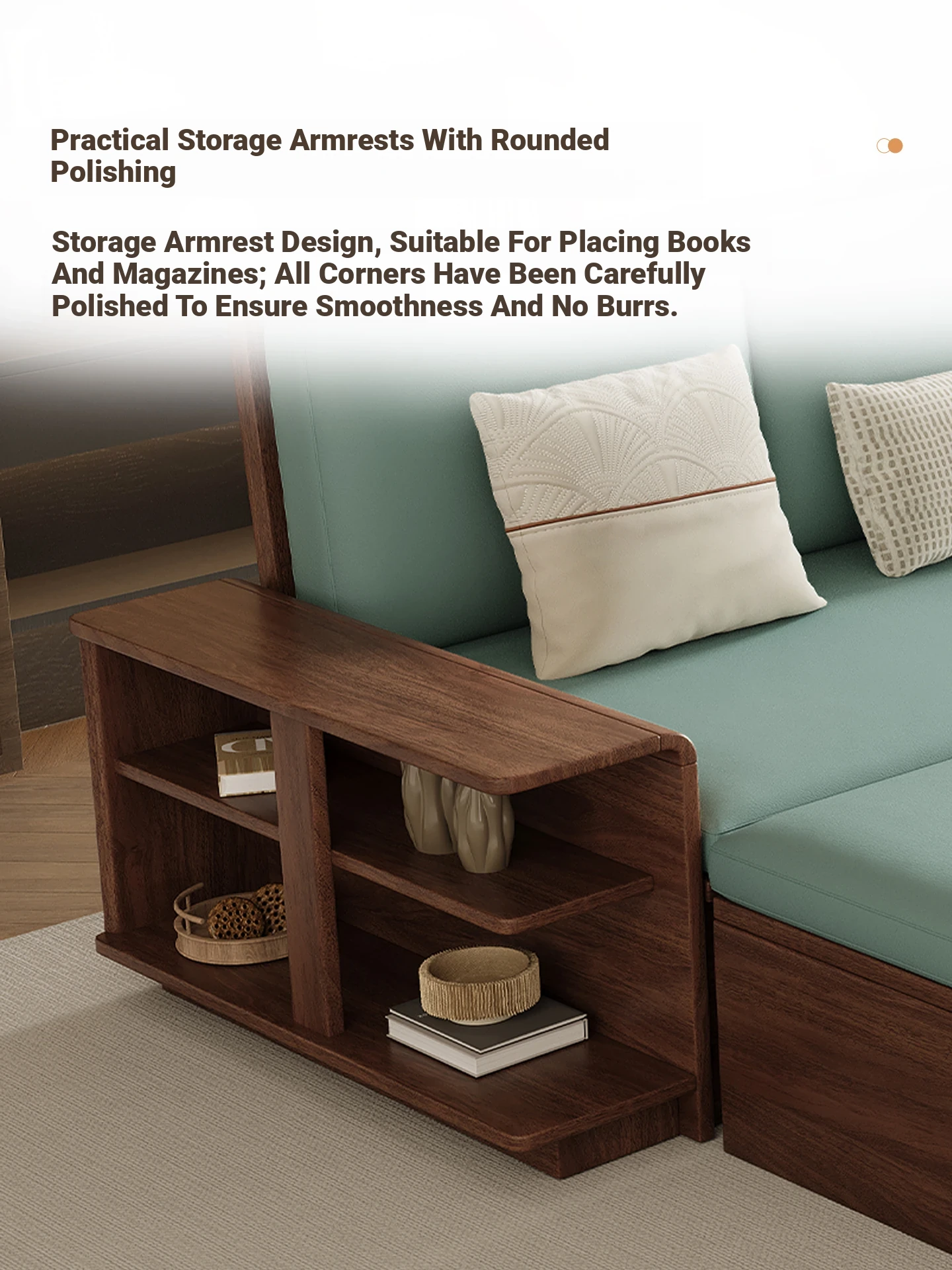 Modern Chinese Style Black Walnut Solid Wood Sofa Set 1+2+3 - Versatile Corner Chaise Lounge with Storage for All Seasons, Perfect for Your Living Room!