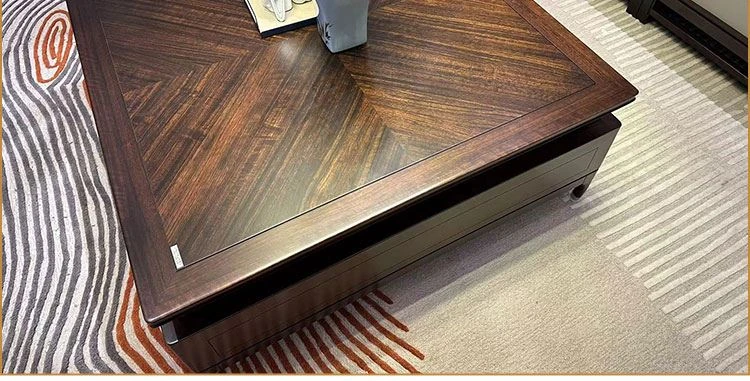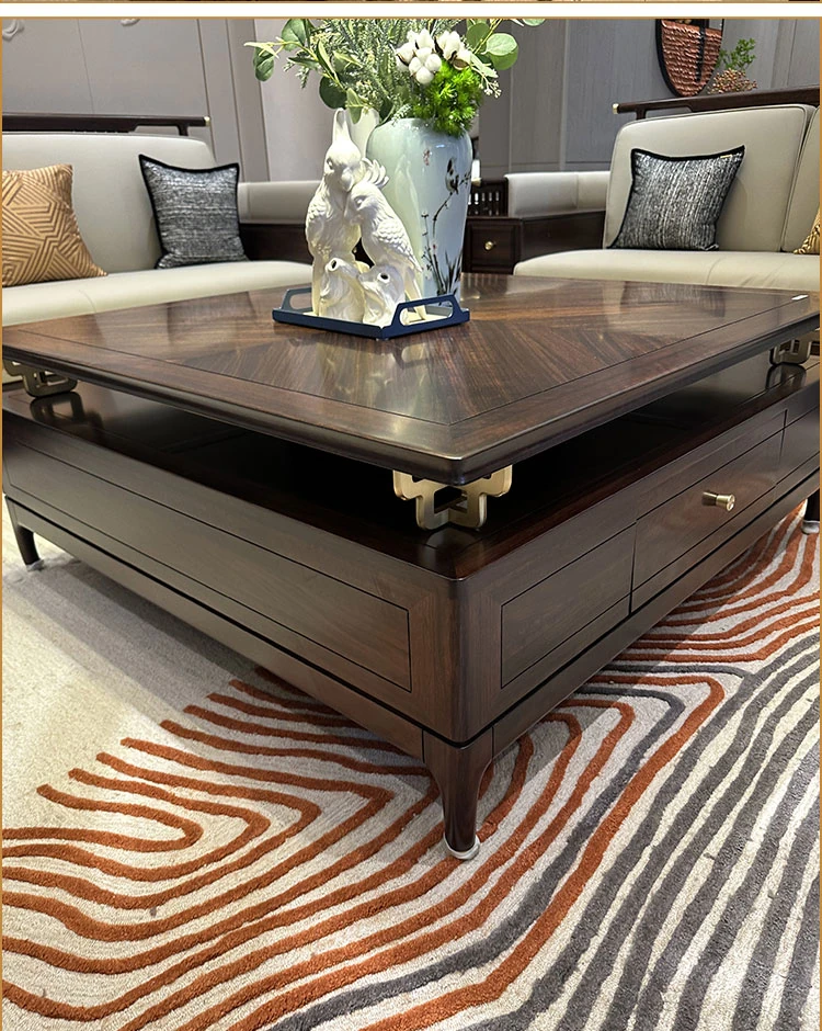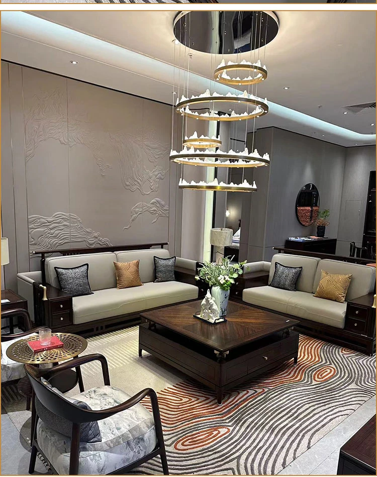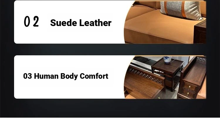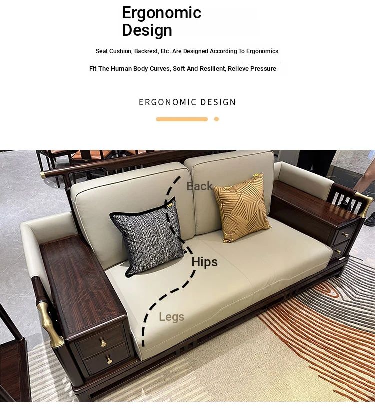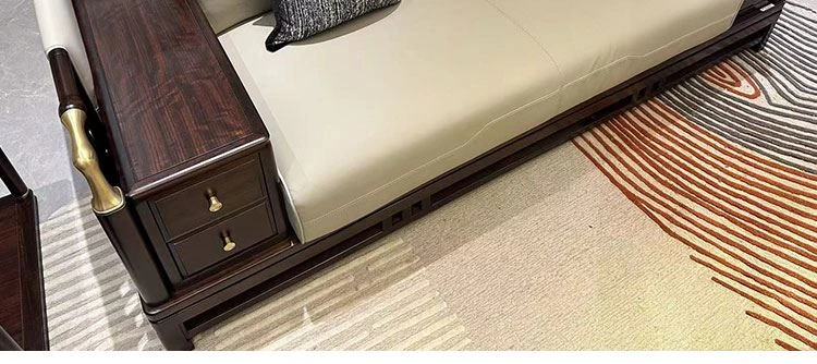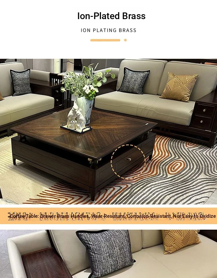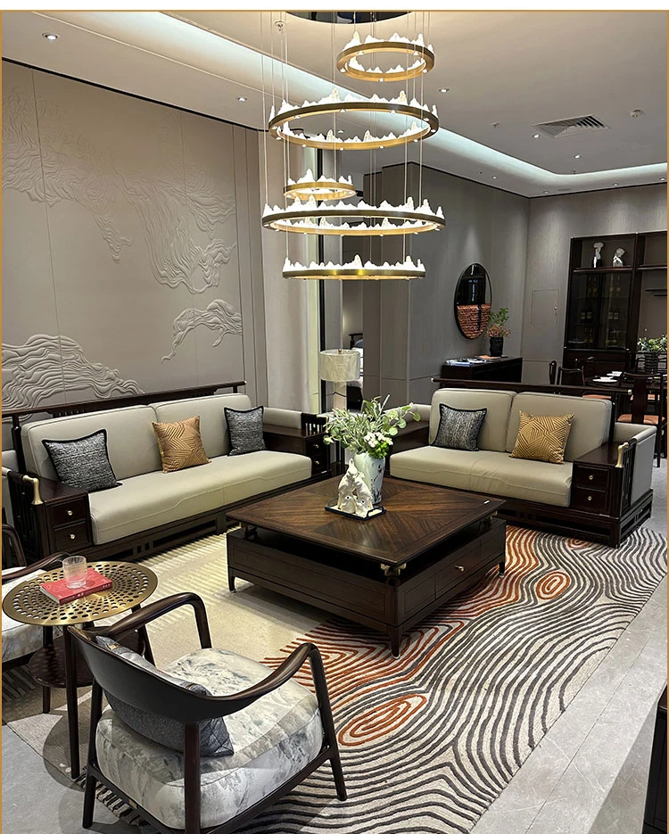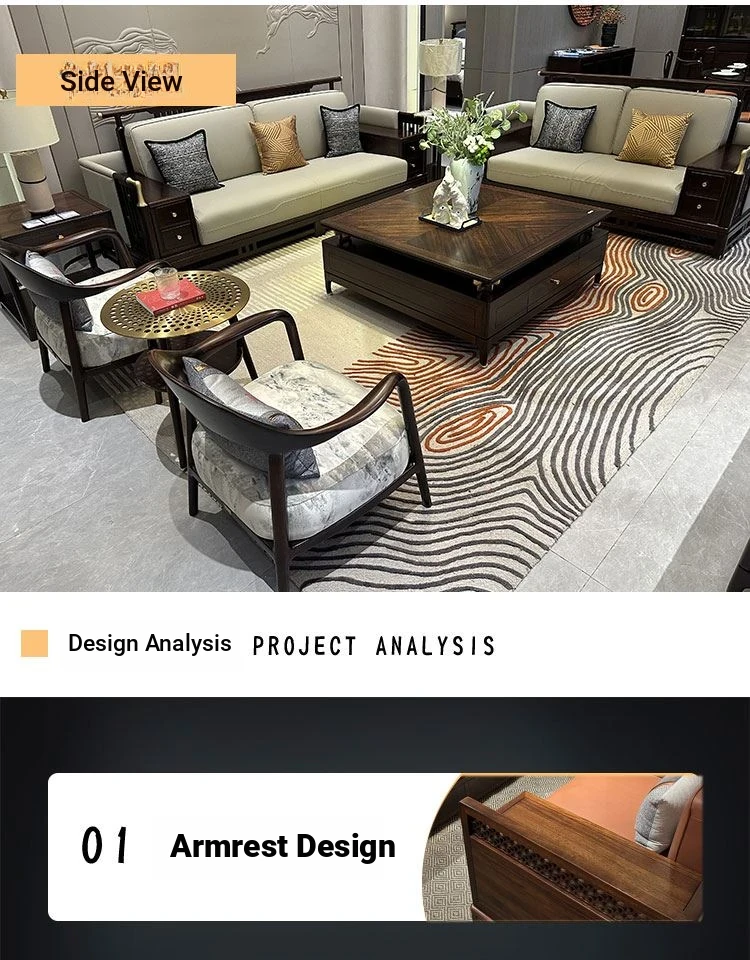 Modern Chinese Style Genuine Leather & Black Walnut Full Solid Wood Sofa Set - Elegant Minimalist Furniture for Large Villas and Clubhouses, Perfect for Living Rooms