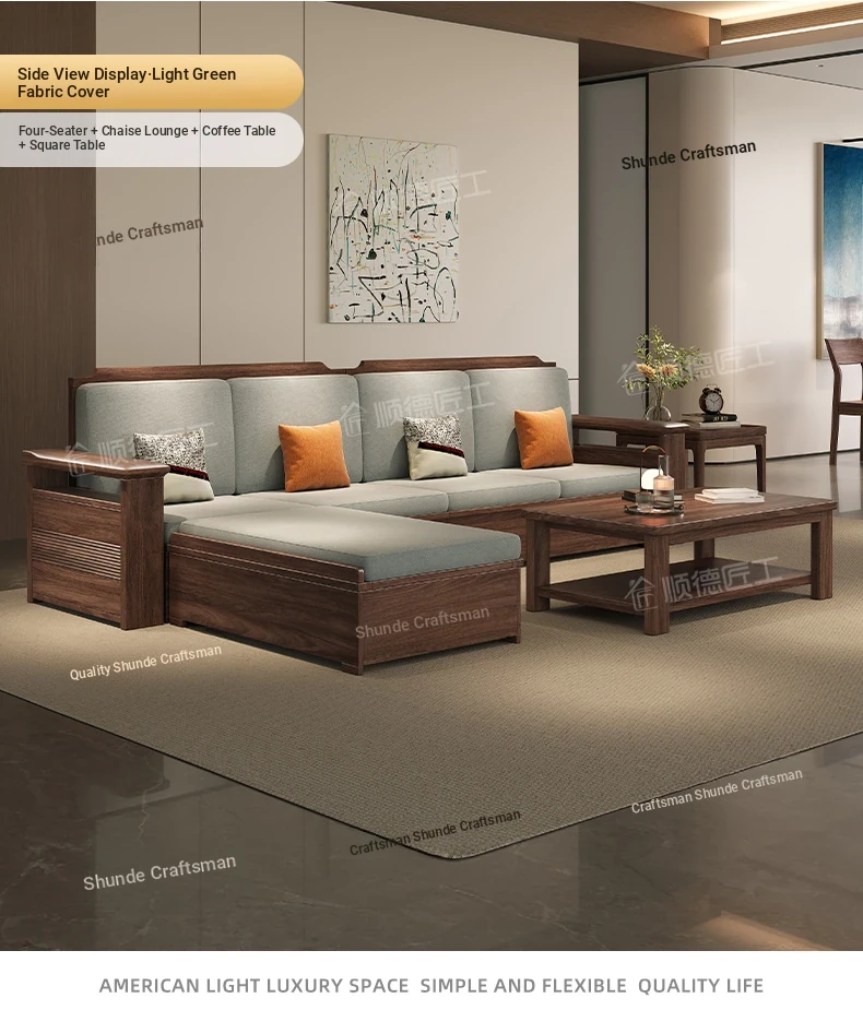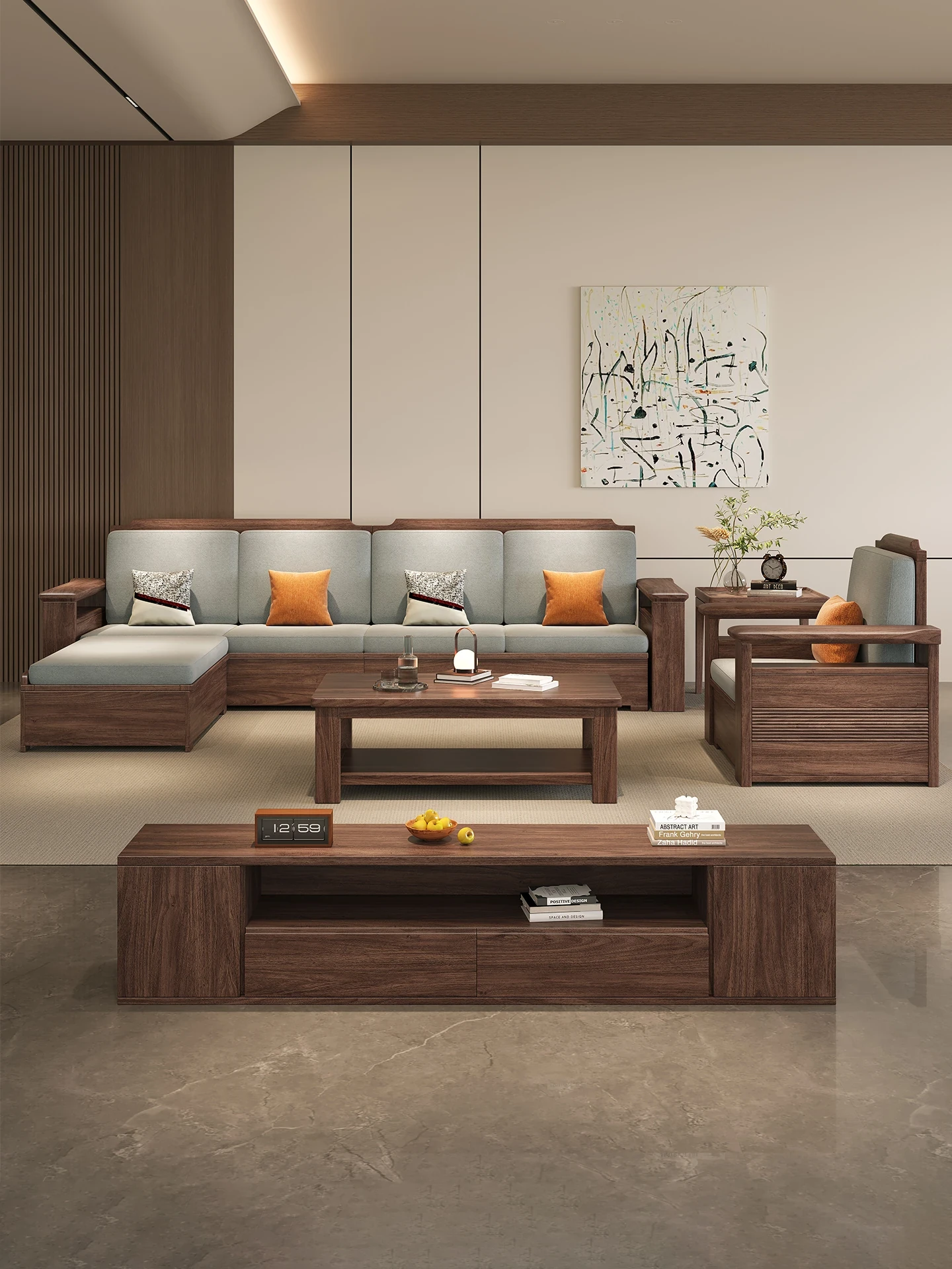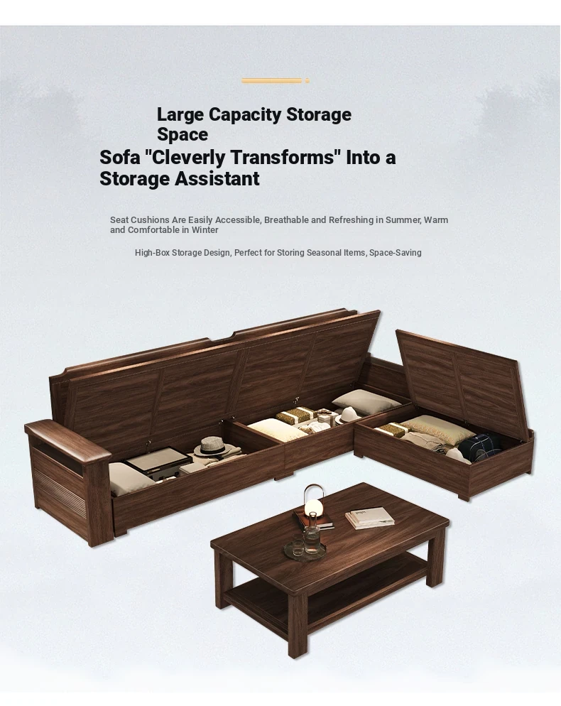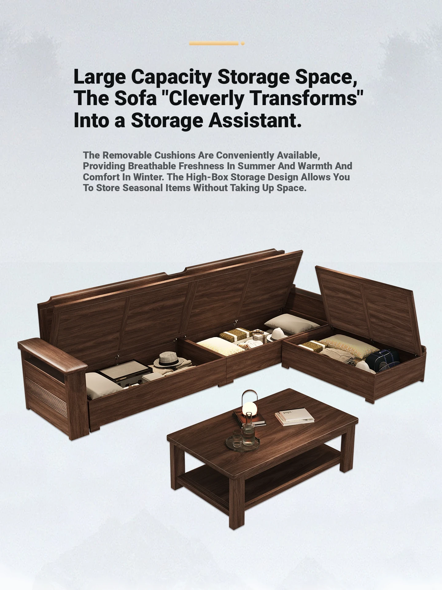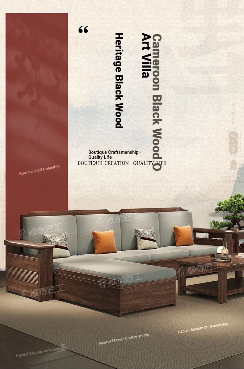 Modern Chinese Style Solid Blackwood Sofa Set with Corner Chaise Lounge - Versatile Winter/Summer Use, Perfect for Living Rooms of All Sizes with Storage Solutions