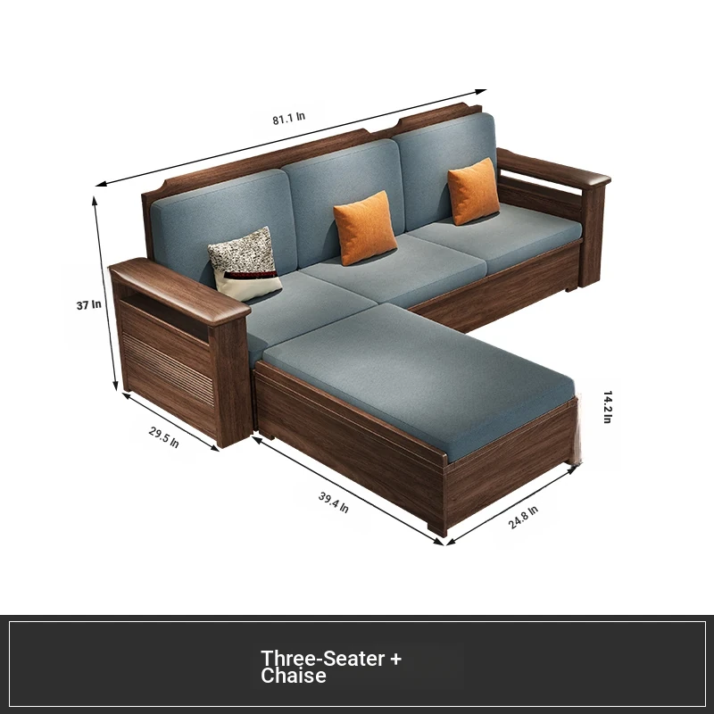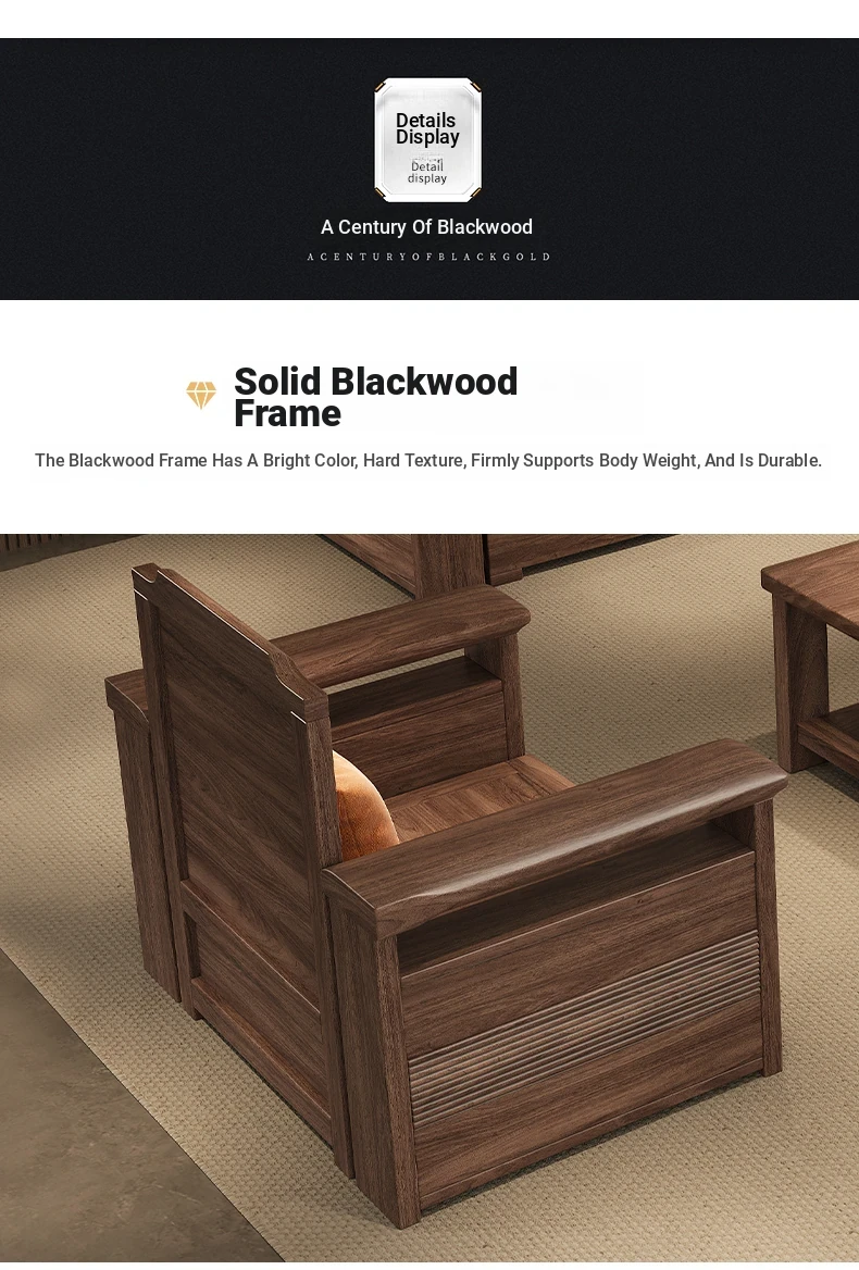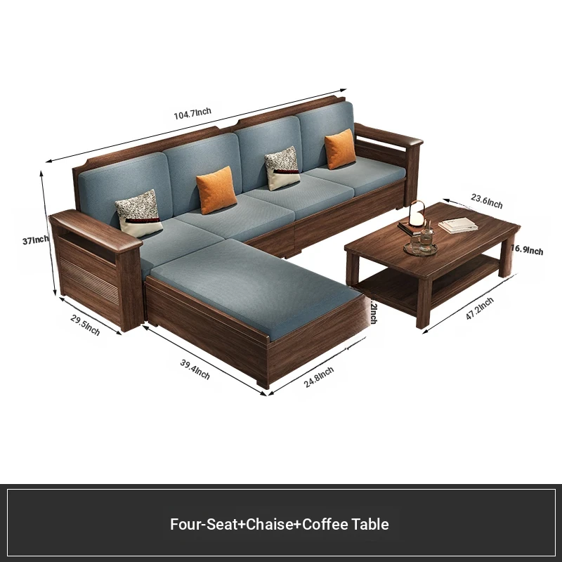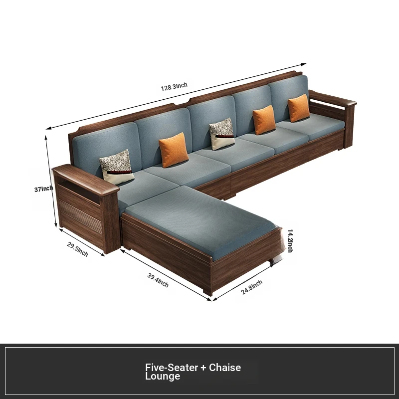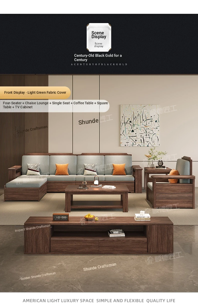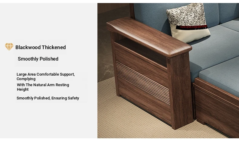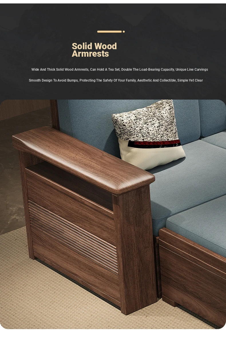 Modern Chinese Style Solid Blackwood Sofa Set with Corner Chaise Lounge - Versatile Winter/Summer Use, Perfect for Living Rooms of All Sizes with Storage Solutions