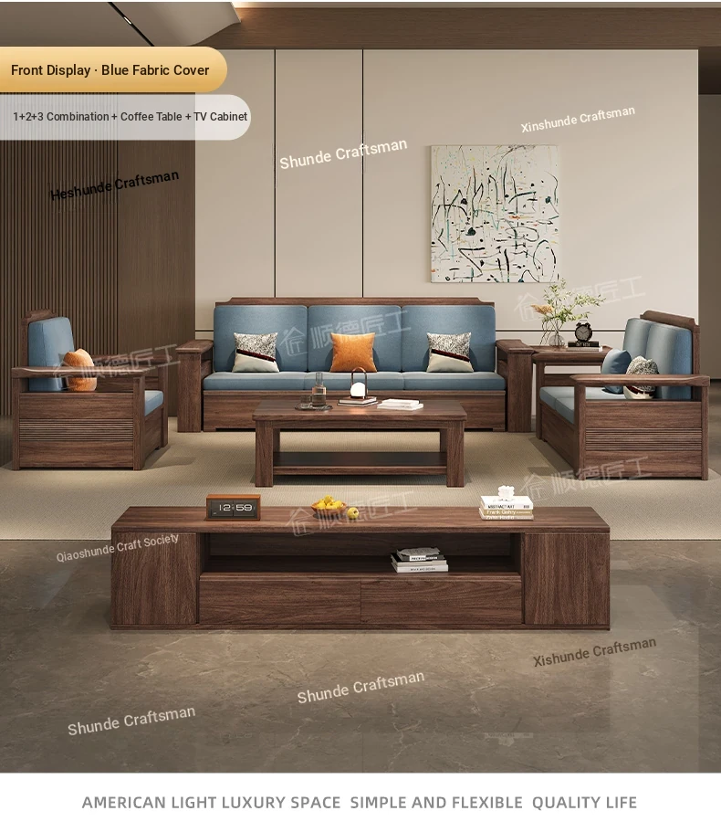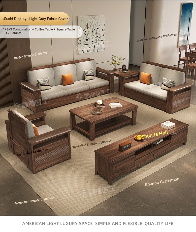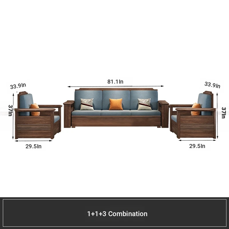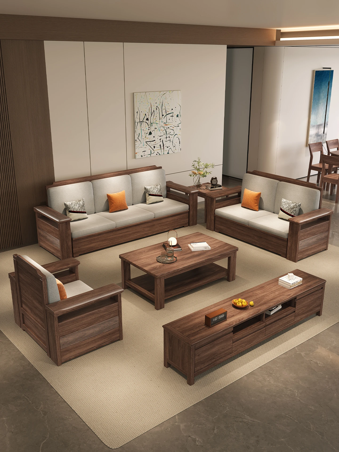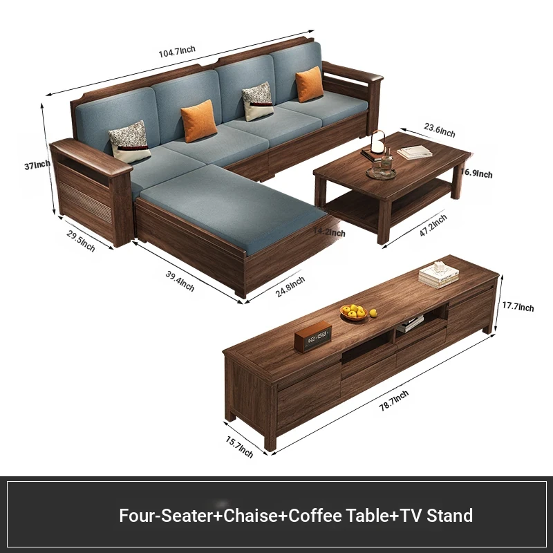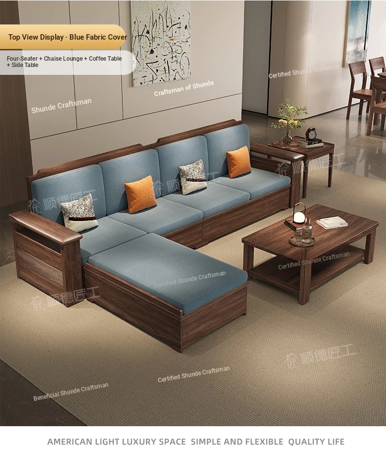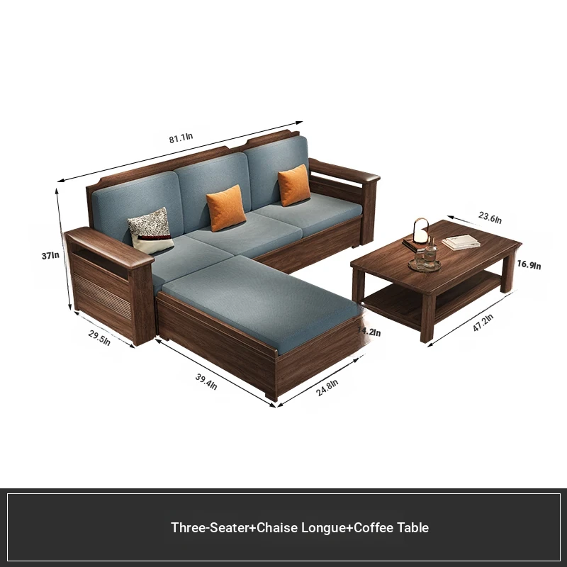 Modern Chinese Style Solid Blackwood Sofa Set with Corner Chaise Lounge - Versatile Winter/Summer Use, Perfect for Living Rooms of All Sizes with Storage Solutions
