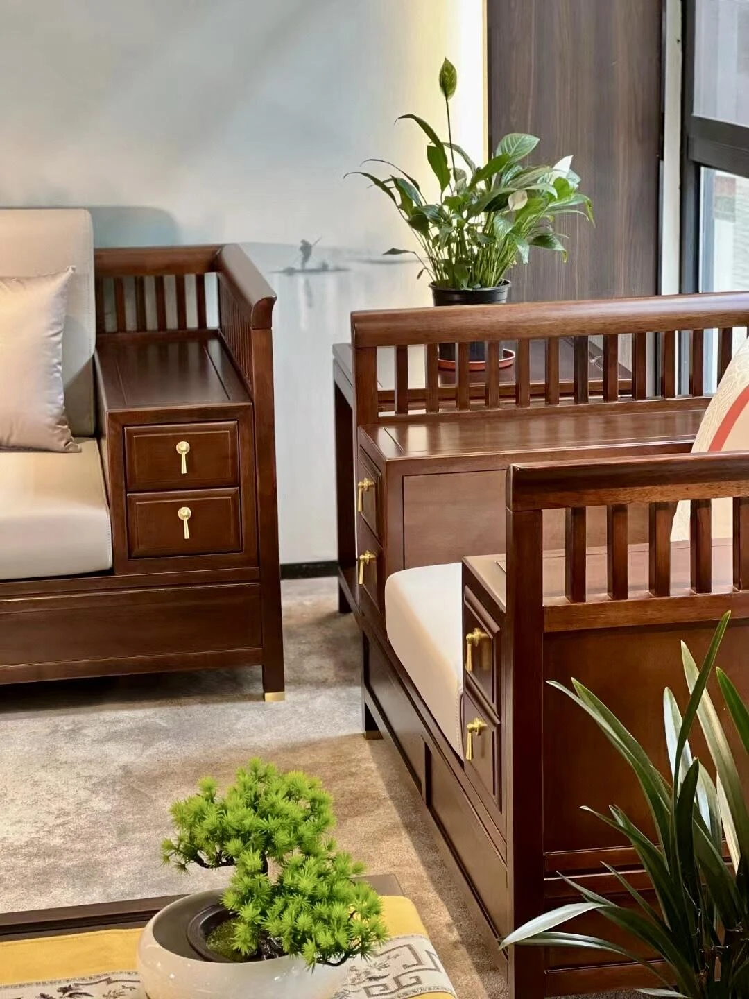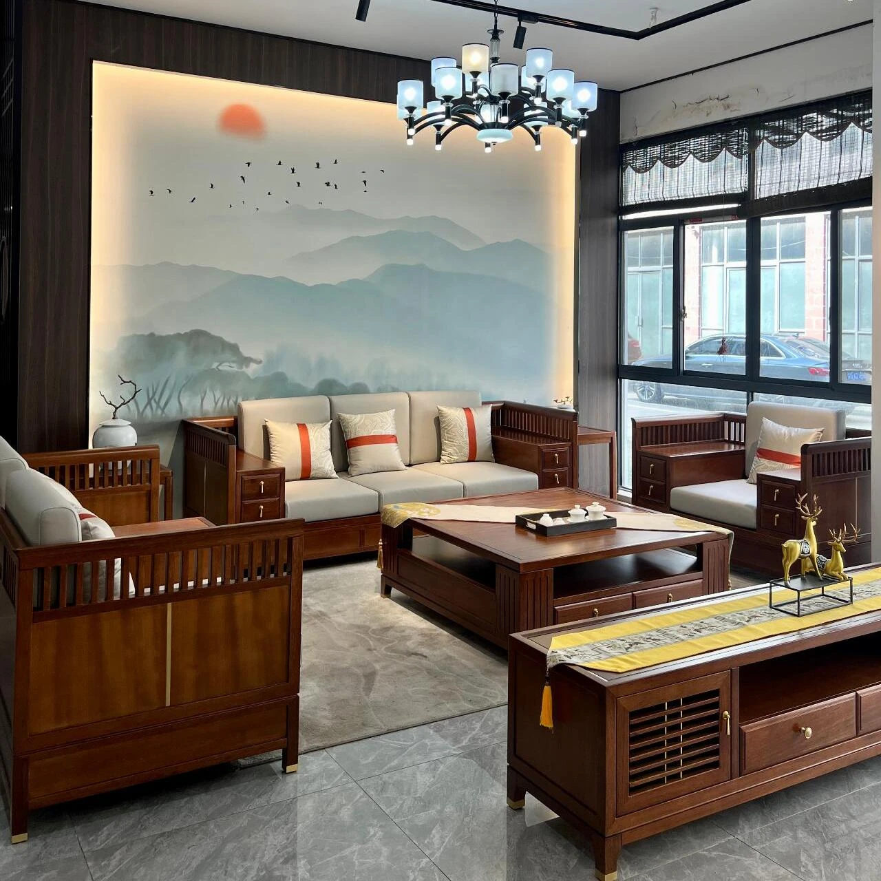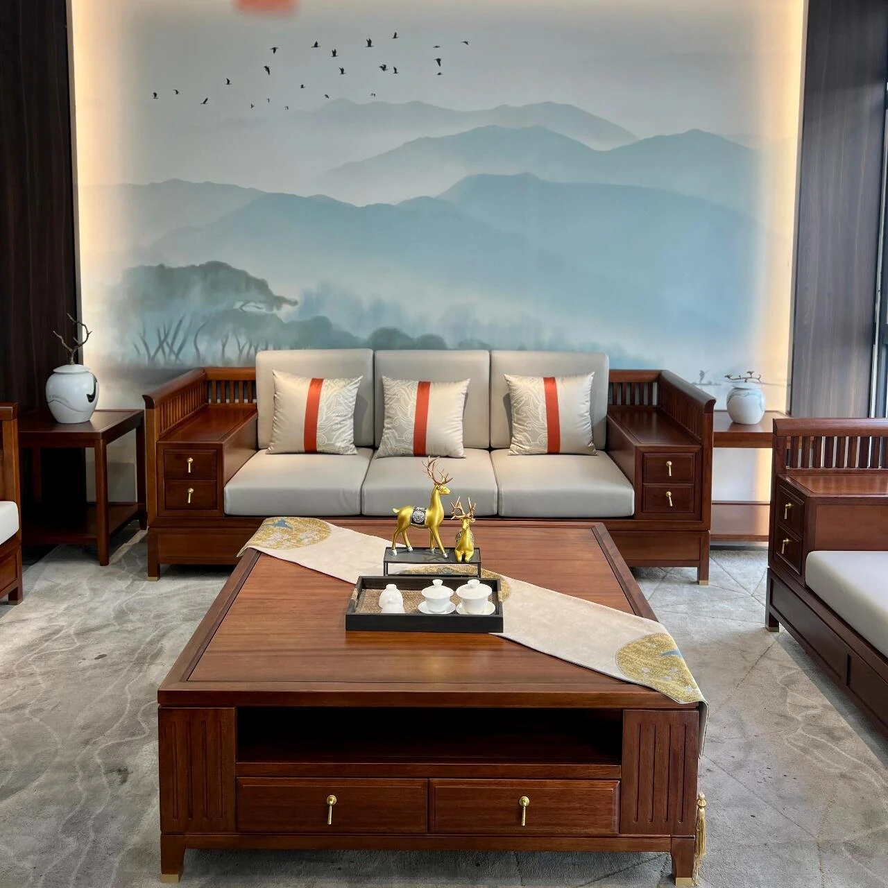 Modern Chinese Style Solid Wood Sofa Set - High-End Villa Living Room Furniture for Spacious Homes, Embrace Zen Aesthetics with Elegant Chinese Design