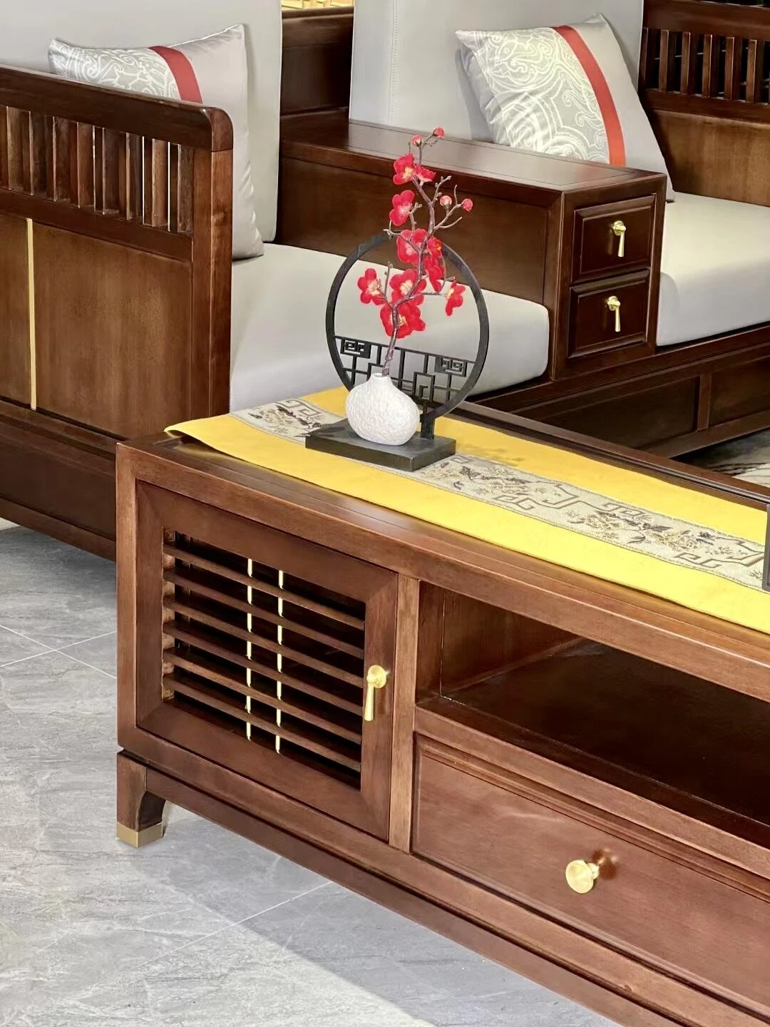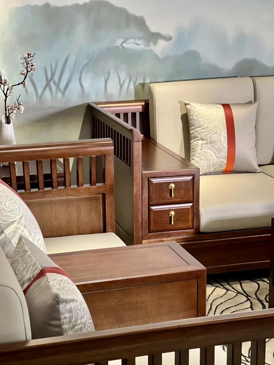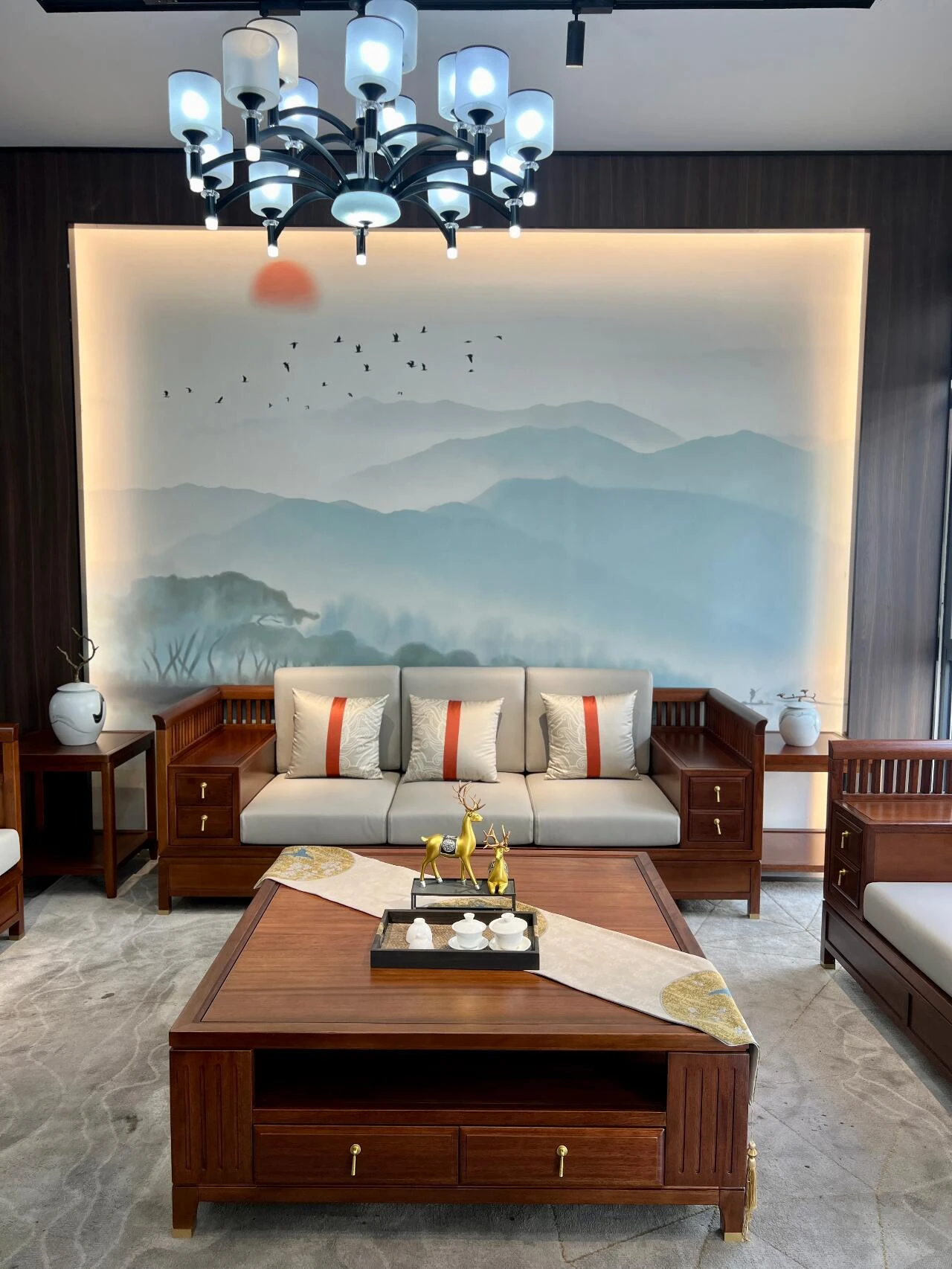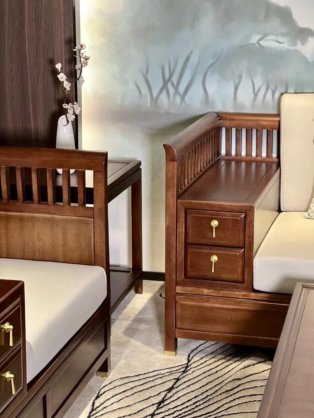 Modern Chinese Style Solid Wood Sofa Set - High-End Villa Living Room Furniture for Spacious Homes, Embrace Zen Aesthetics with Elegant Chinese Design
