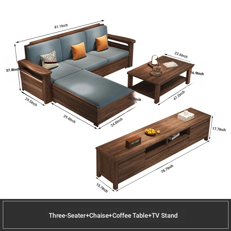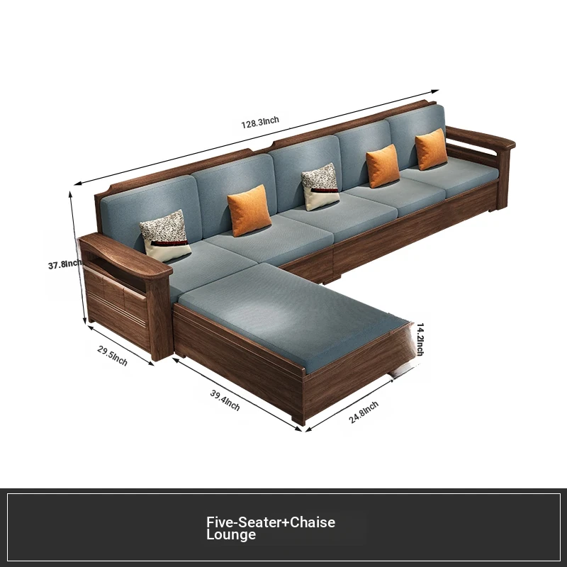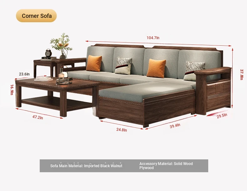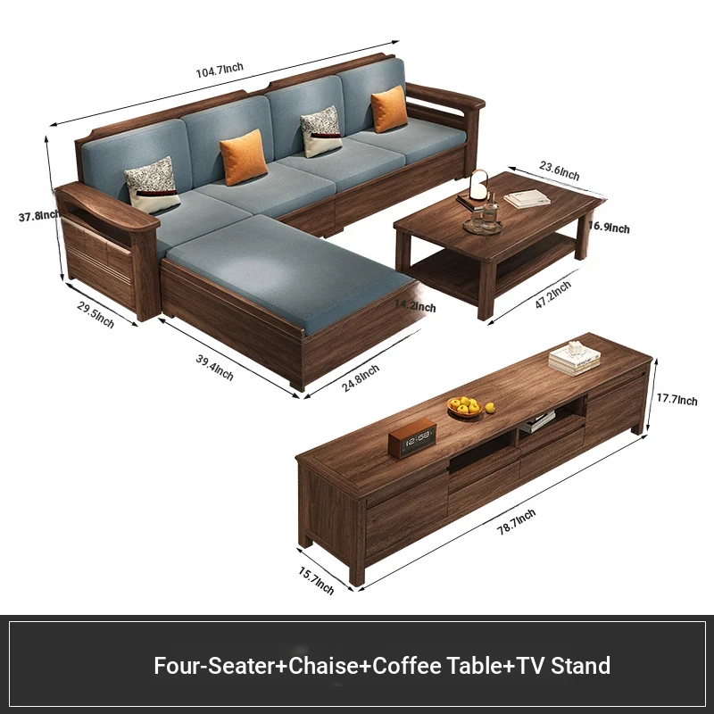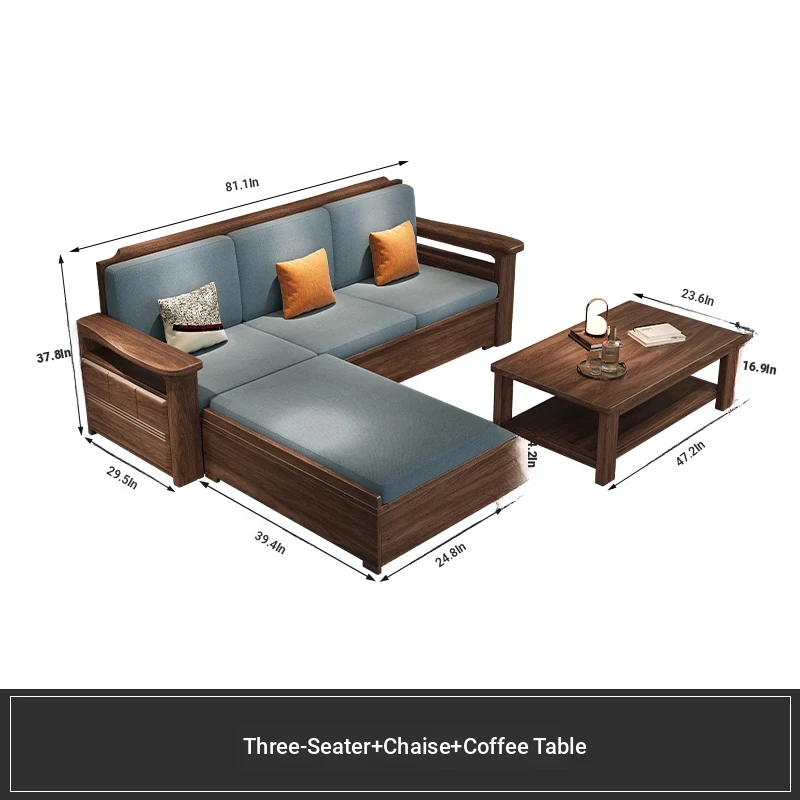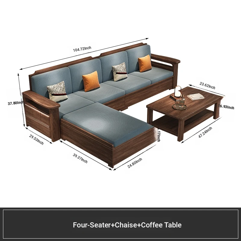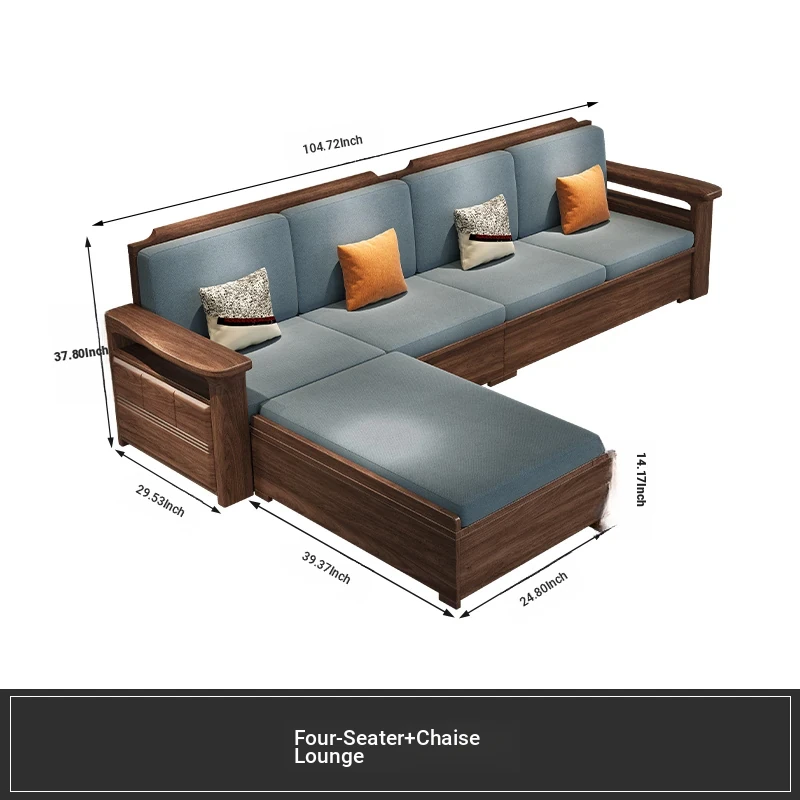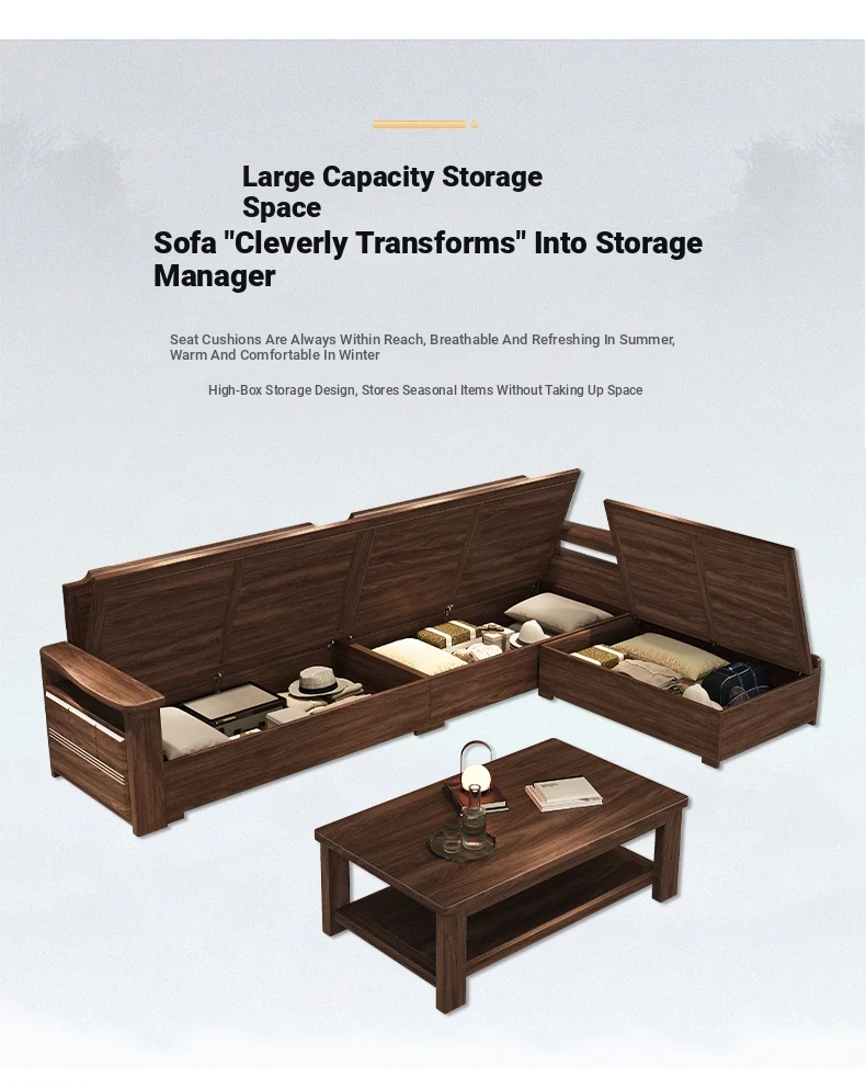 Modern Chinese Style Solid Wood Ulin Sofa Set with Corner Chaise Storage - Versatile for Winter and Summer, Perfect for Small Spaces, Ideal for Your Home!