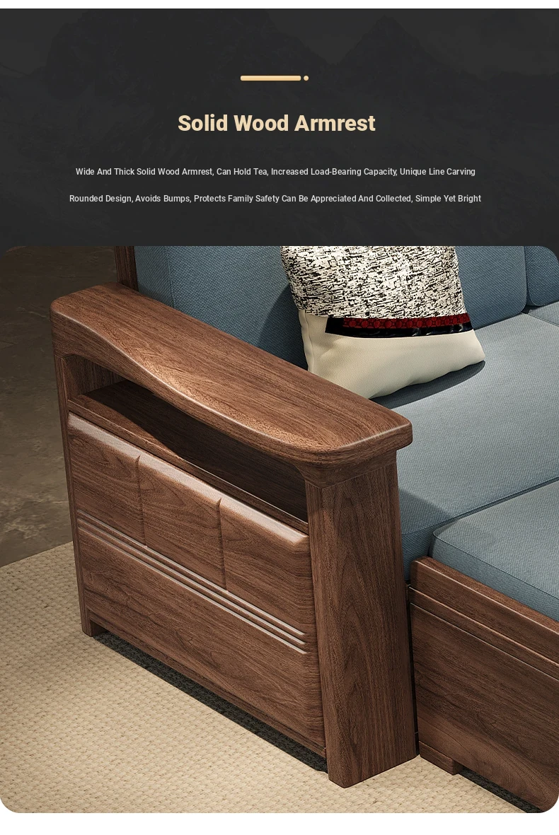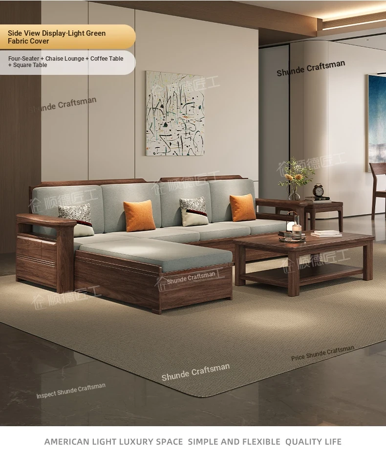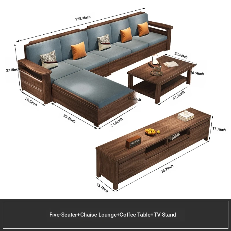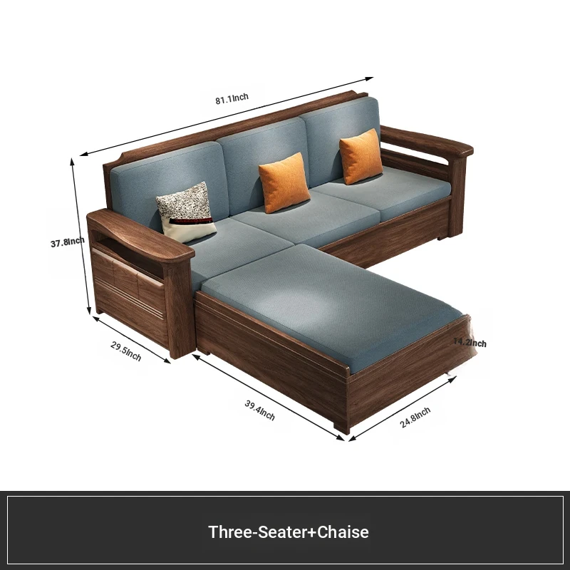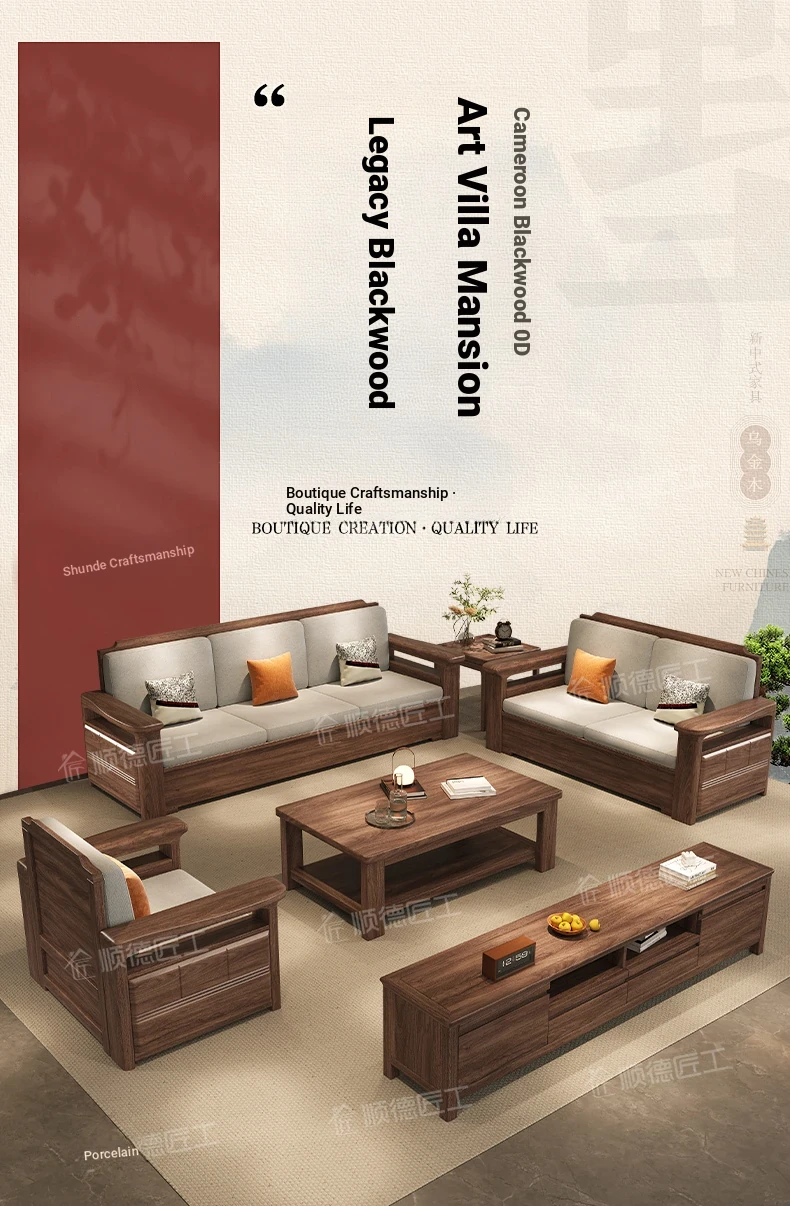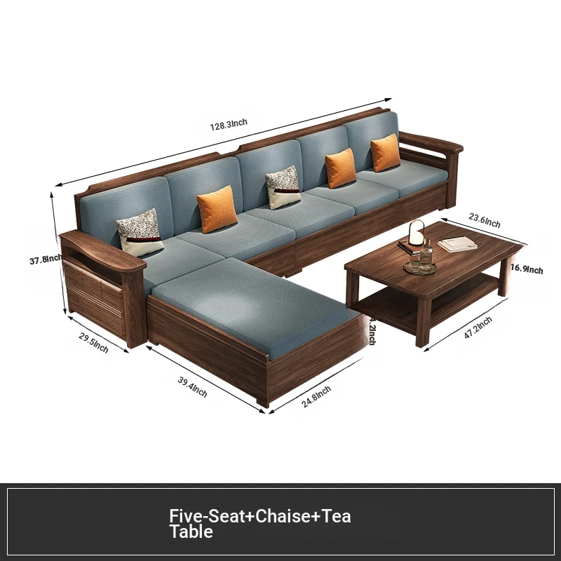 Modern Chinese Style Solid Wood Ulin Sofa Set with Corner Chaise Storage - Versatile for Winter and Summer, Perfect for Small Spaces, Ideal for Your Home!