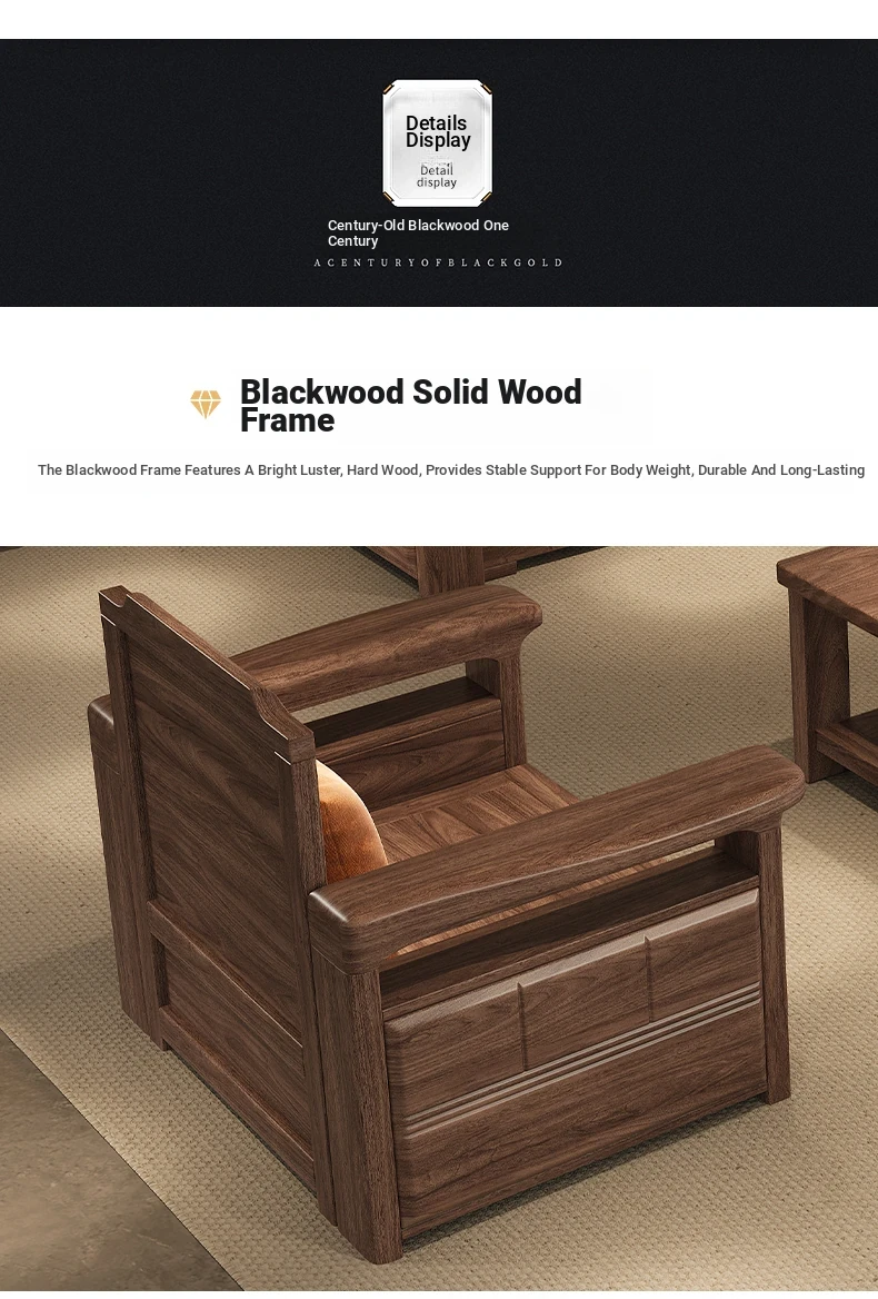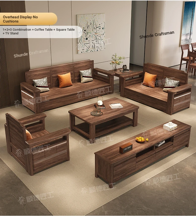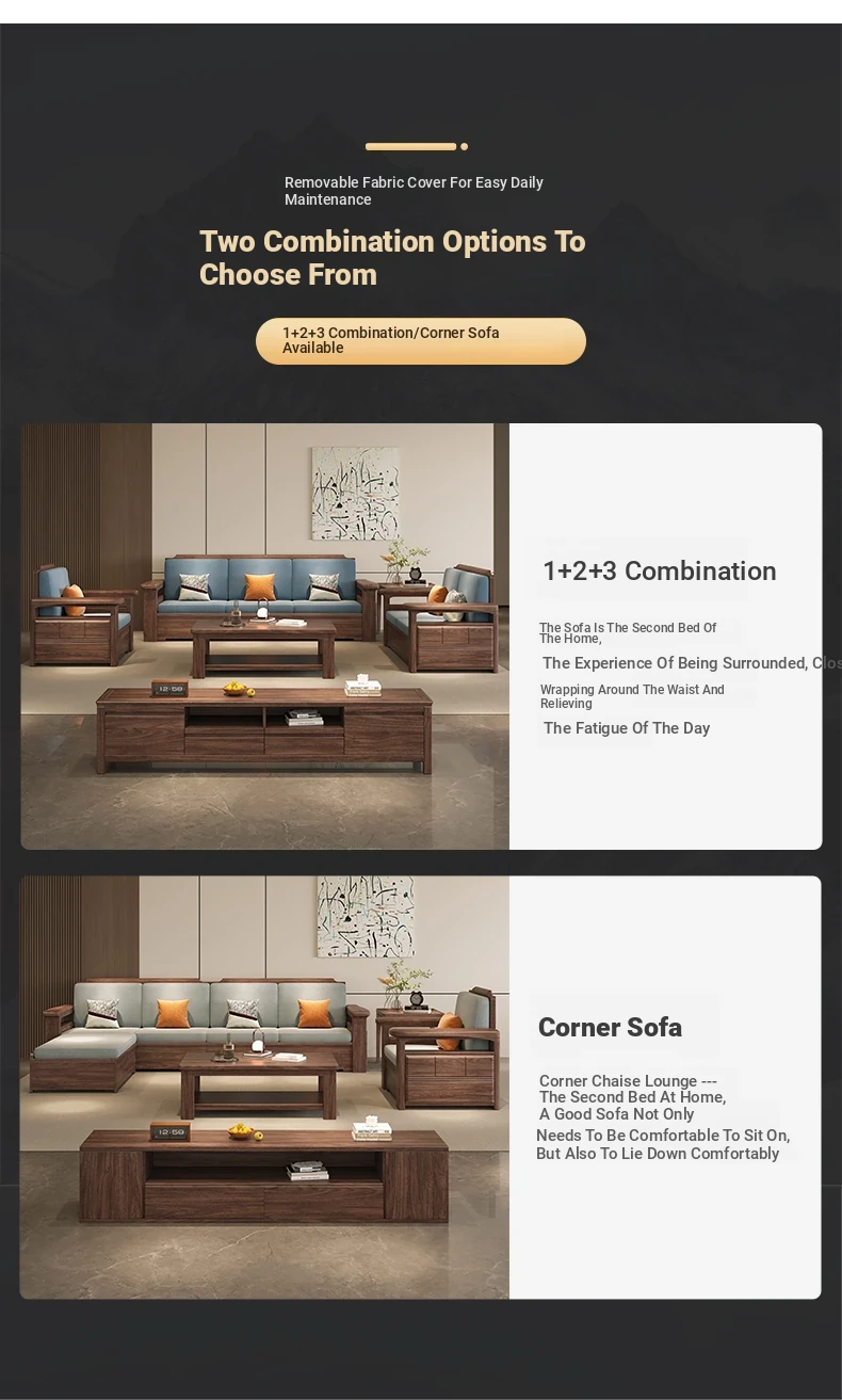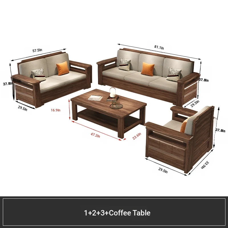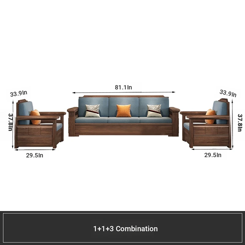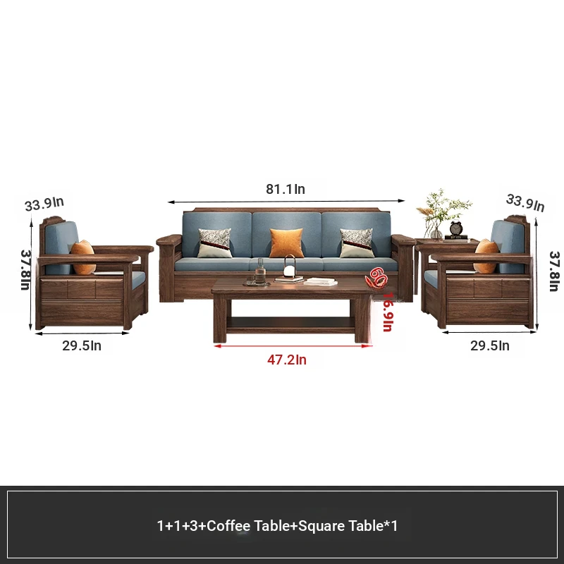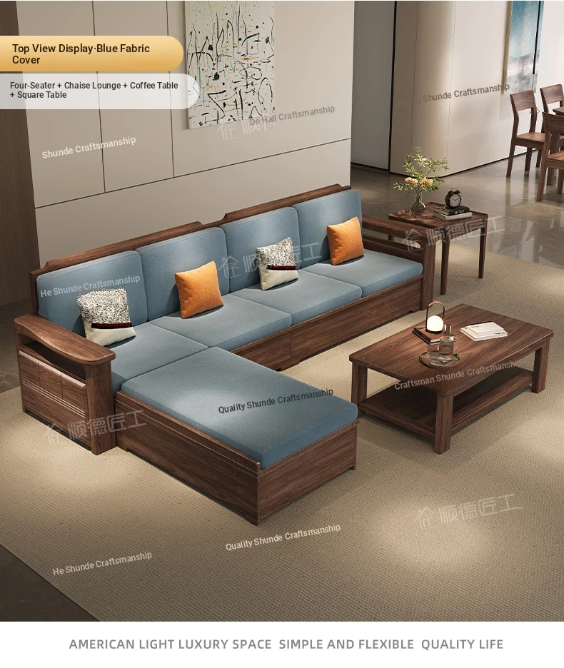 Modern Chinese Style Solid Wood Ulin Sofa Set with Corner Chaise Storage - Versatile for Winter and Summer, Perfect for Small Spaces, Ideal for Your Home!