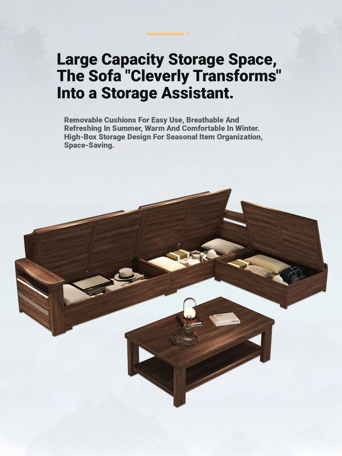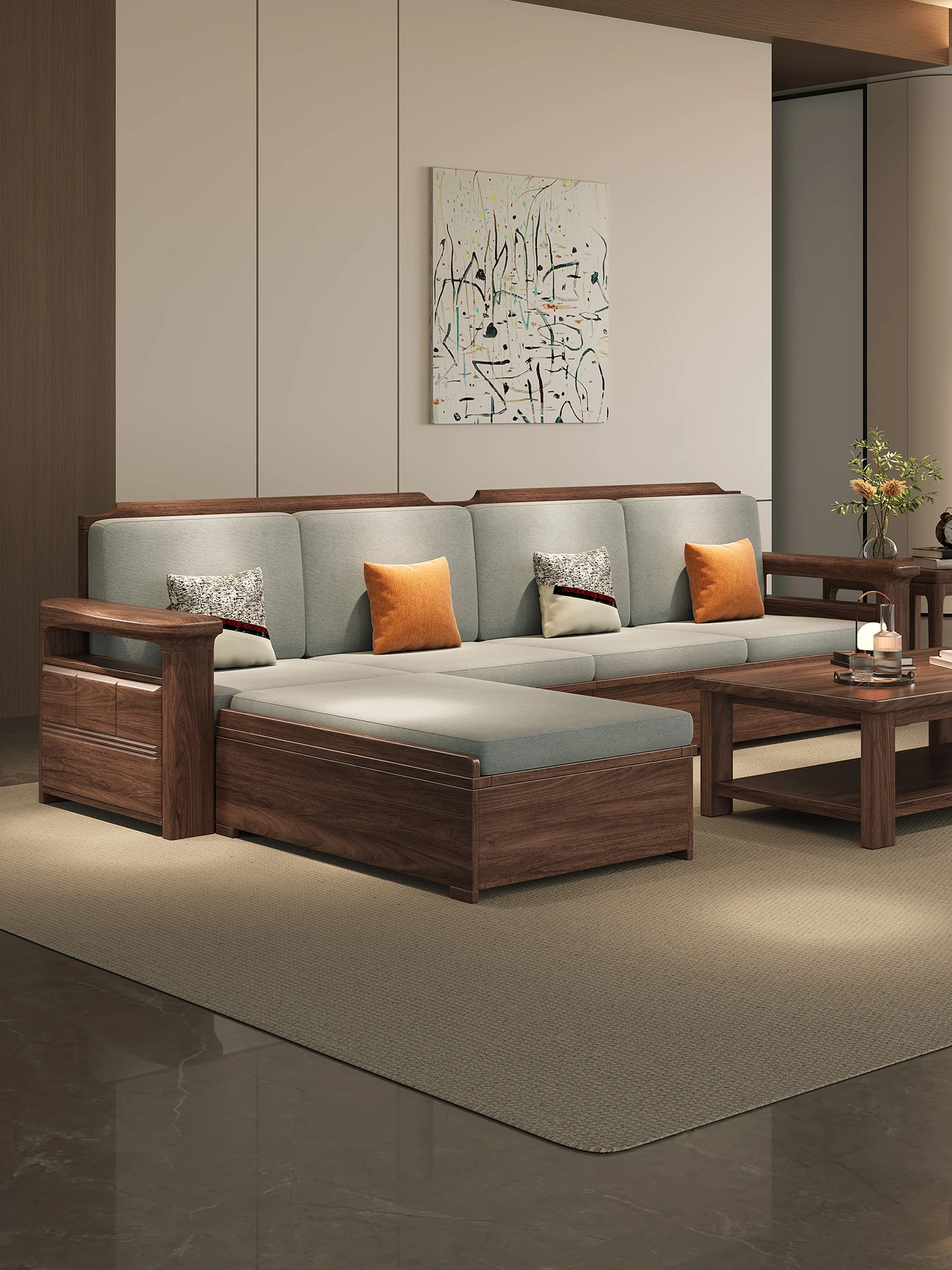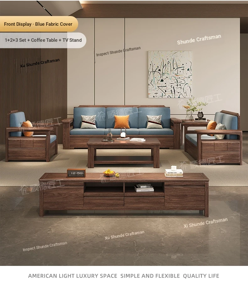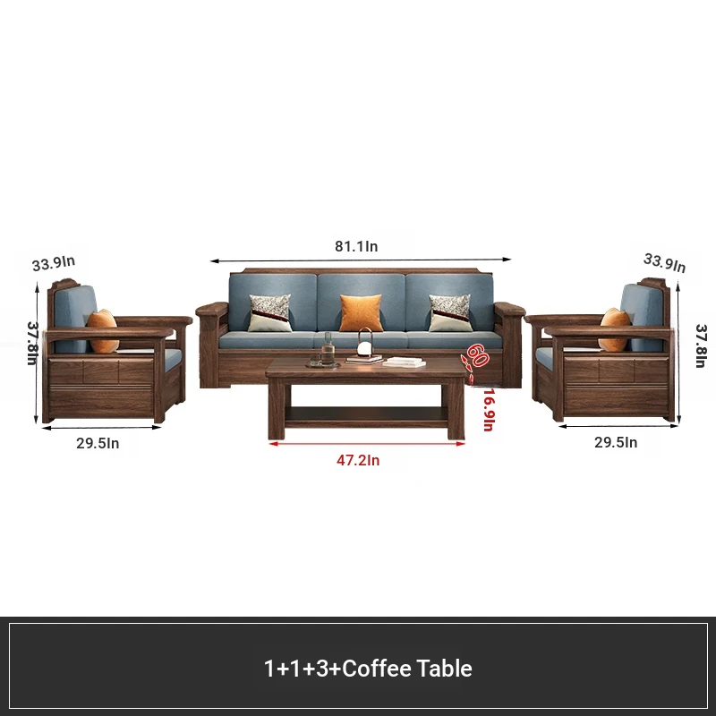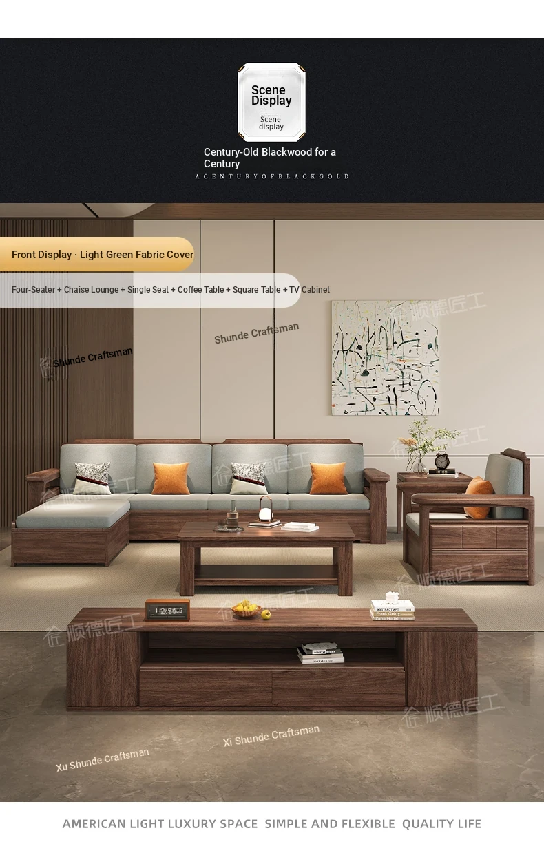 Modern Chinese Style Solid Wood Ulin Sofa Set with Corner Chaise Storage - Versatile for Winter and Summer, Perfect for Small Spaces, Ideal for Your Home!