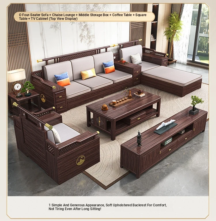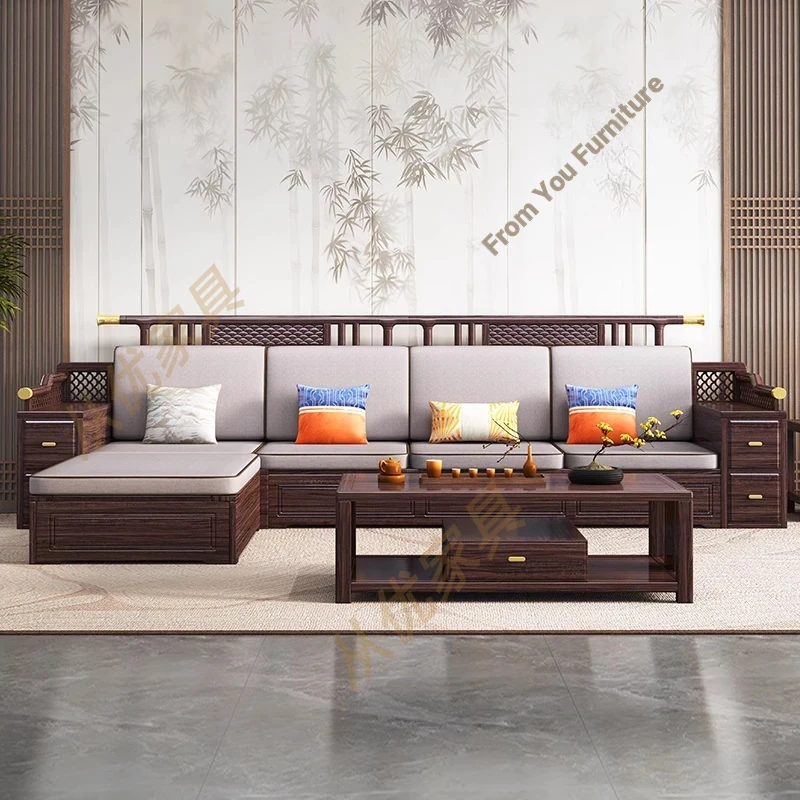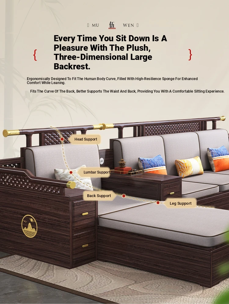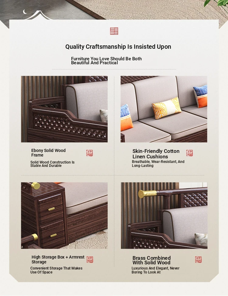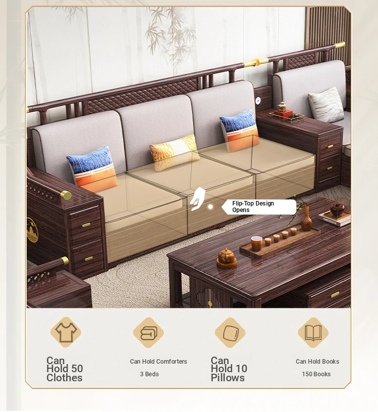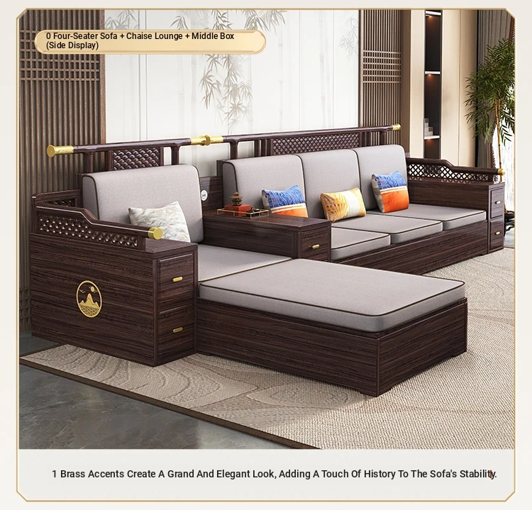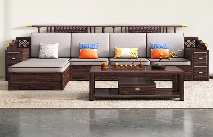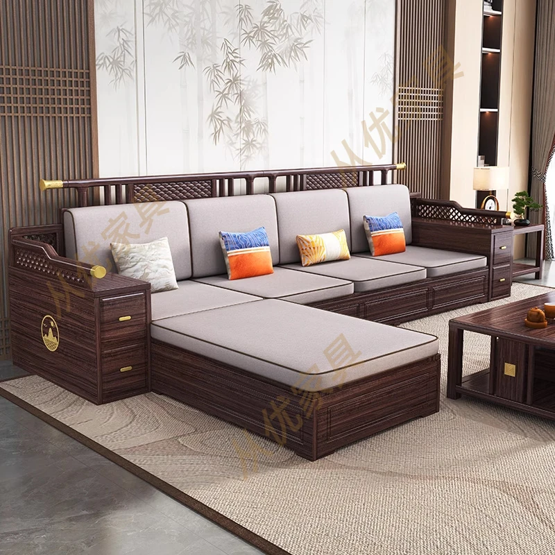 Modern Chinese-Style Blackwood Dual-Season Luxury Sofa Set with Solid Wood Storage - Elegant and Functional Furniture for Your Home