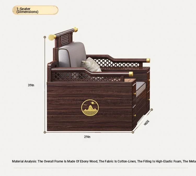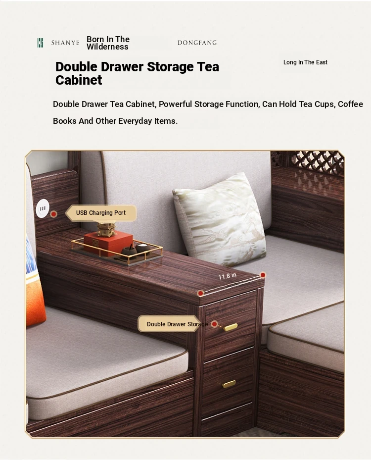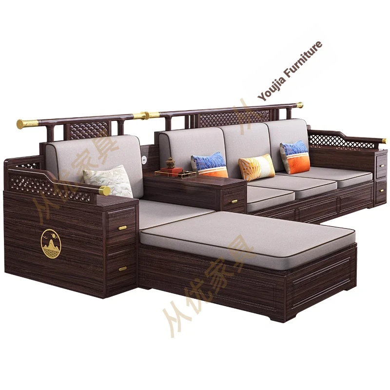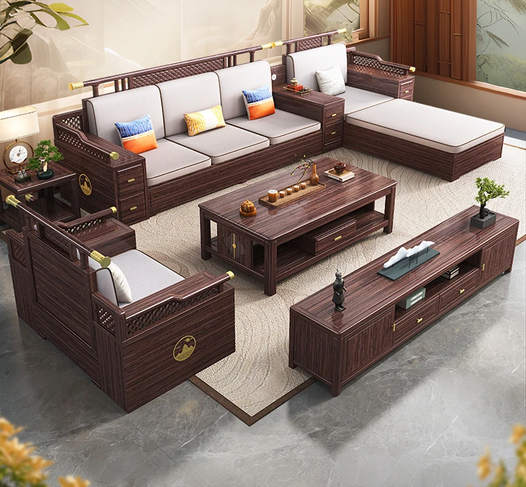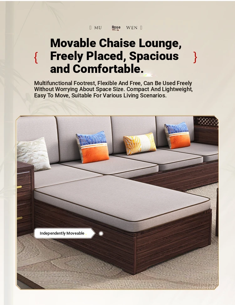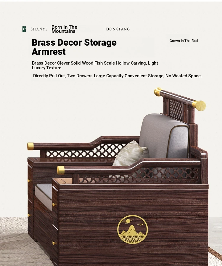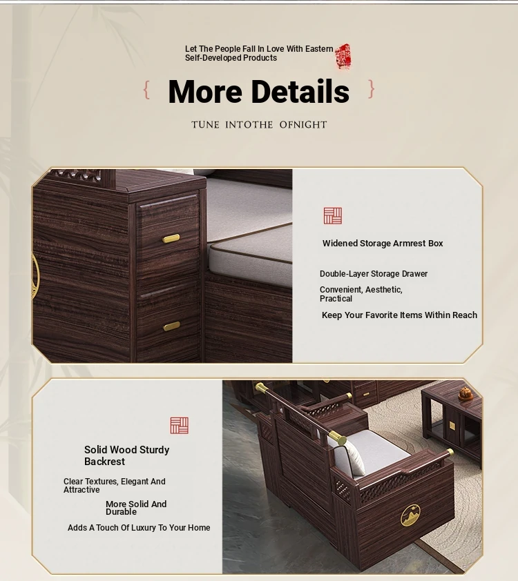 Modern Chinese-Style Blackwood Dual-Season Luxury Sofa Set with Solid Wood Storage - Elegant and Functional Furniture for Your Home