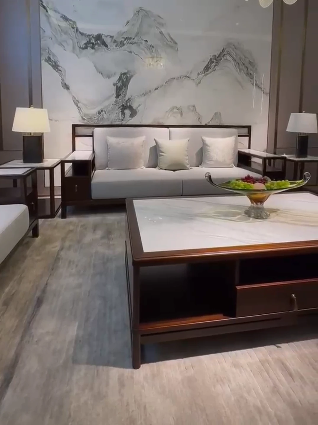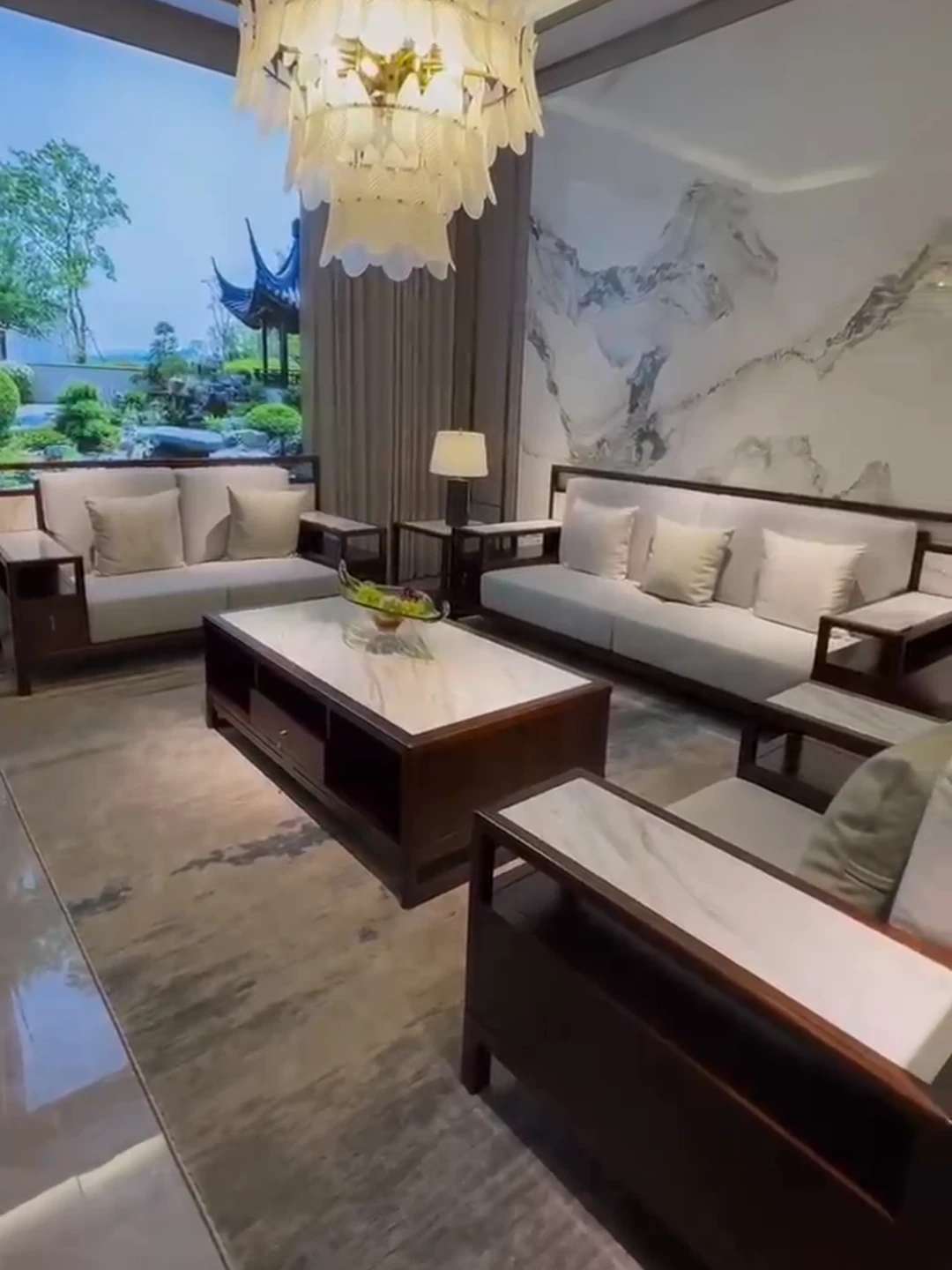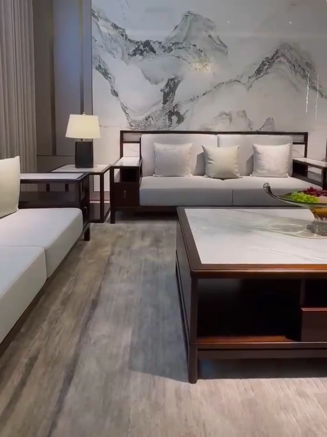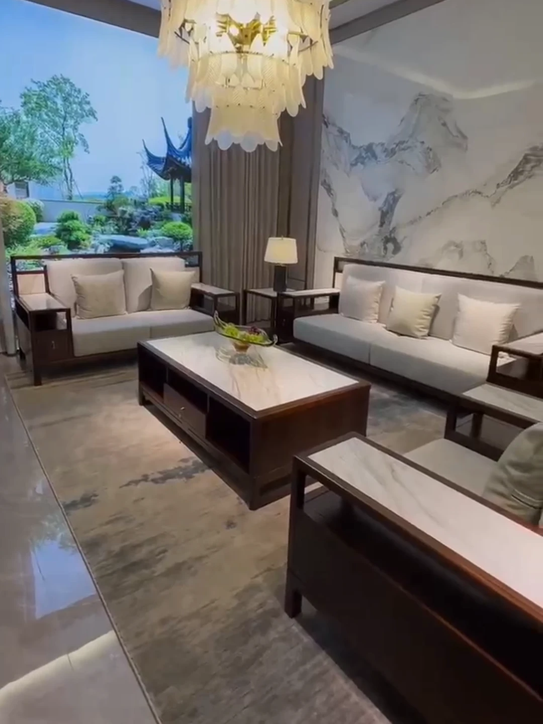 Modern Chinese-Style Solid Wood Black Gold Sofa Set - High-End Rock Plate Furniture for Living Room, Hotels, and Villas of All Sizes