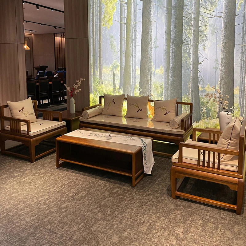 Modern Chinese-Style Solid Wood Sofa Set with Tea Table - Elegant Minimalist Design for Villas, Offices, and Business Reception Areas. Perfect for Sophisticated Gatherings!