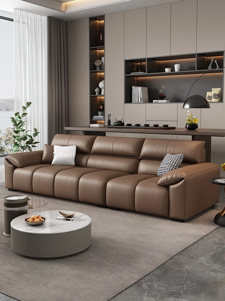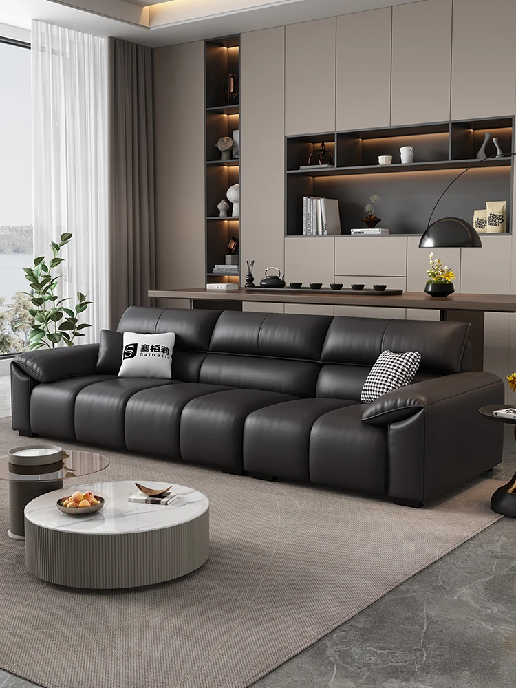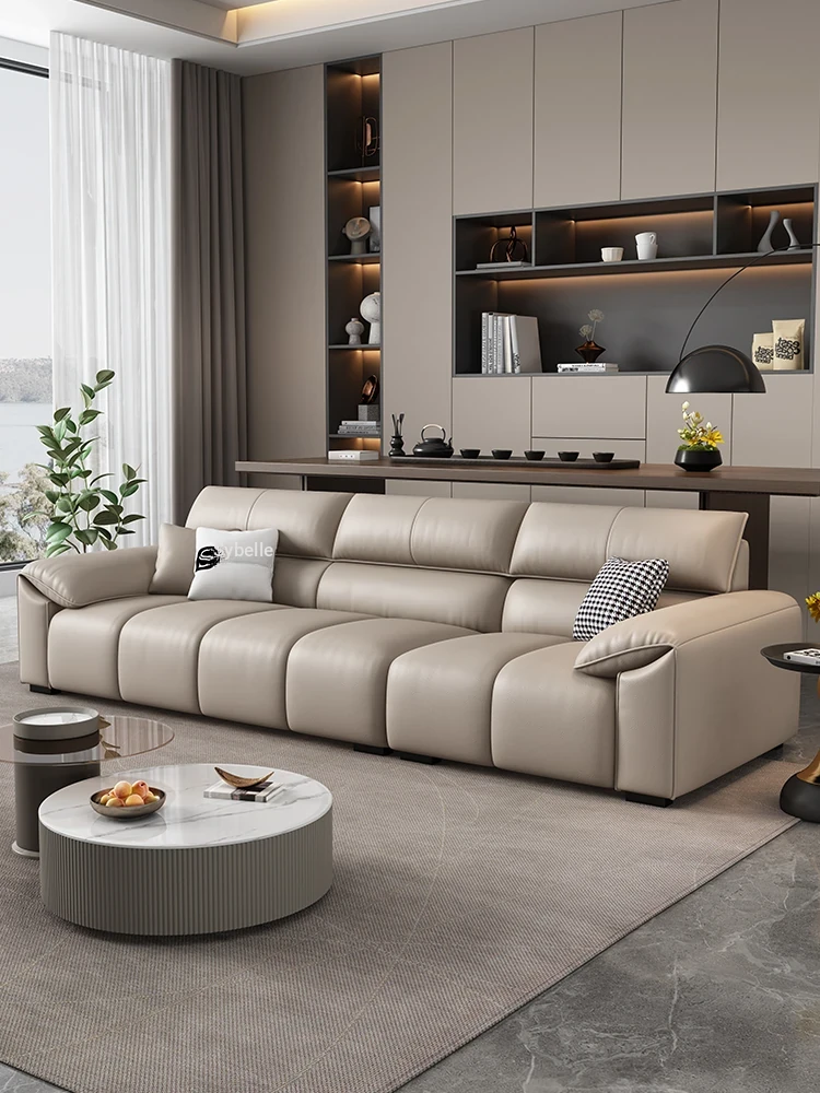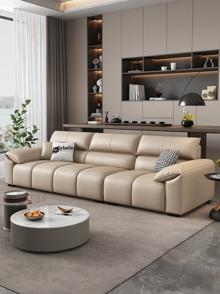 Modern Minimalist 2025 New Cat Scratch-Resistant Fabric Sofa - Stylish Three-Seater for Small Living Spaces, Featuring Genuine Leather and Sleek Design