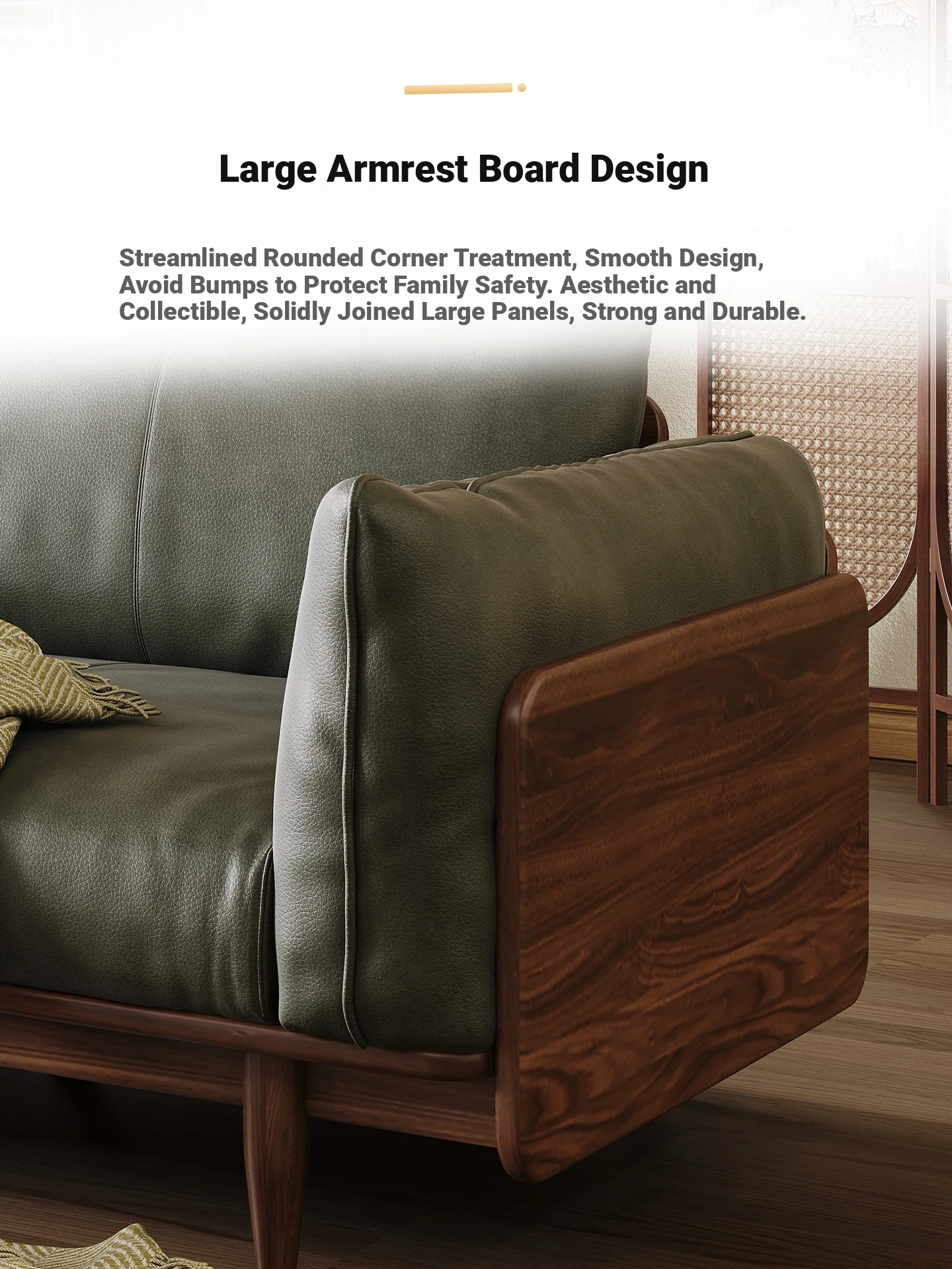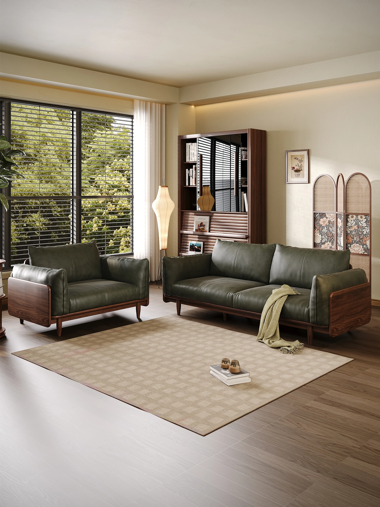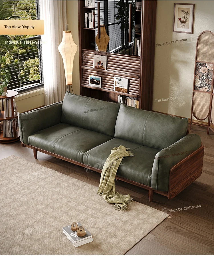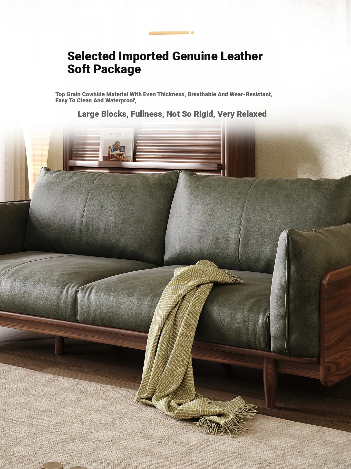 Modern Minimalist Blackwood Solid Wood Sofa Set - High-End Luxury for Villas and Apartments, Perfect for Living Rooms, Crafted with Genuine Leather and Wooden Accents.