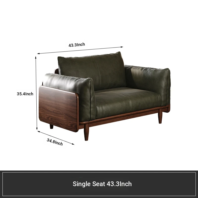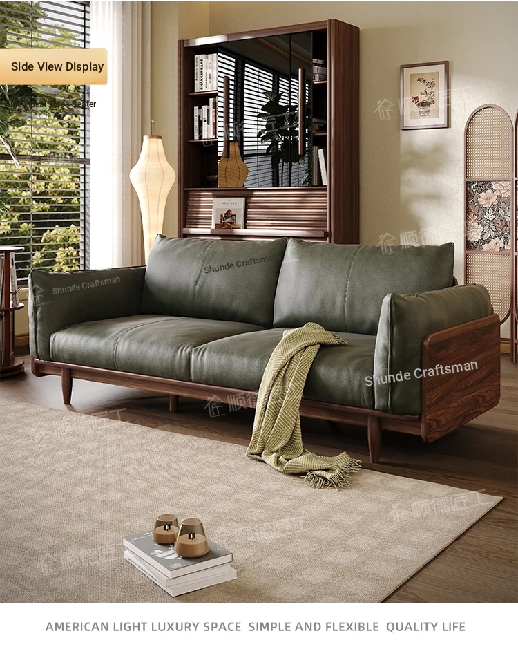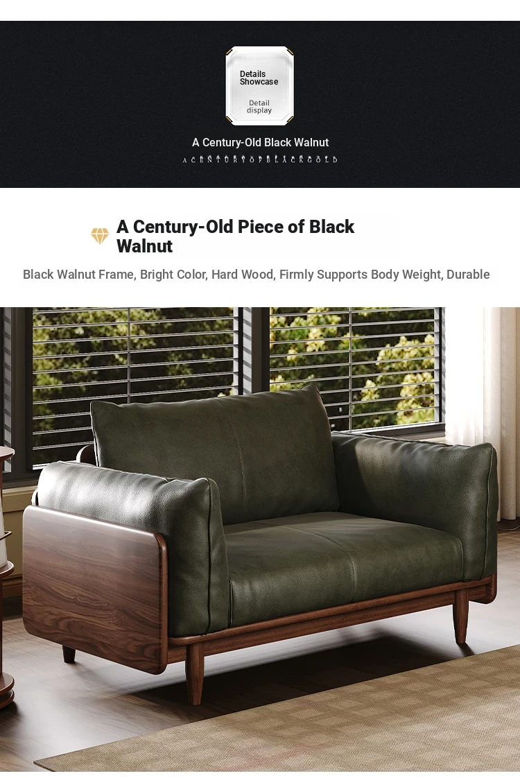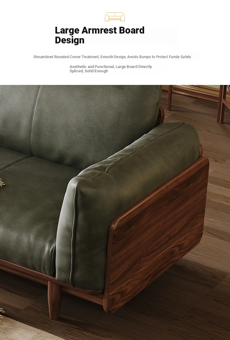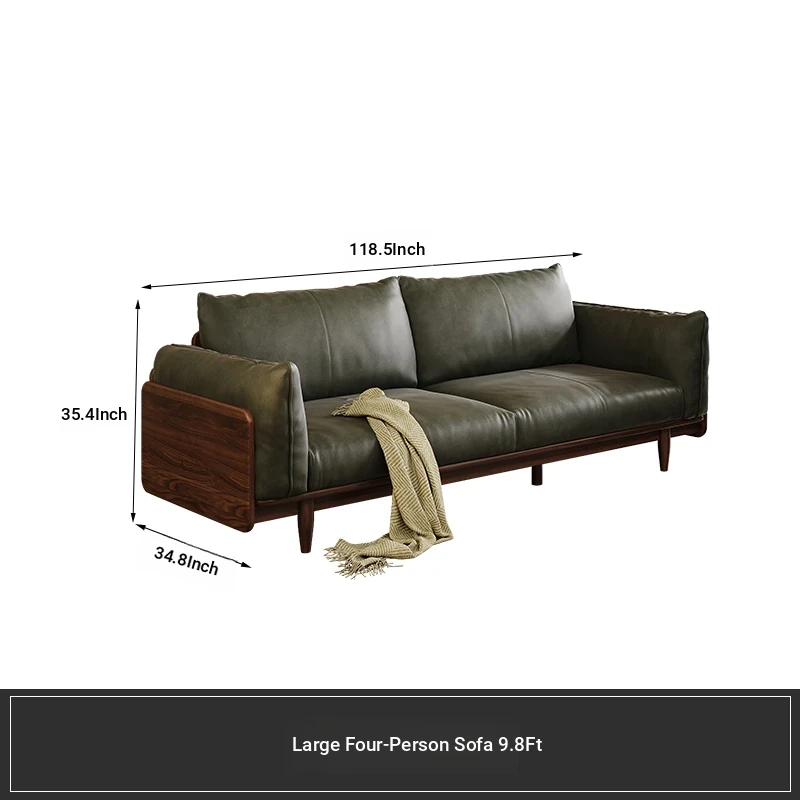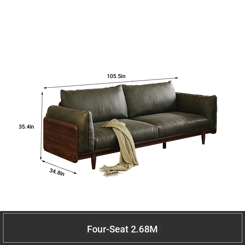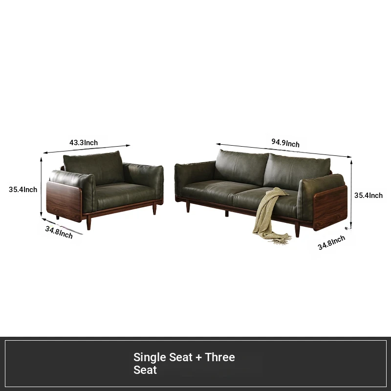 Modern Minimalist Blackwood Solid Wood Sofa Set - High-End Luxury for Villas and Apartments, Perfect for Living Rooms, Crafted with Genuine Leather and Wooden Accents.