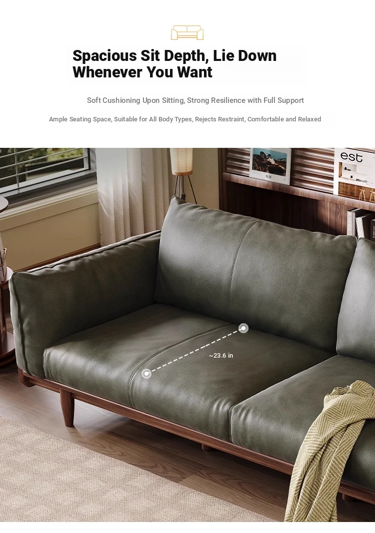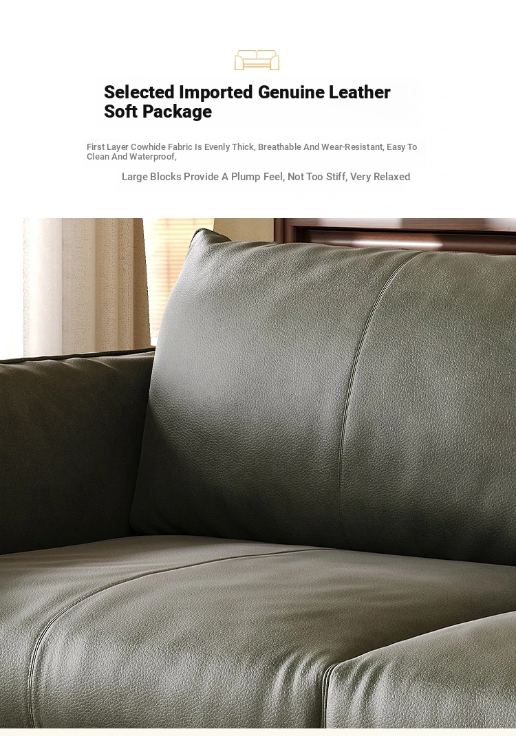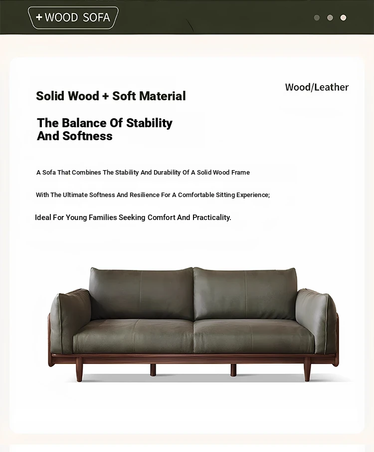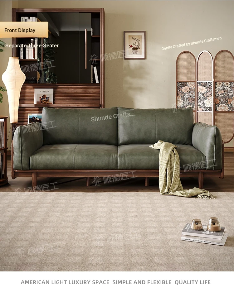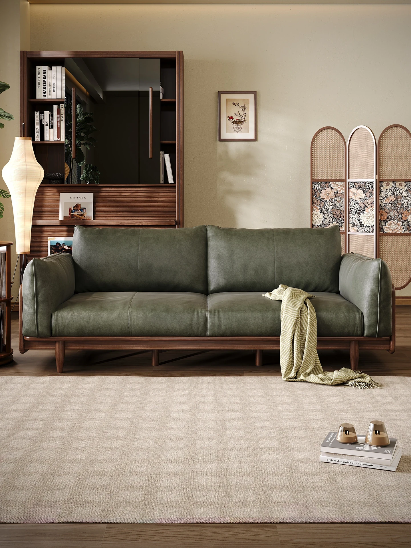 Modern Minimalist Blackwood Solid Wood Sofa Set - High-End Luxury for Villas and Apartments, Perfect for Living Rooms, Crafted with Genuine Leather and Wooden Accents.