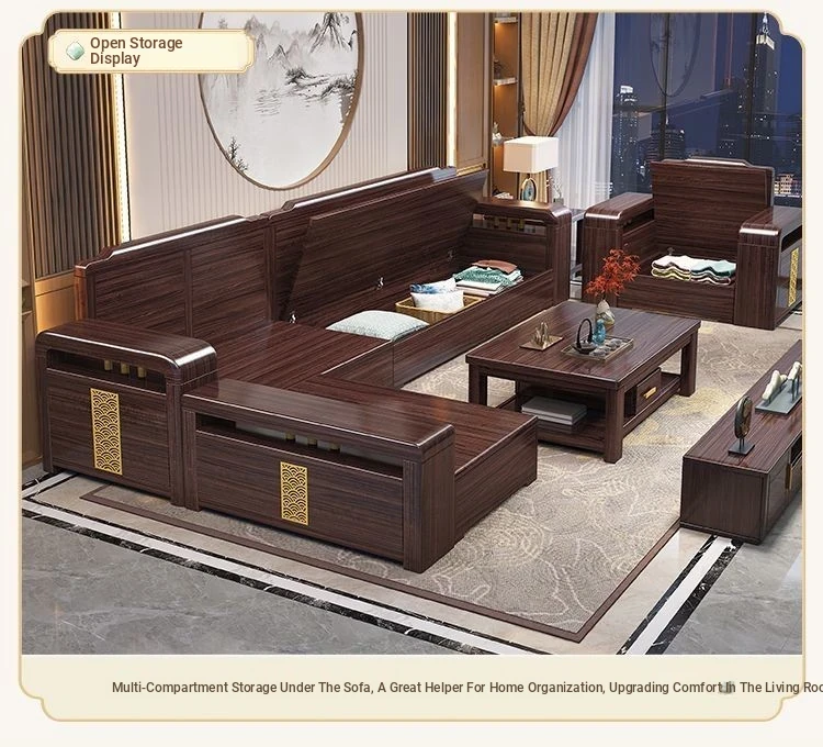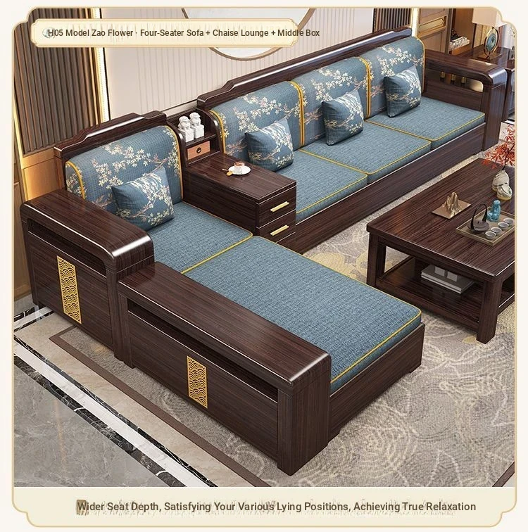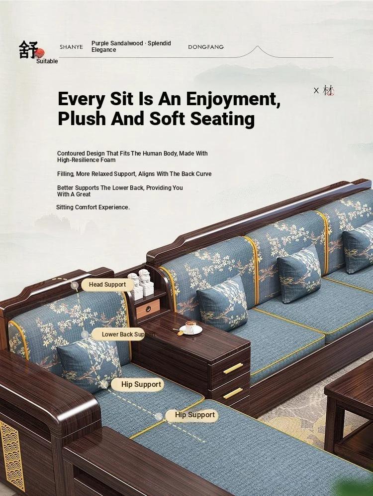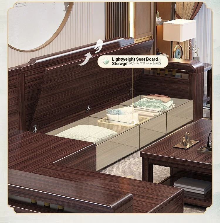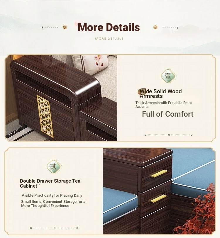 [Zijin Sandalwood] Three-person + Imperial Bed + Tea Table