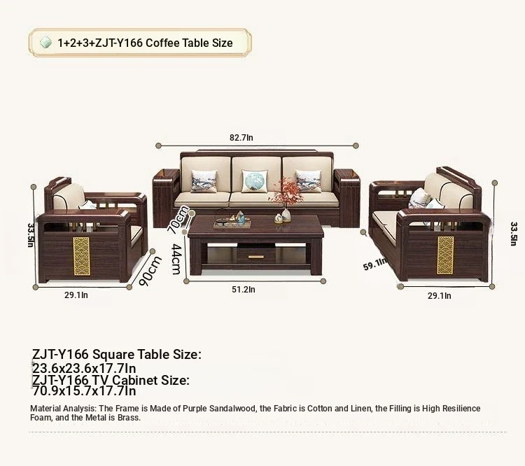 [Zijin Sandalwood] 1+2+3 + Tea Table + Square Table