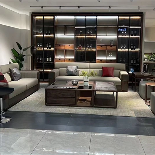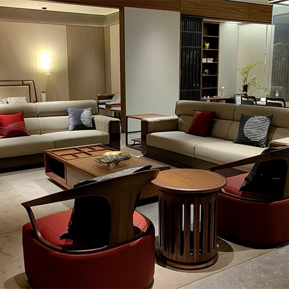 Modern Minimalist Solid Wood Sofa for Large Living Rooms - Stylish and Comfortable North American Black Walnut Sofa