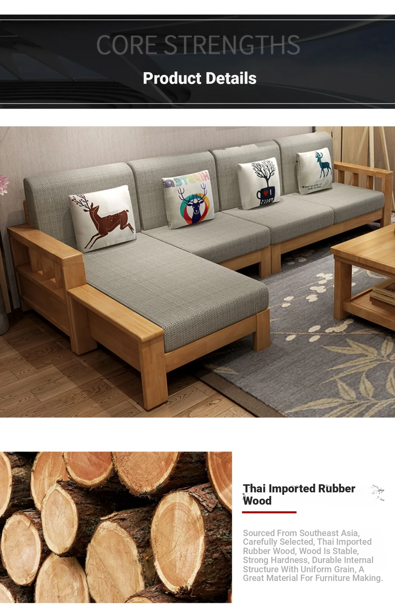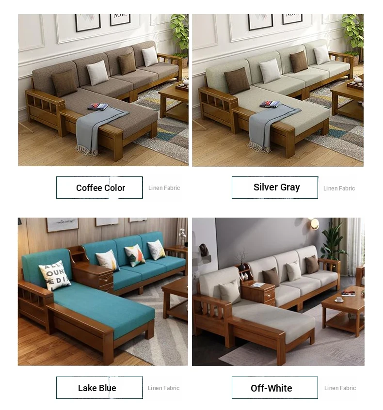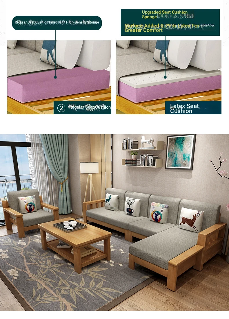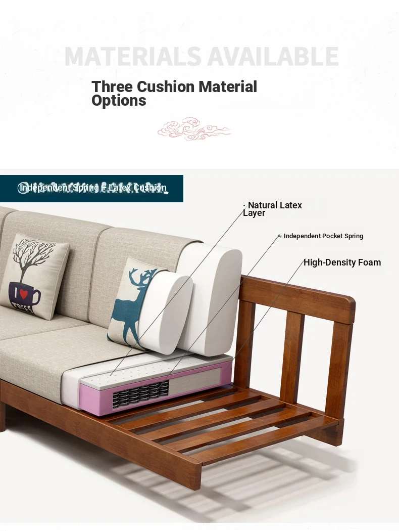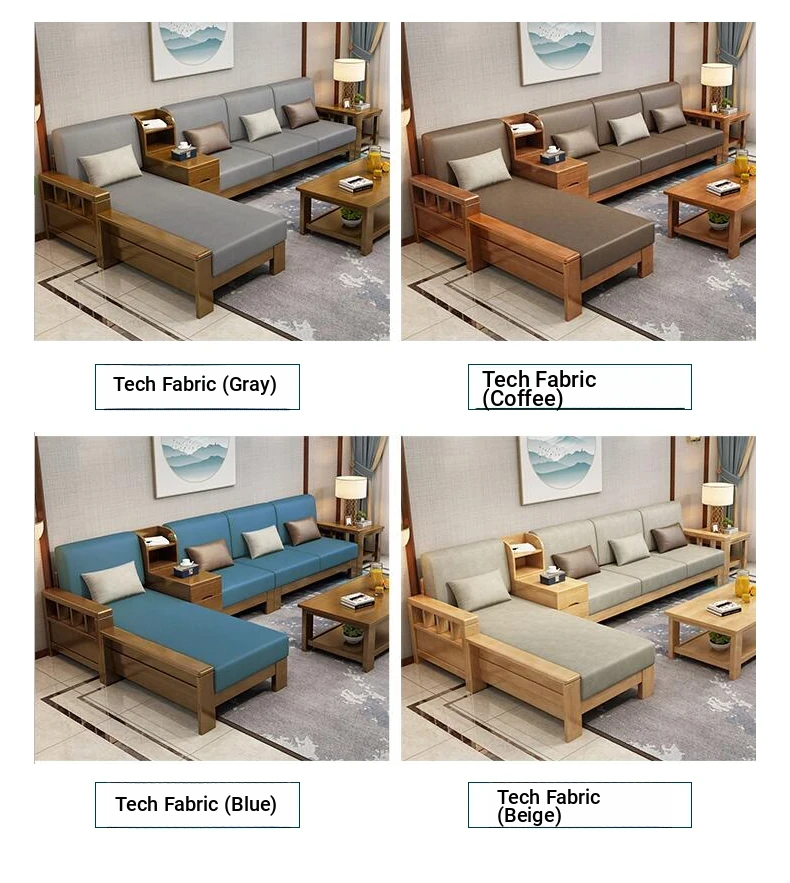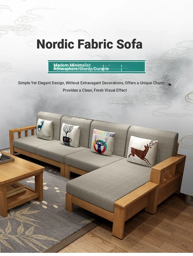 Modern Minimalist Solid Wood Sofa Set for Living Room – Elegant Chinese Style, Sectional Design with Fabric and Wood, Perfect for Small Spaces with Chaise Lounge