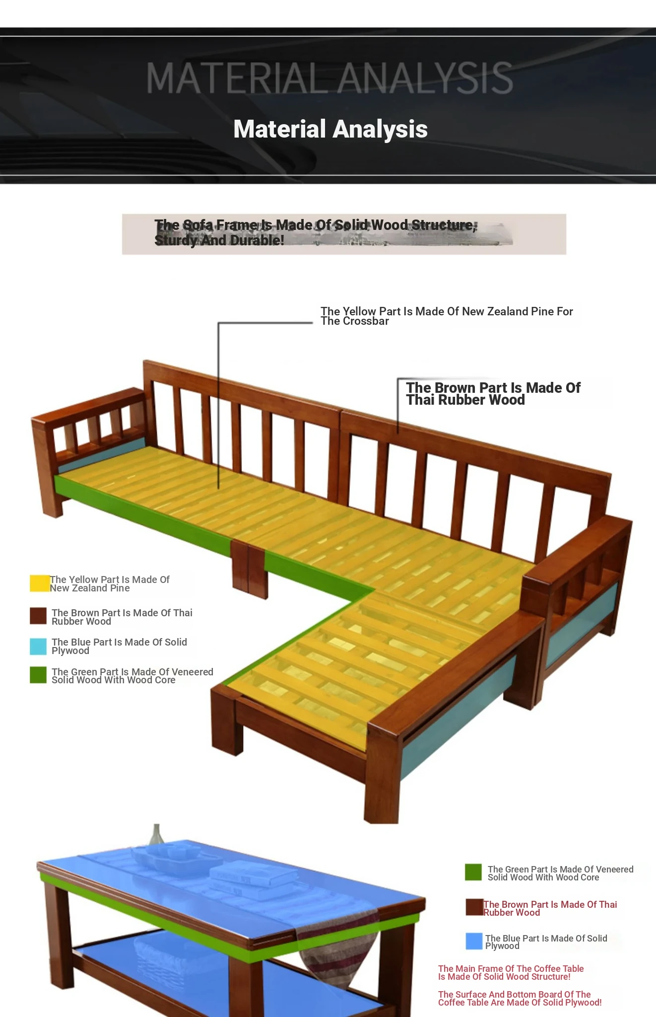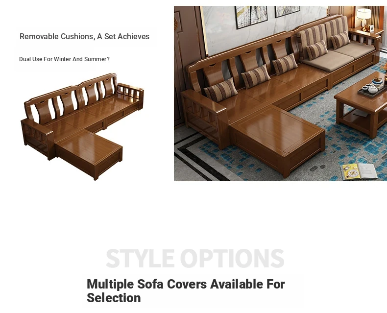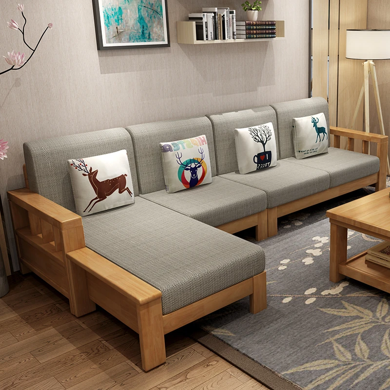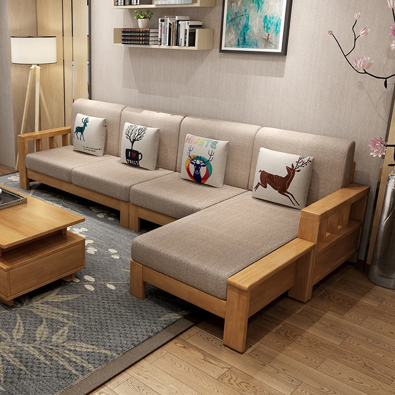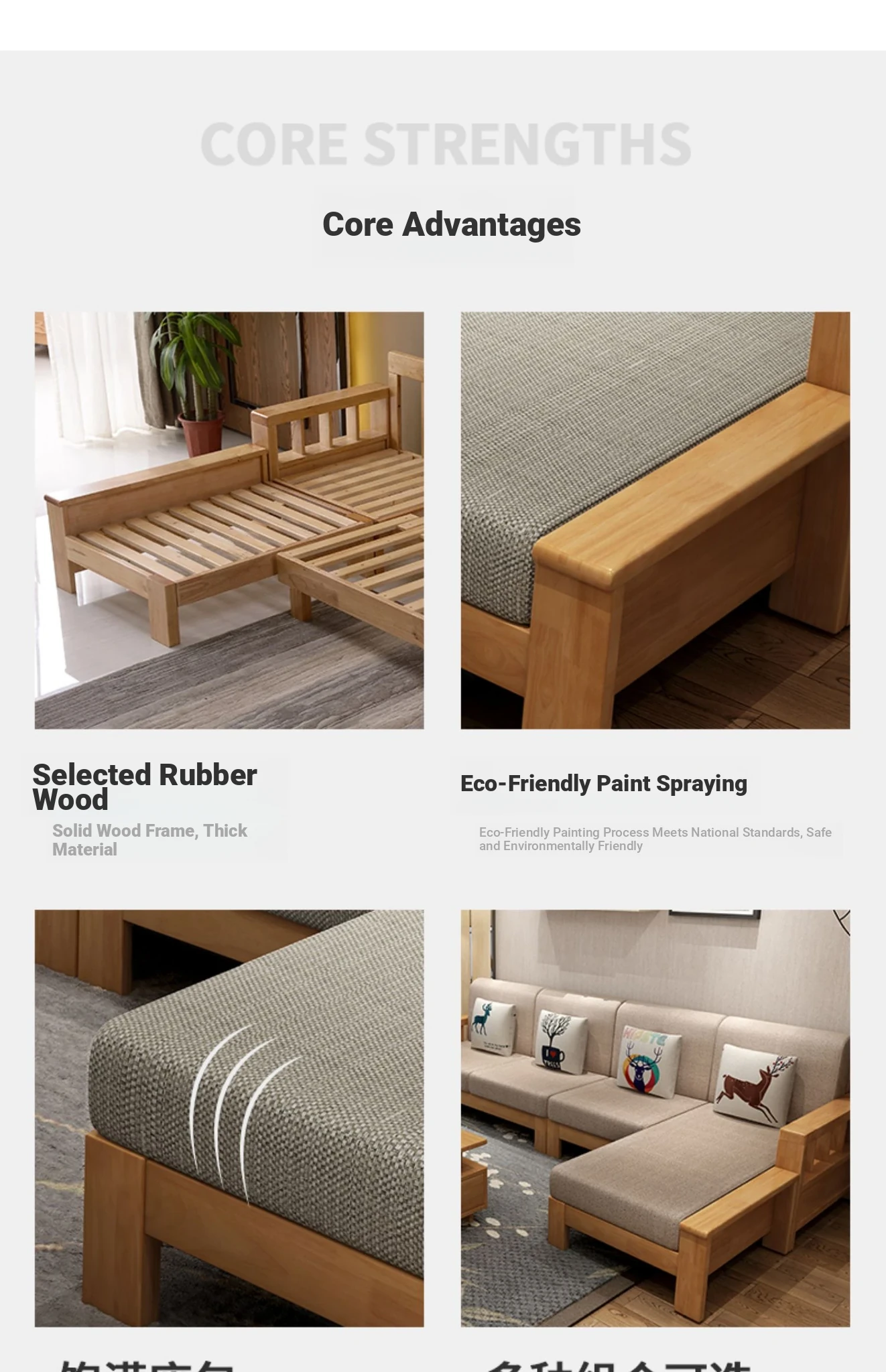 Modern Minimalist Solid Wood Sofa Set for Living Room – Elegant Chinese Style, Sectional Design with Fabric and Wood, Perfect for Small Spaces with Chaise Lounge