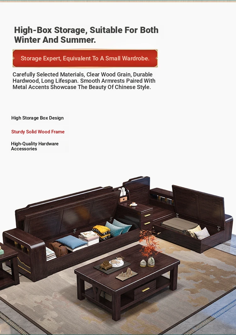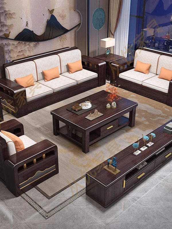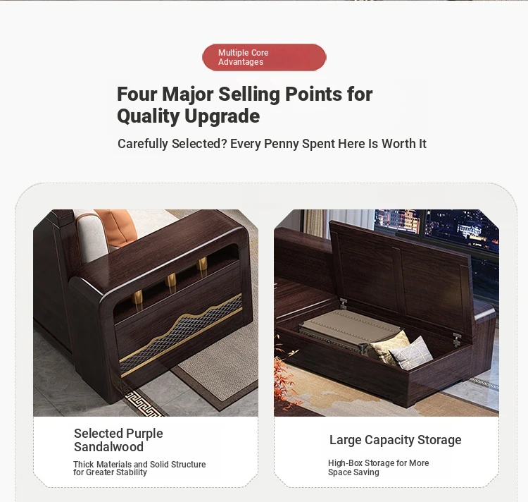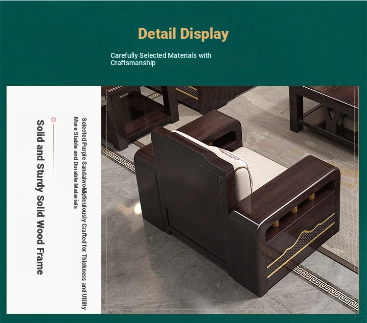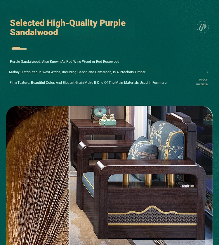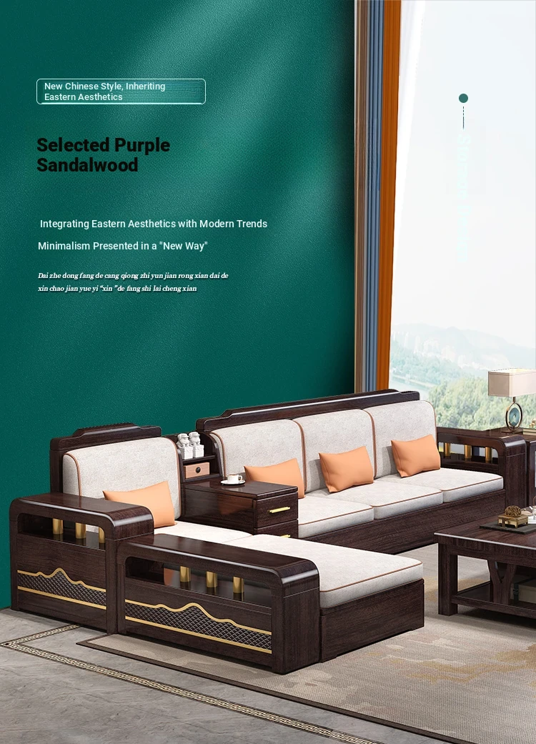 Modern Minimalist Solid Wood Sofa Set for Small Spaces – New Chinese Style Purple Sandalwood Living Room Furniture with Storage Solutions