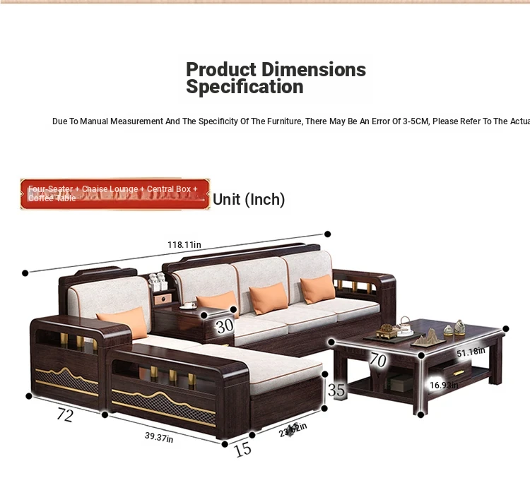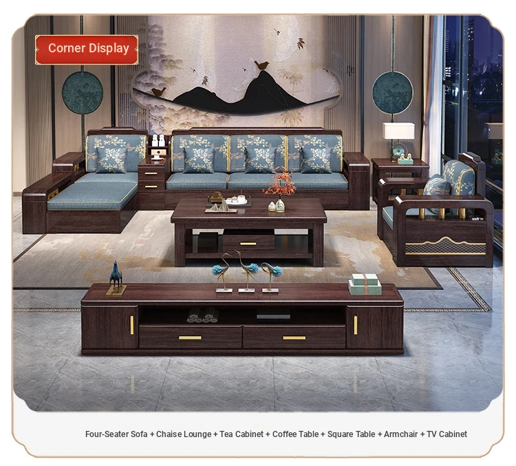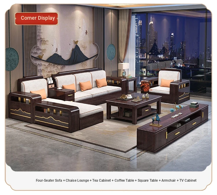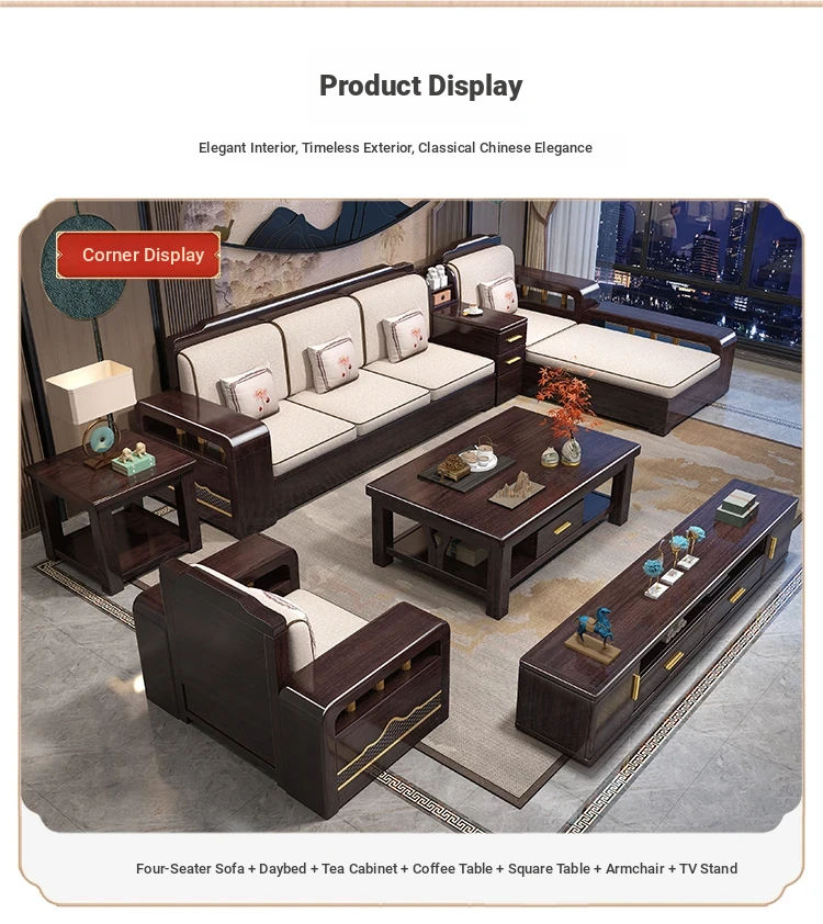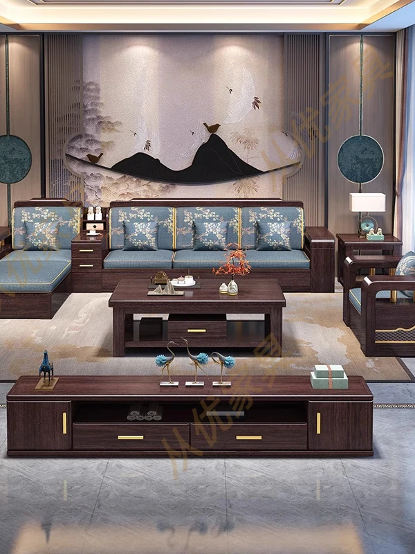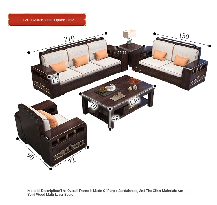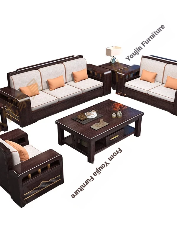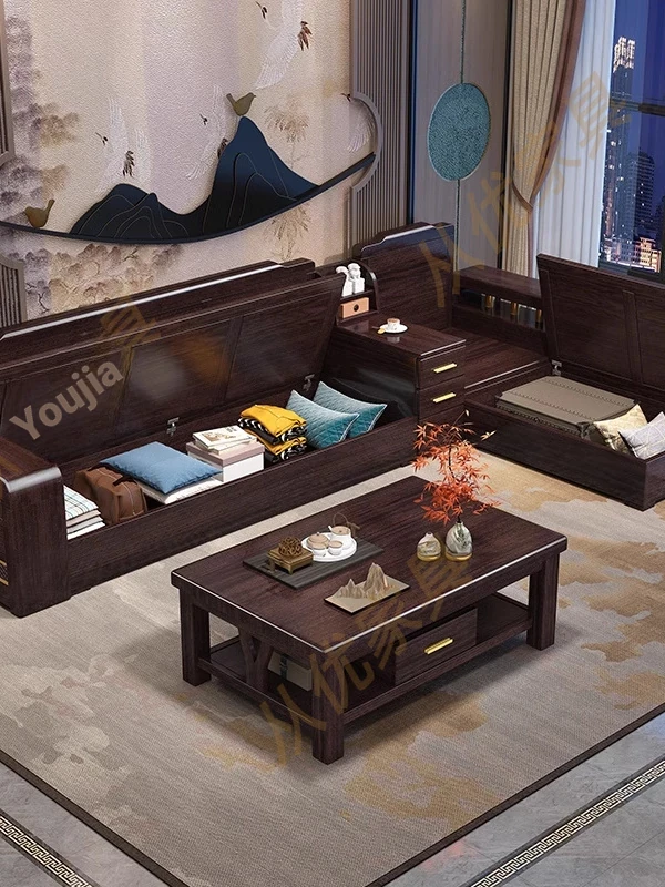 Modern Minimalist Solid Wood Sofa Set for Small Spaces – New Chinese Style Purple Sandalwood Living Room Furniture with Storage Solutions