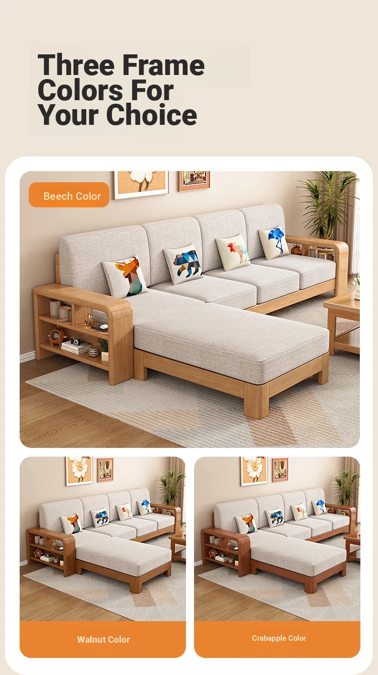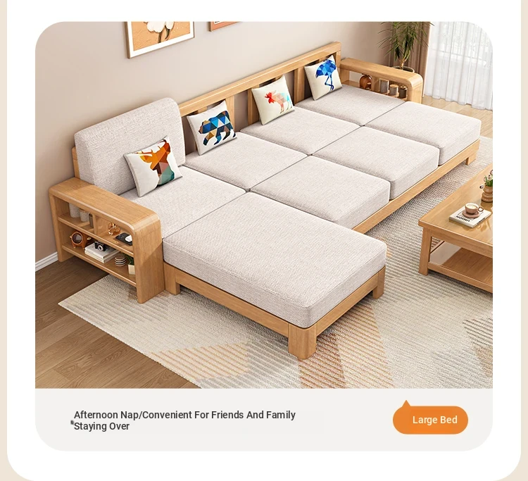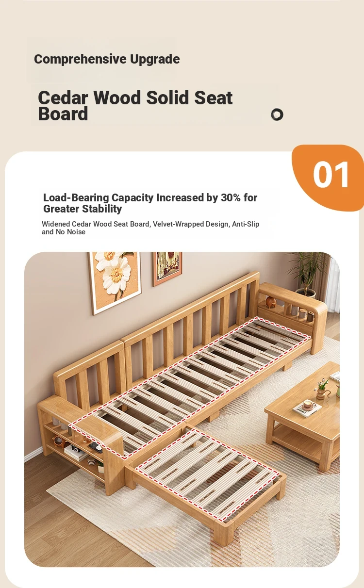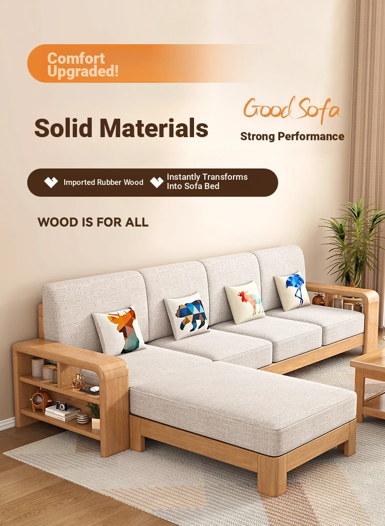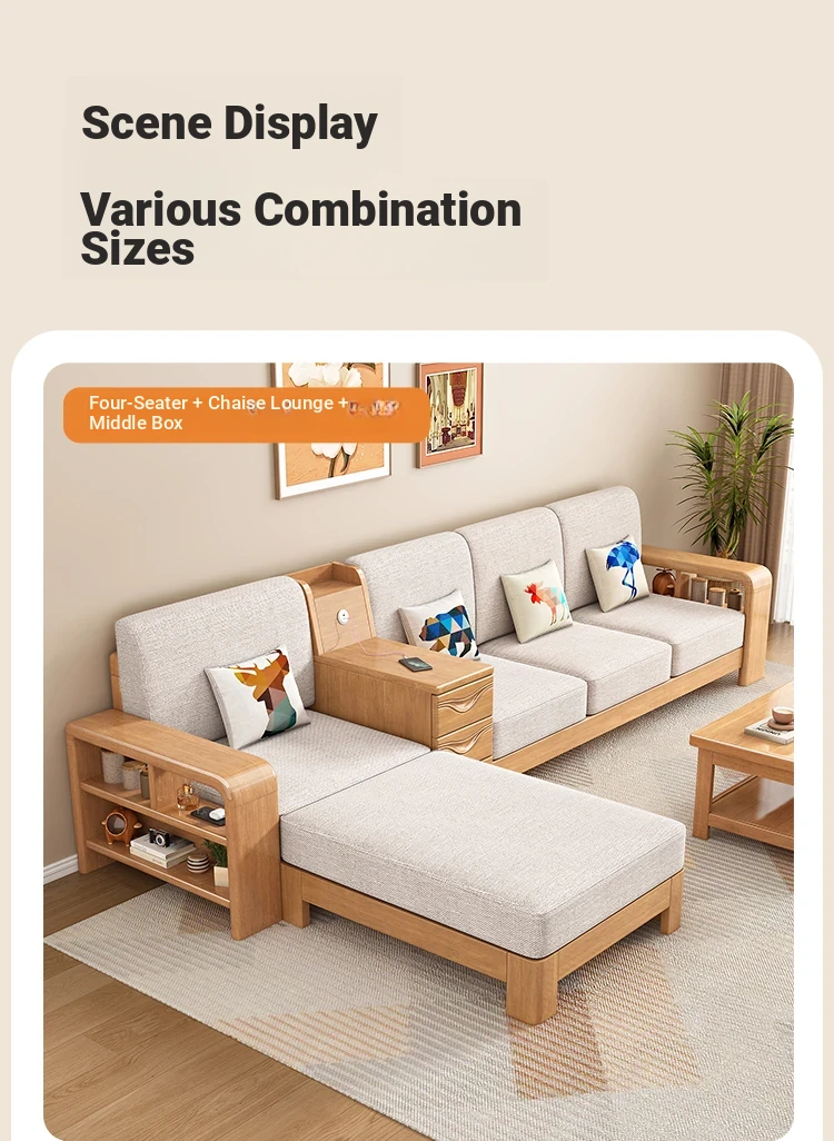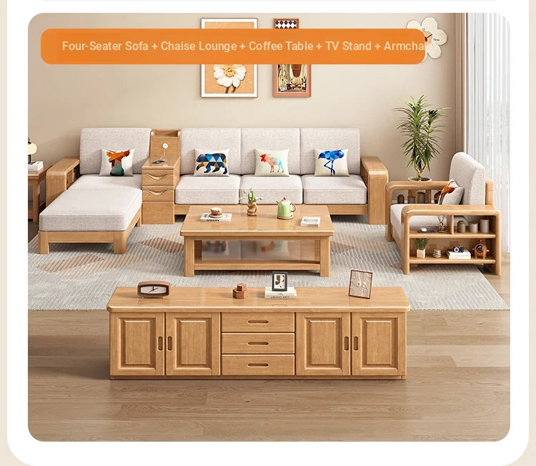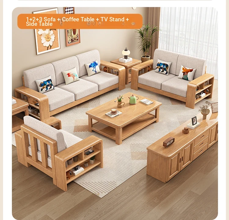 Modern Minimalist Solid Wood Sofa Set for Small Spaces - Fully Wooden Living Room Combination Sofa Bed, Direct Factory Sales