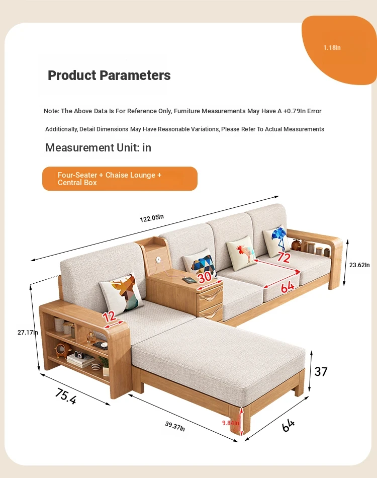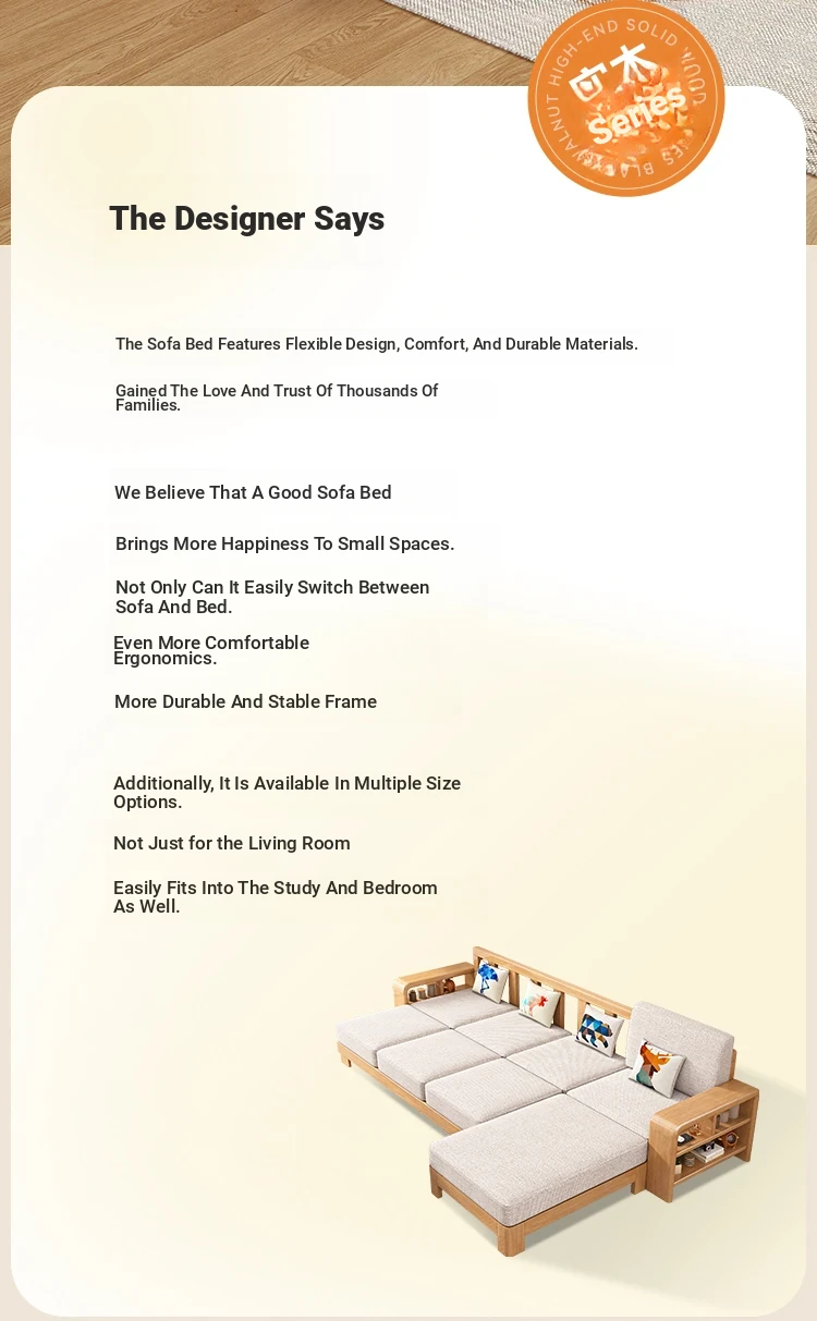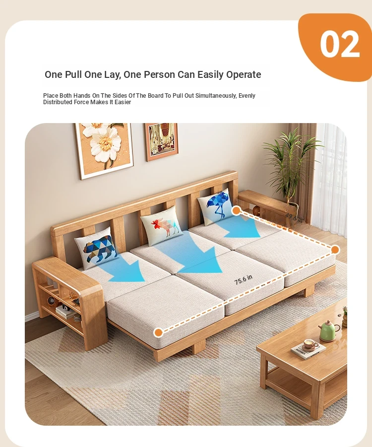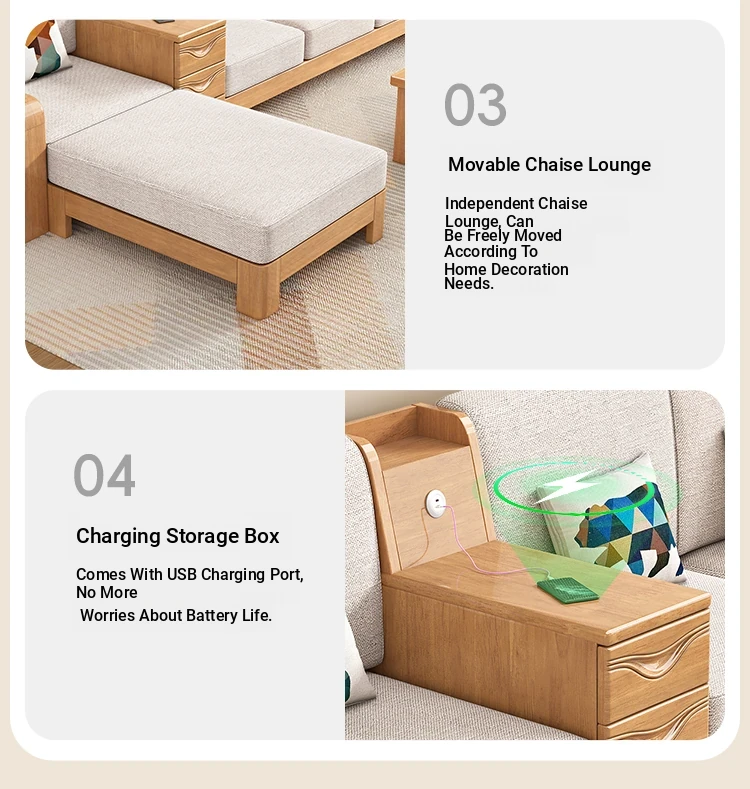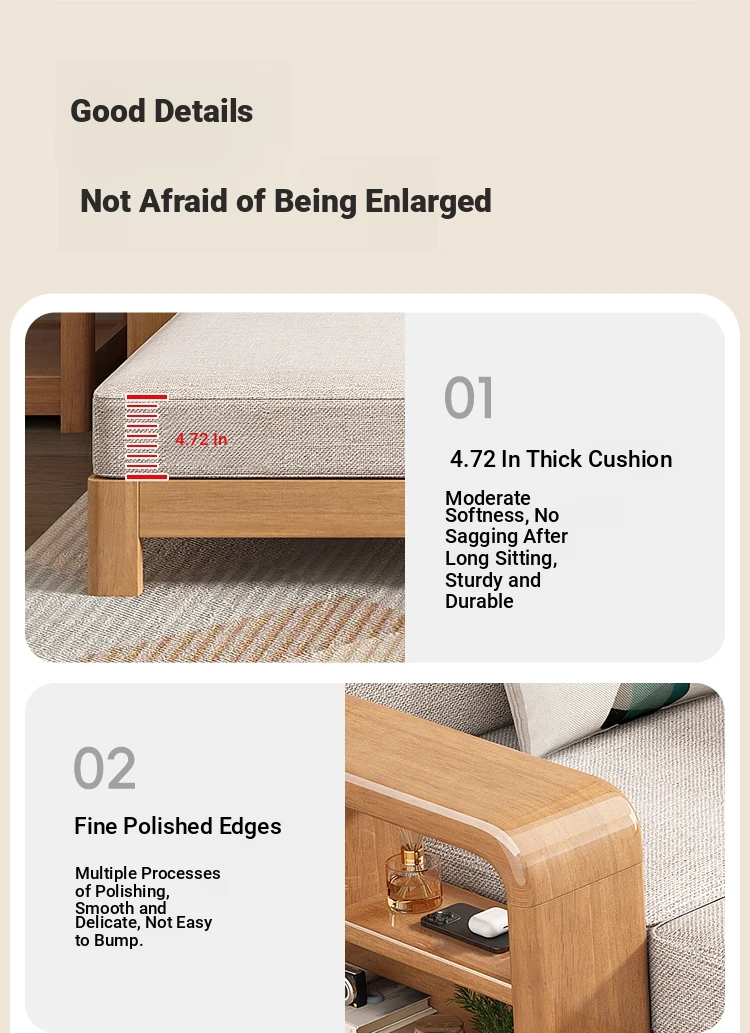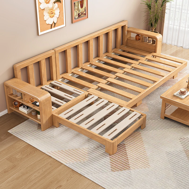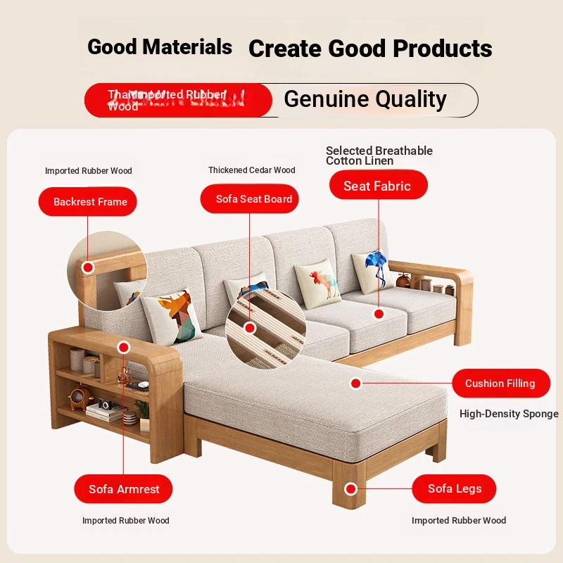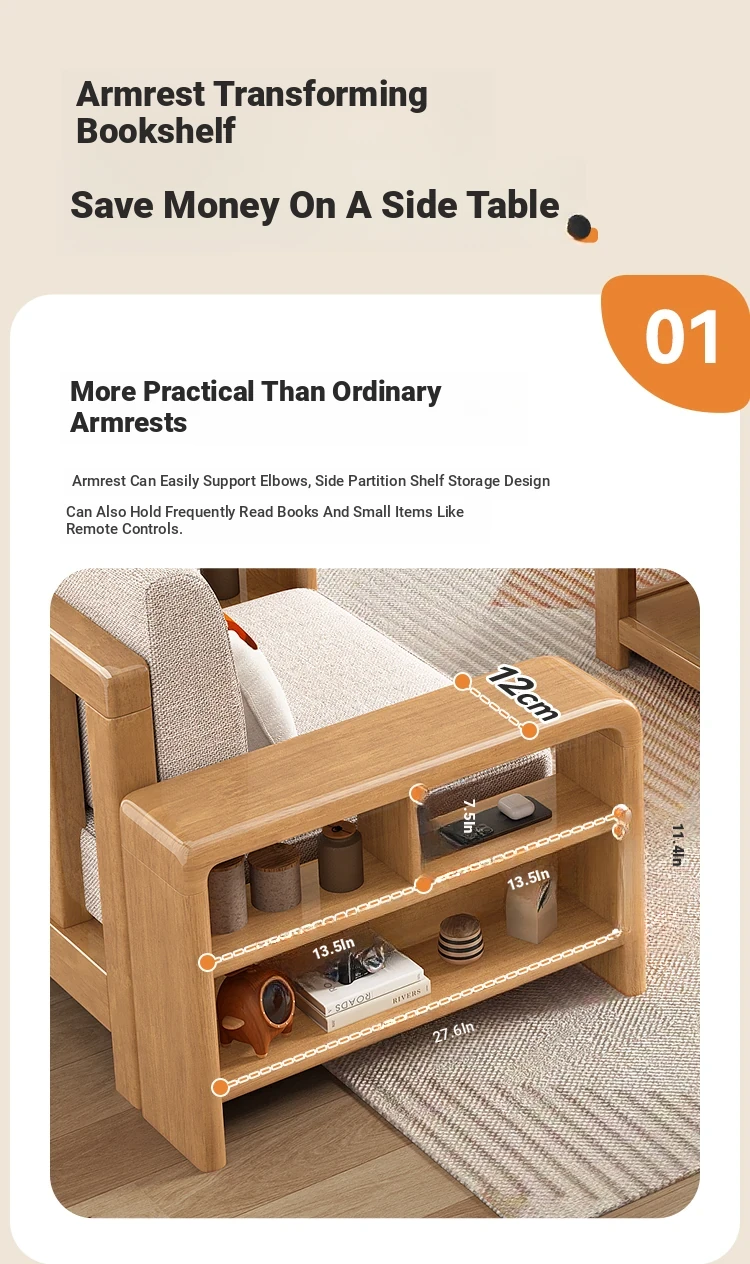 Modern Minimalist Solid Wood Sofa Set for Small Spaces - Fully Wooden Living Room Combination Sofa Bed, Direct Factory Sales