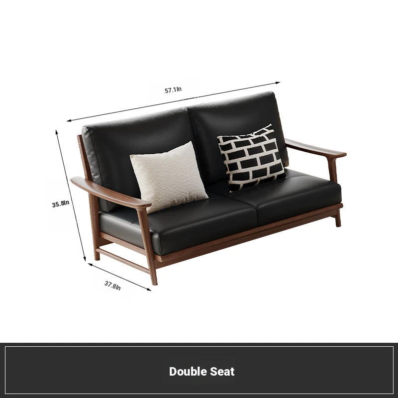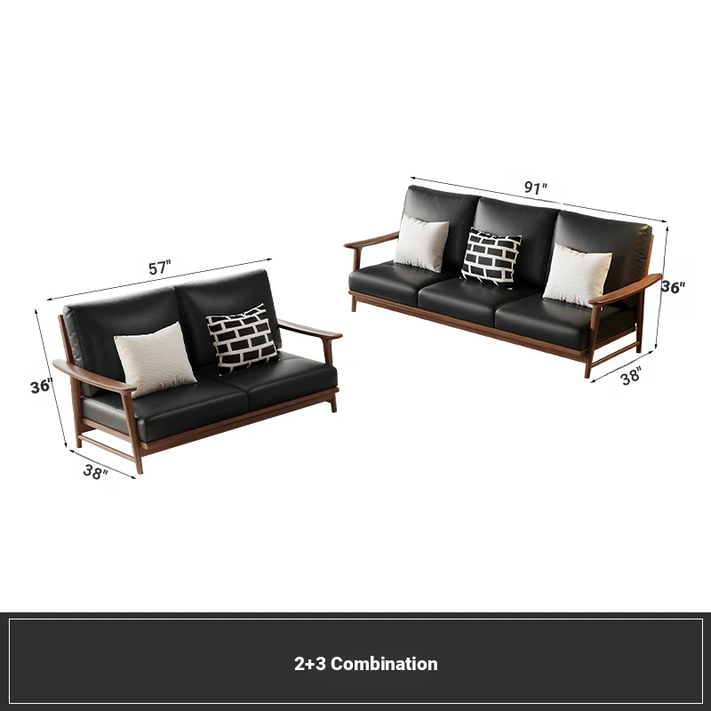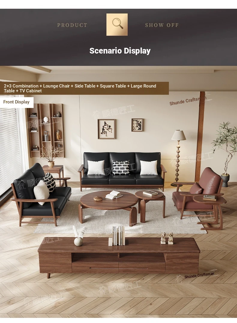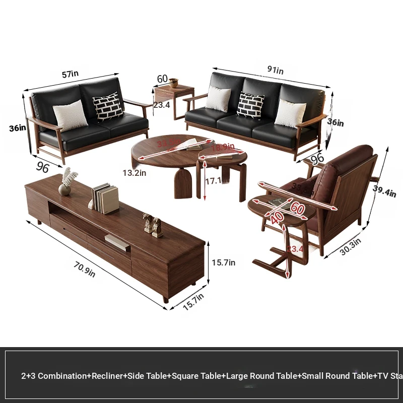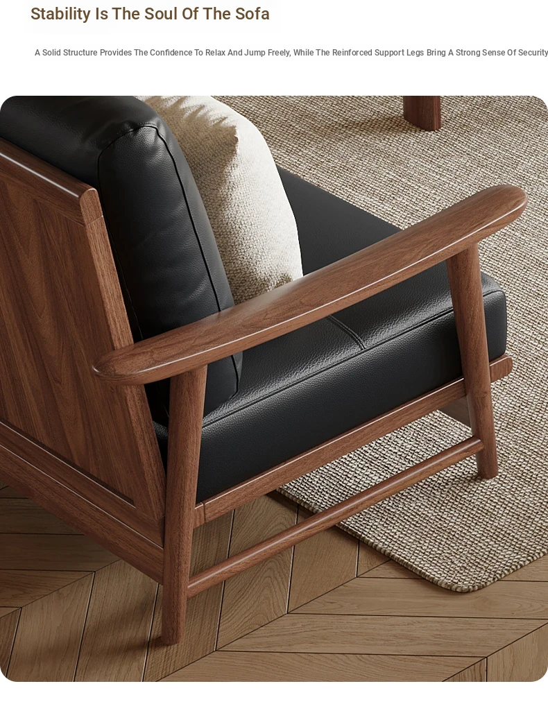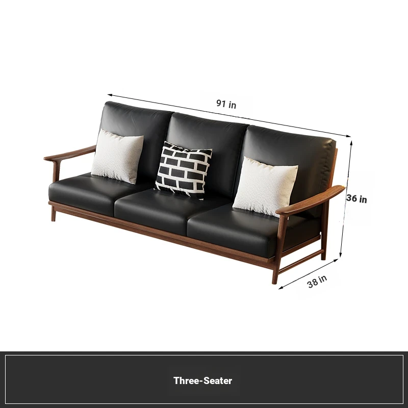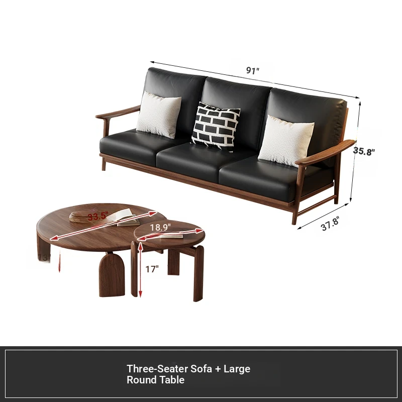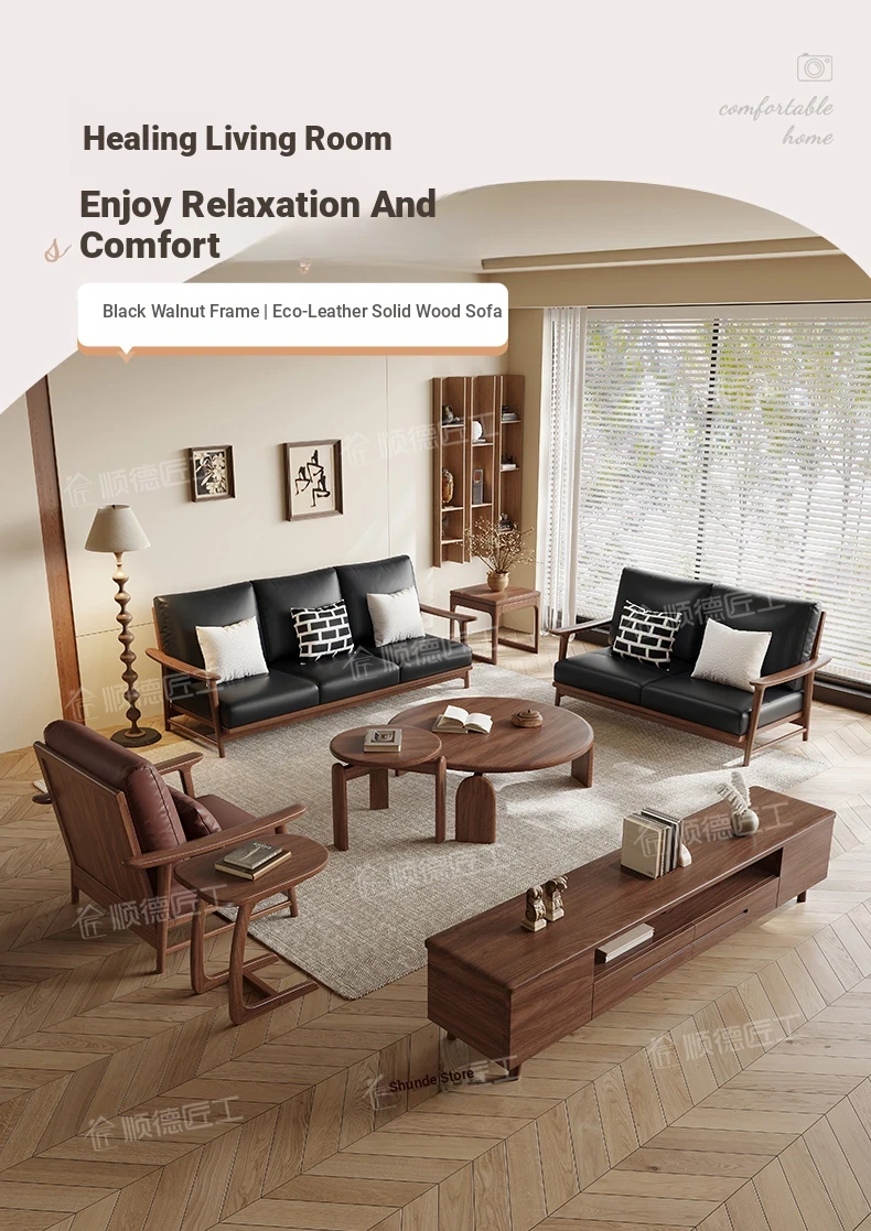 Modern Minimalist Walnut Solid Wood Sofa Set - Genuine Leather for Spacious Villas and Cozy Homes - Zen-inspired Chinese Style Living Room Furniture
