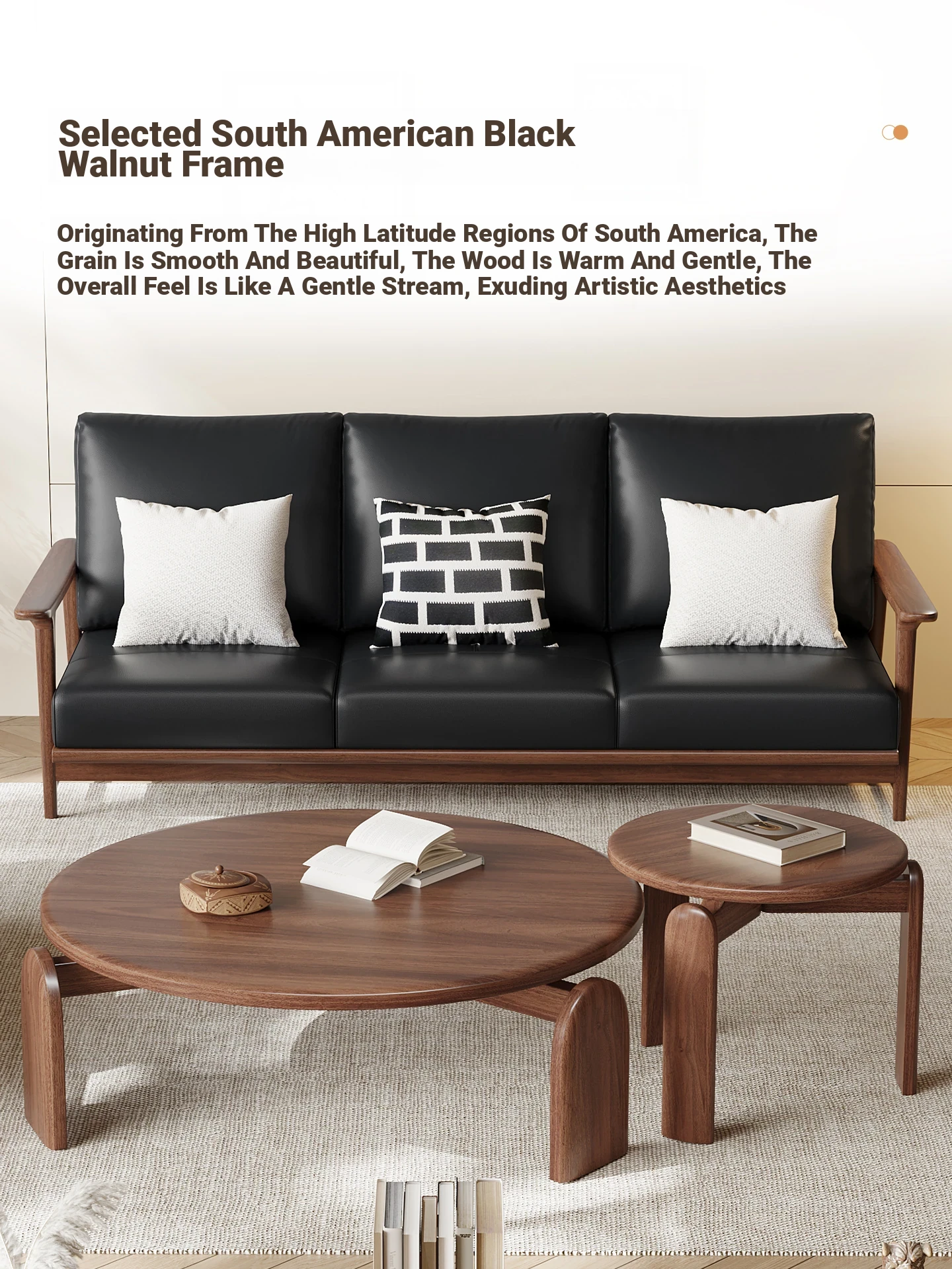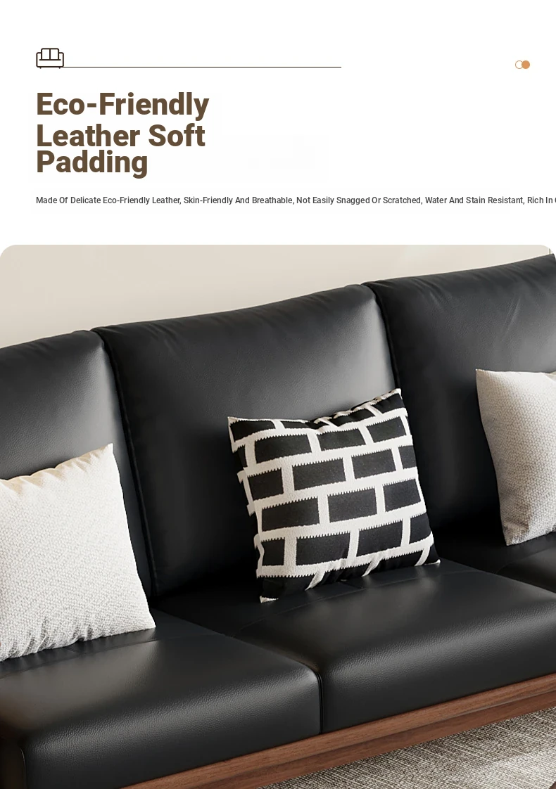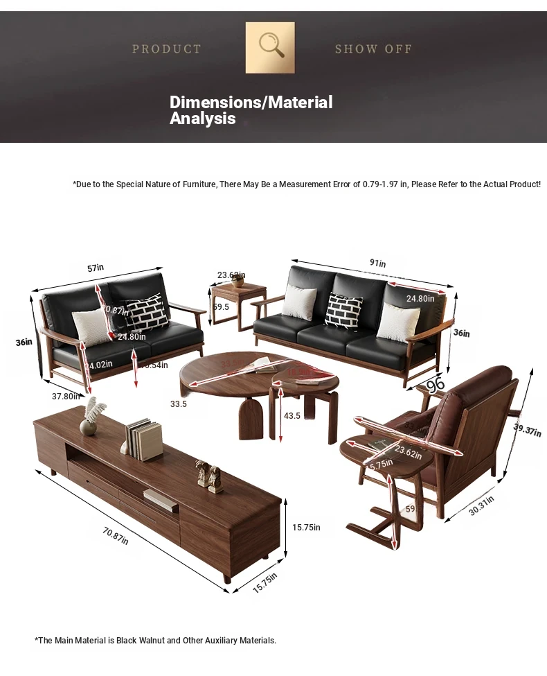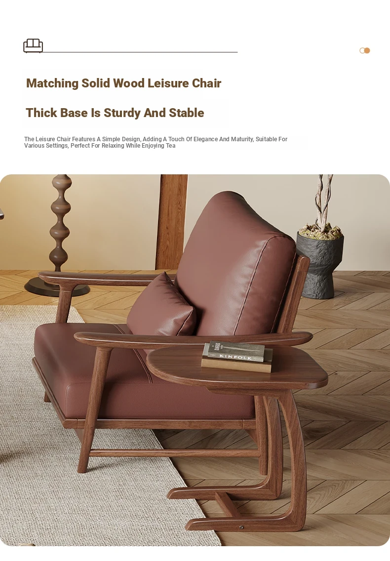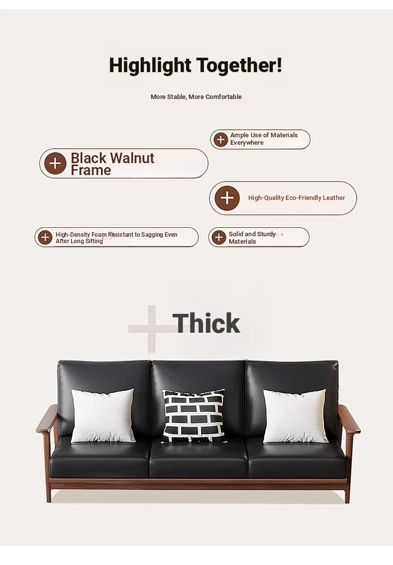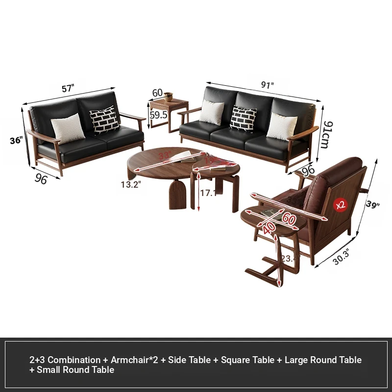 Modern Minimalist Walnut Solid Wood Sofa Set - Genuine Leather for Spacious Villas and Cozy Homes - Zen-inspired Chinese Style Living Room Furniture